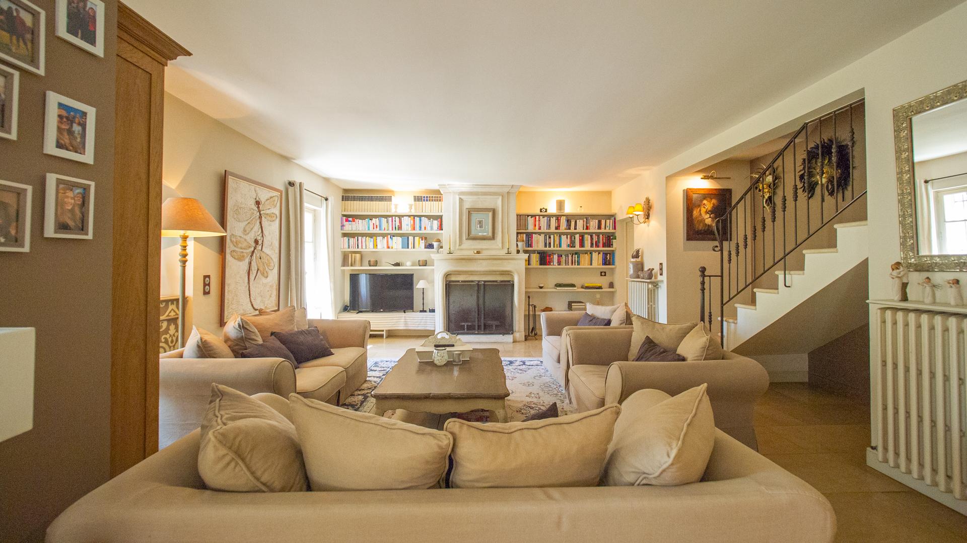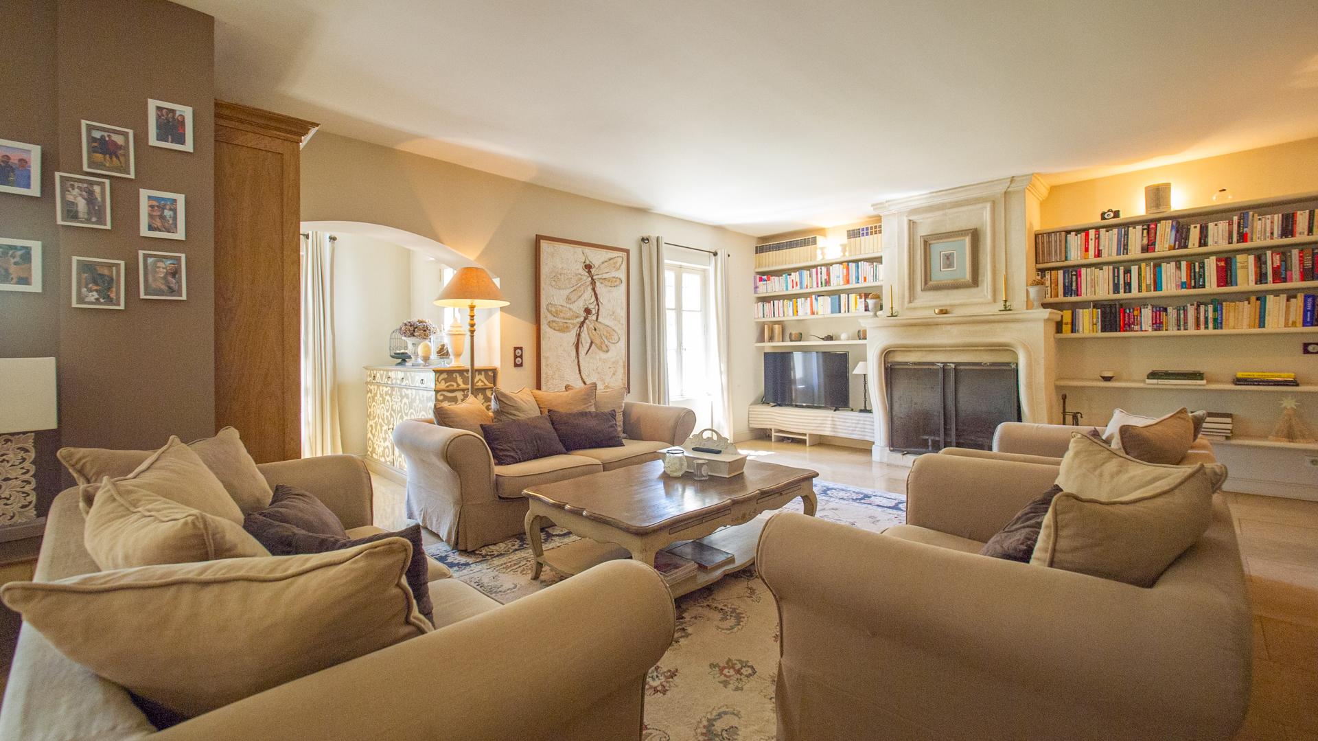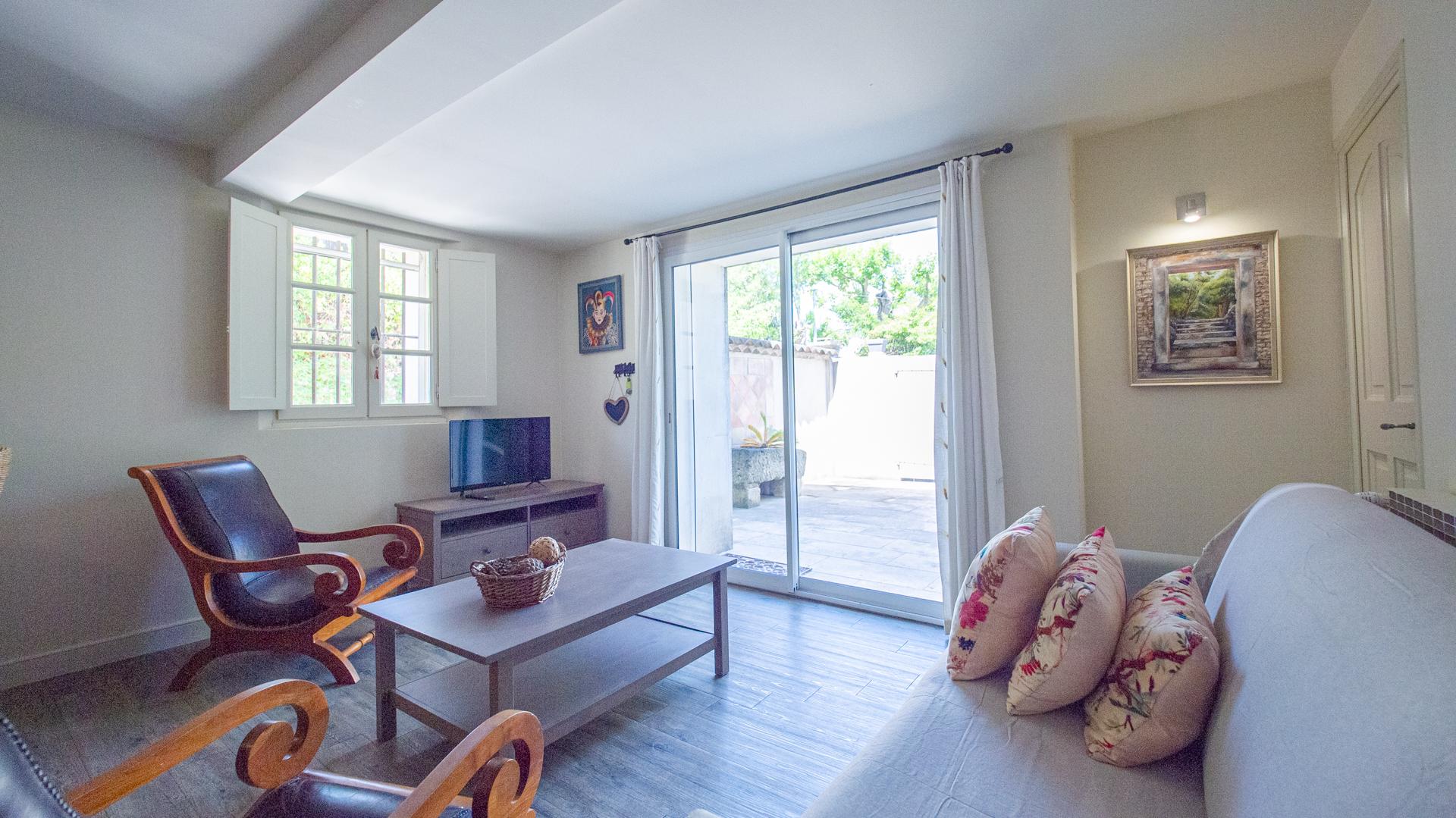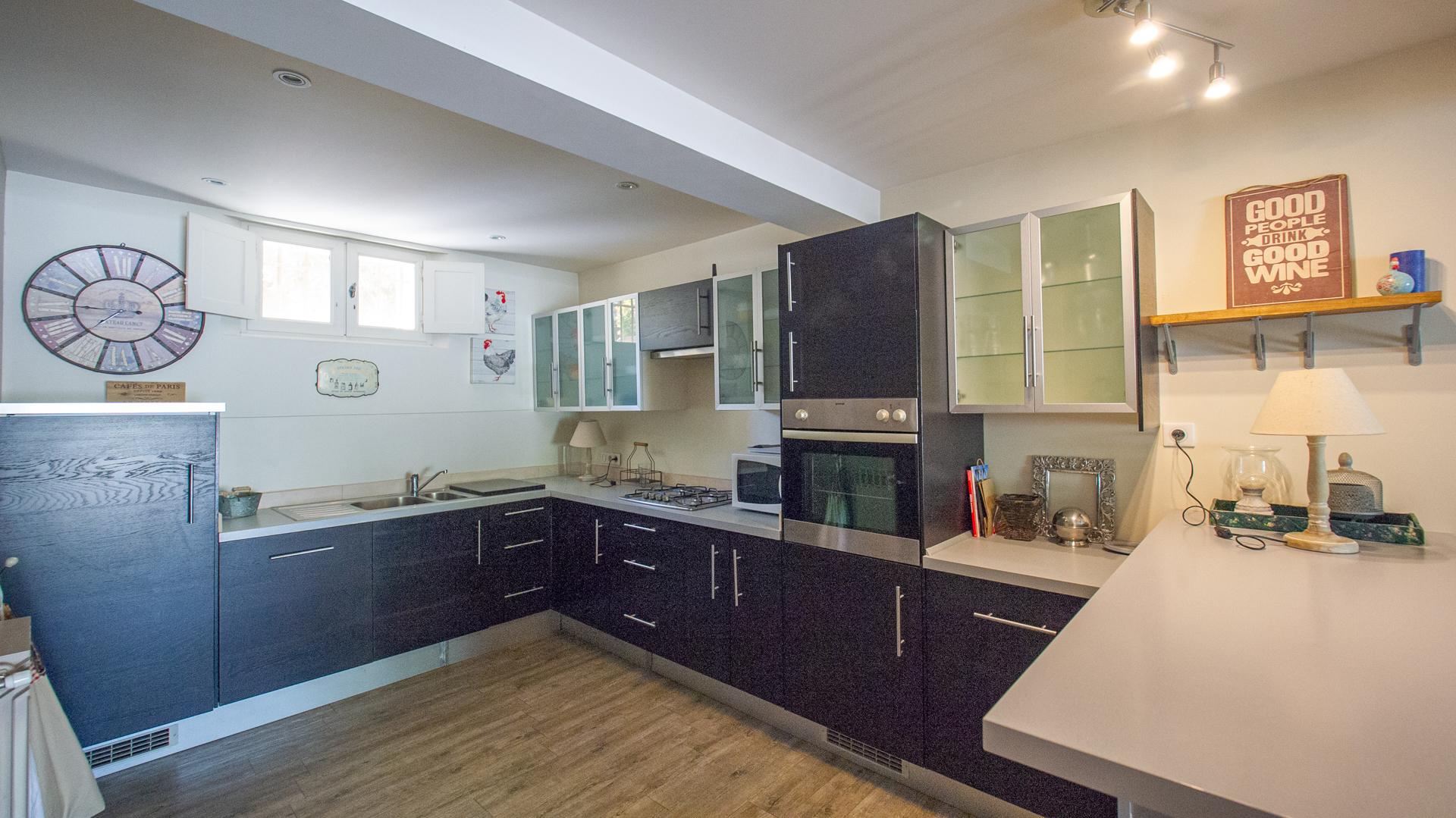 Inside, the Provençal-chic atmosphere is in order. The double living room grouping the open kitchen with dining area and the living room is warm.