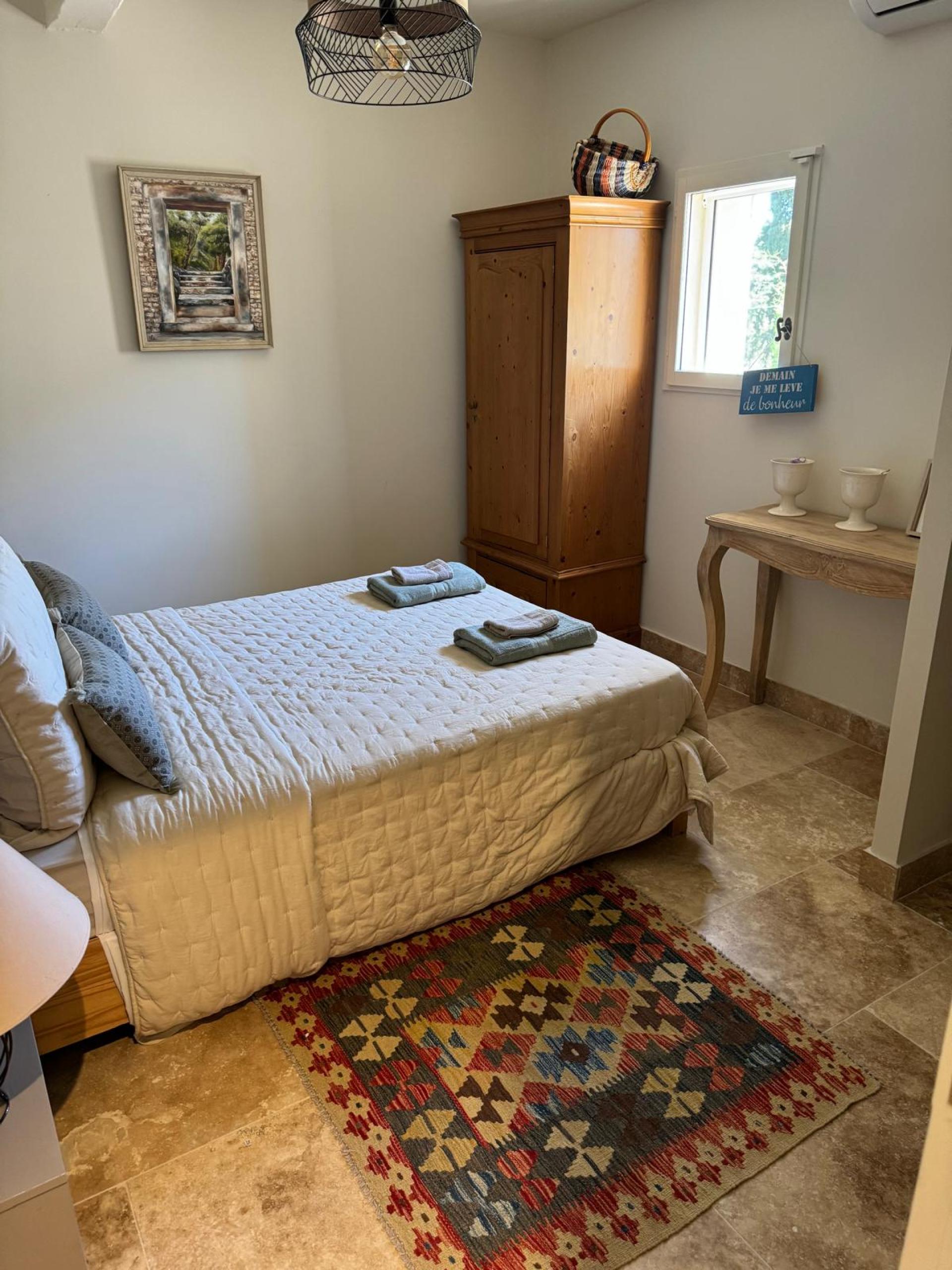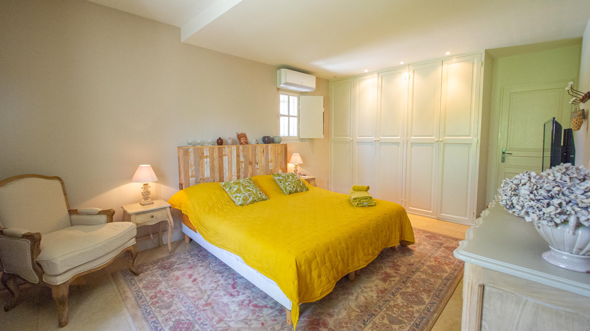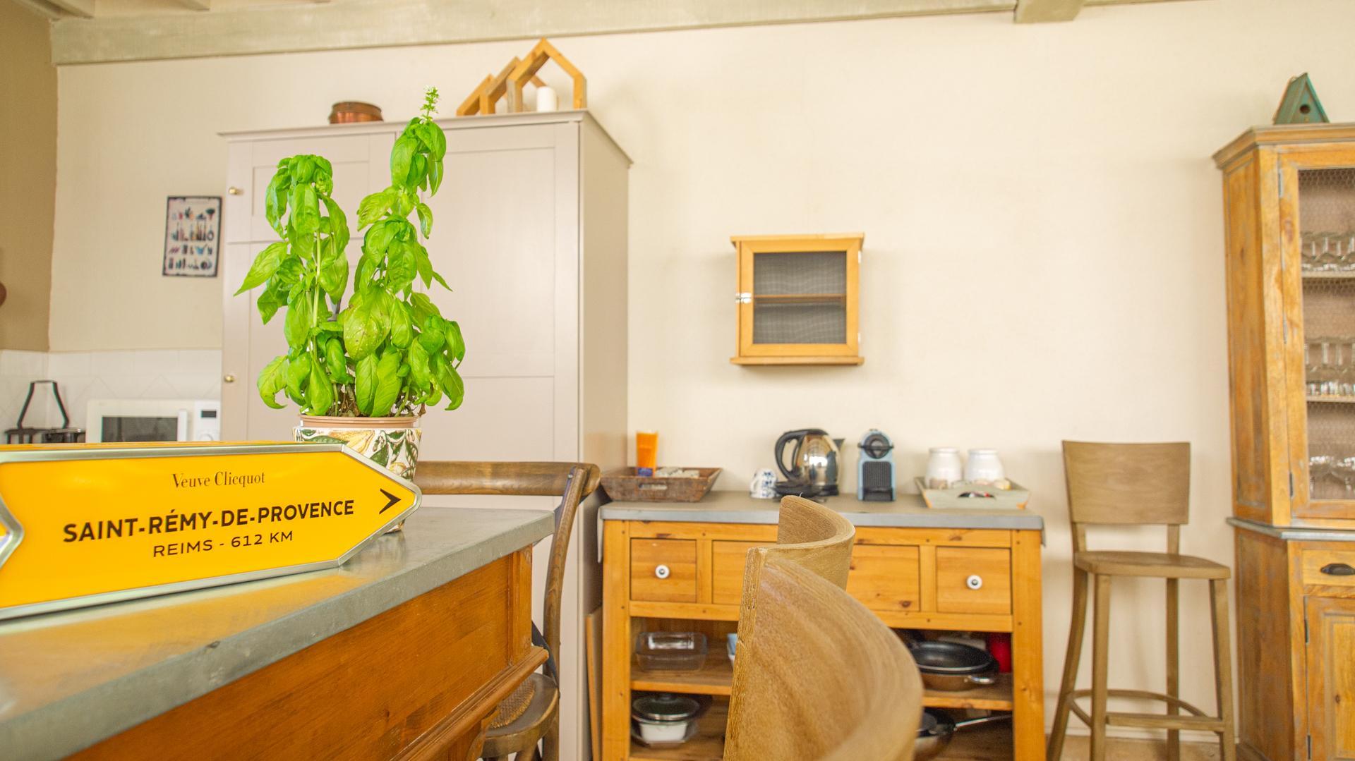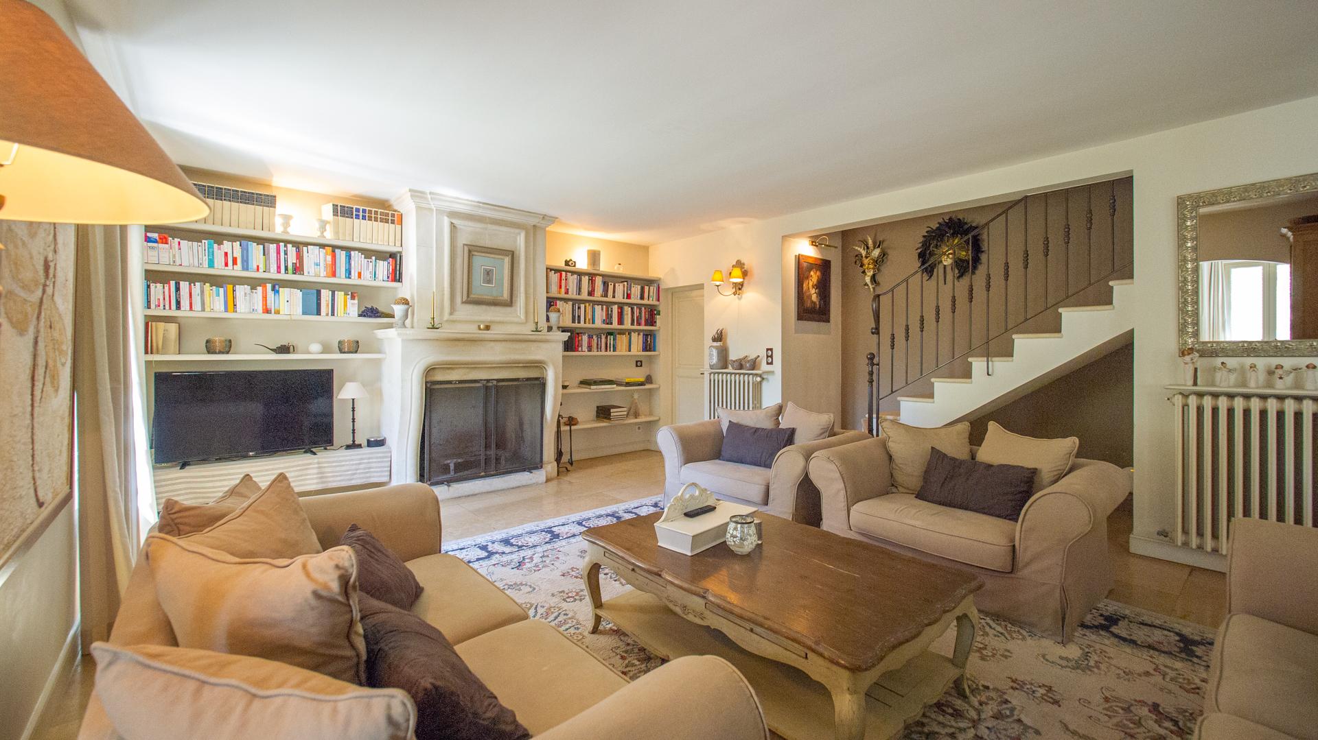 Inside, the Provençal-chic atmosphere is in order. The double living room grouping the open kitchen with dining area and the living room is warm.