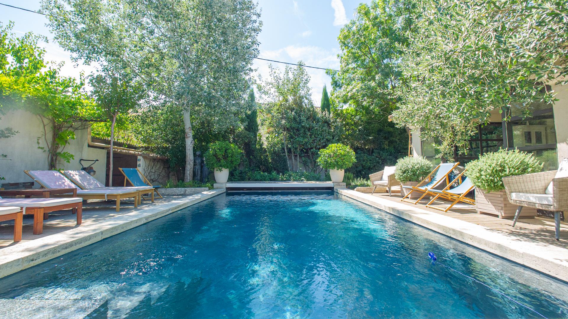 Located 500 metres from the centre of Saint-Rémy-de-Provence, A La Maison Fleurie is a village house surrounded by a soft green verdant setting.
