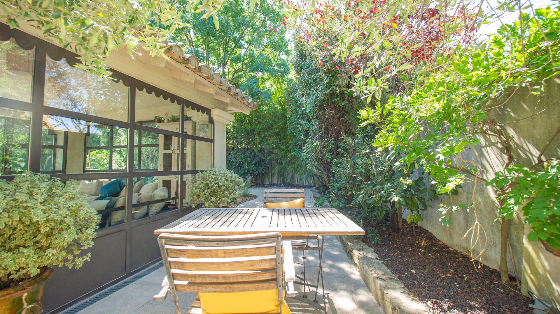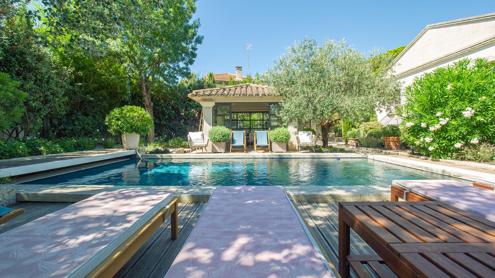 Its garden amazes with its dense and flamboyant vegetation. Constituting a real cocoon around the house, a total and soothing immersion envelops one, almost forgetting the proximity of the town centre.