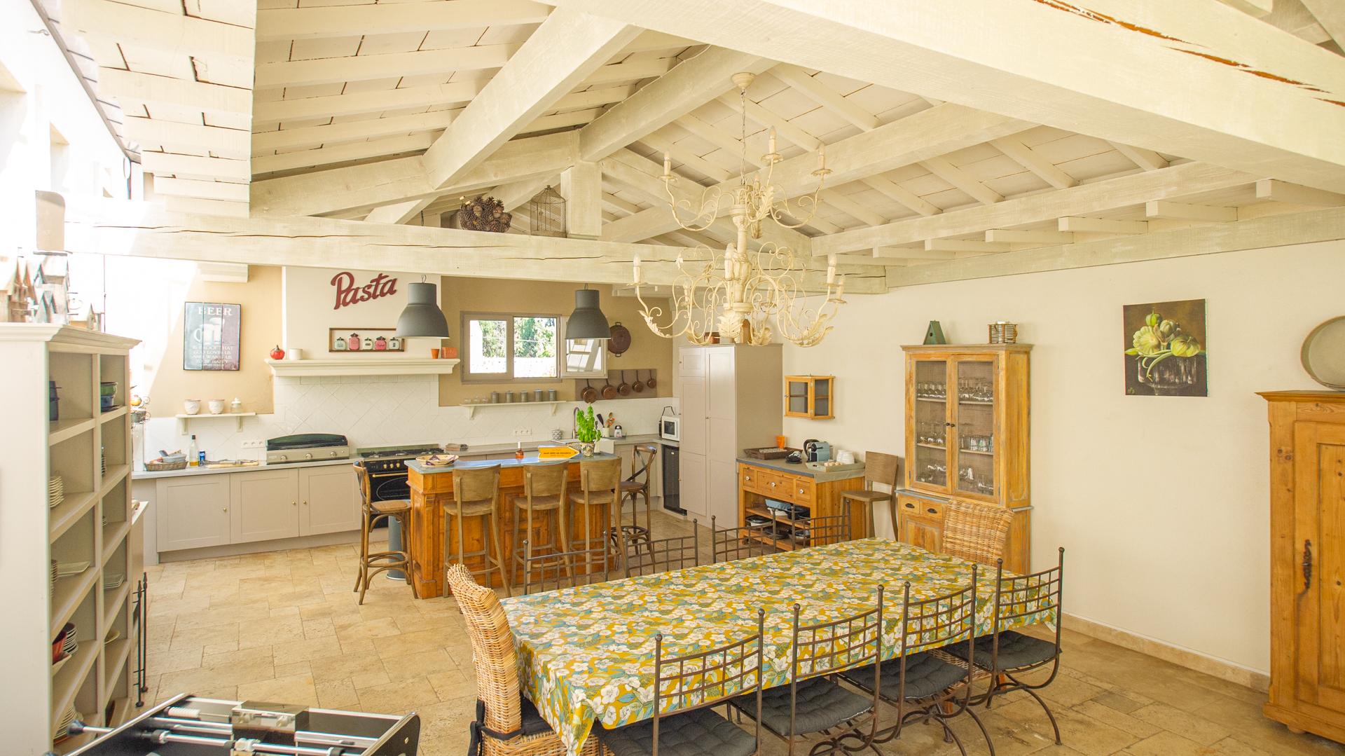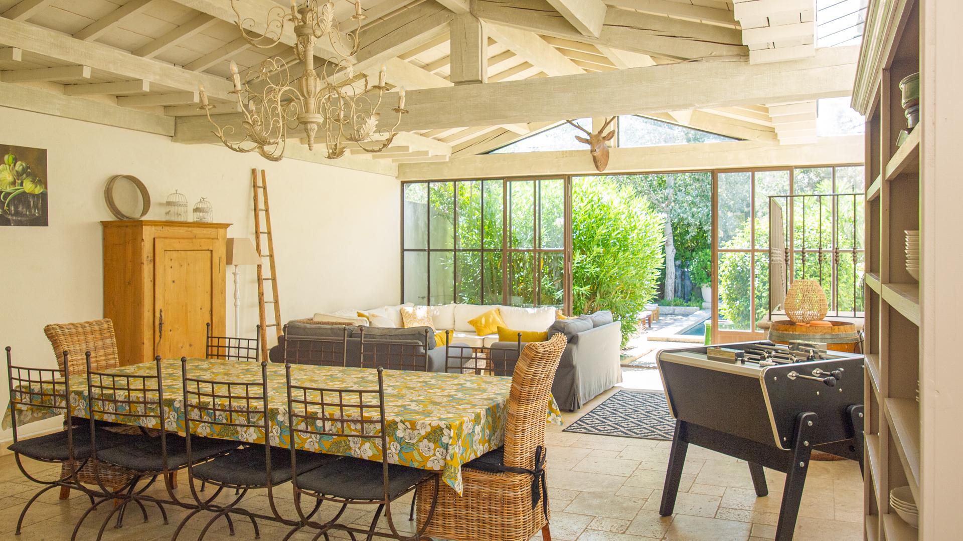 Several dedicated spaces help towards the atmosphere starting with the pool house, large and well equipped, which allows guests to share a culinary experience, a meal, or a fiery game of table football with family or friends.