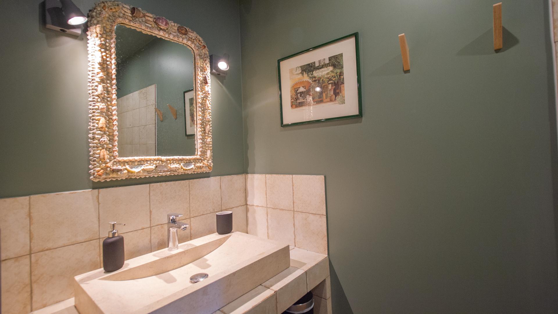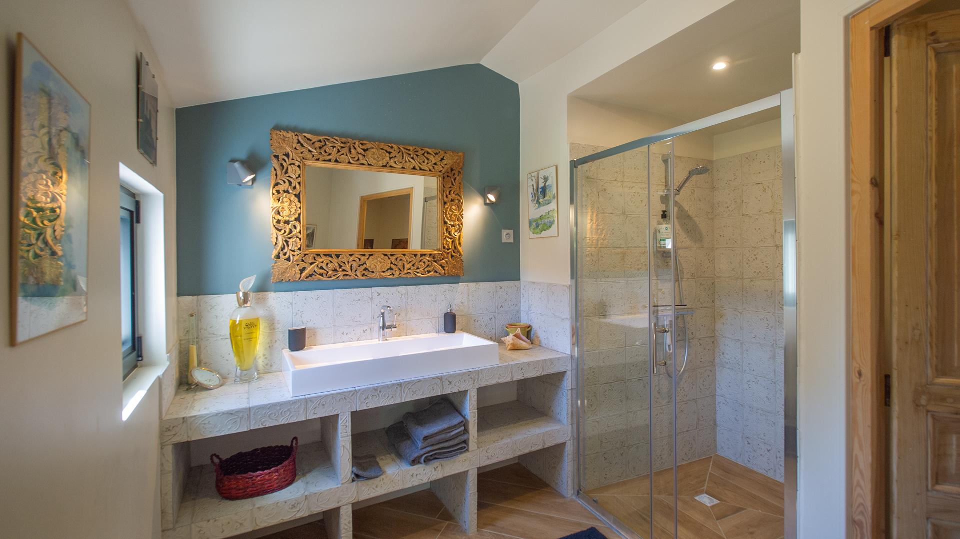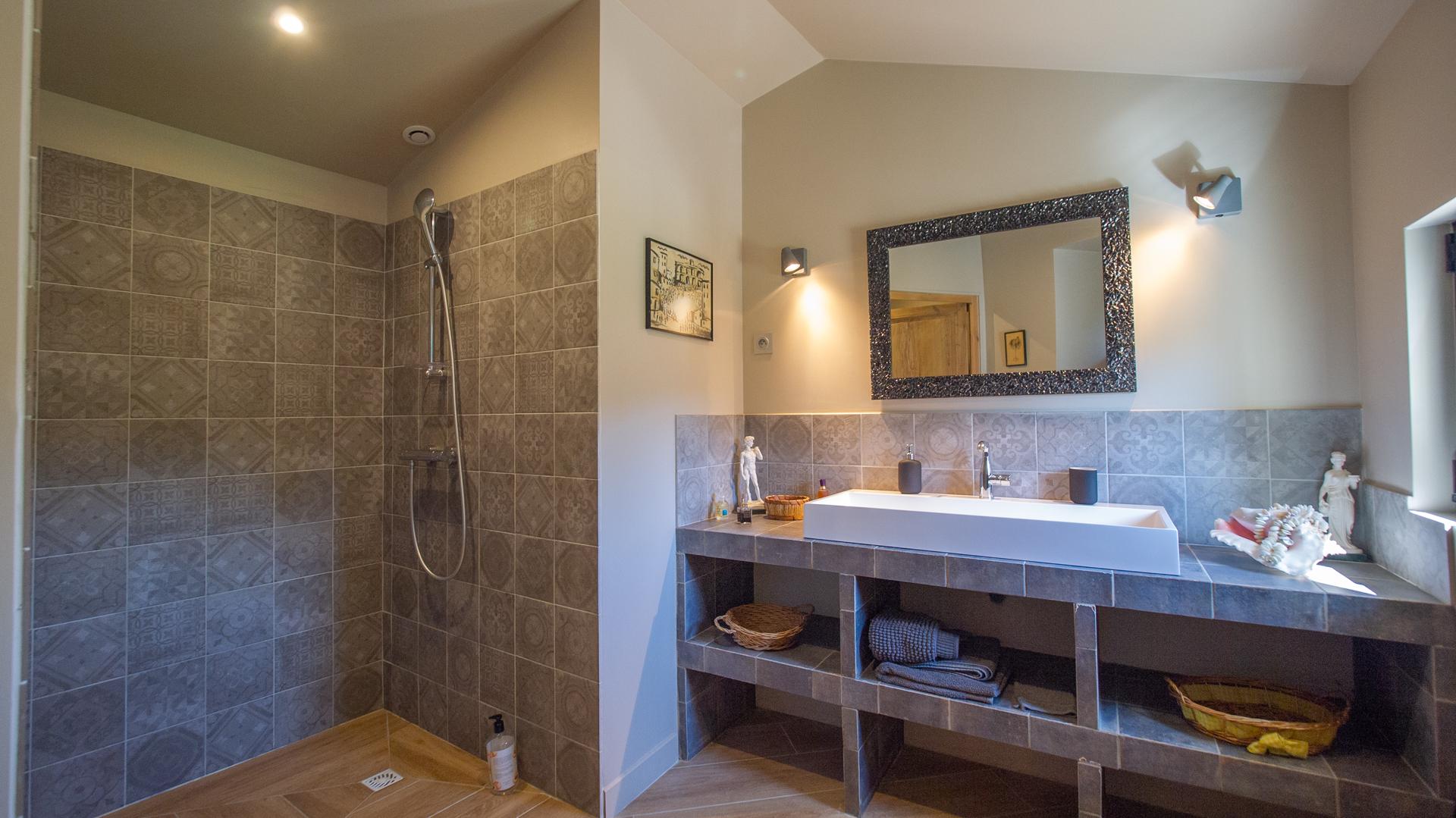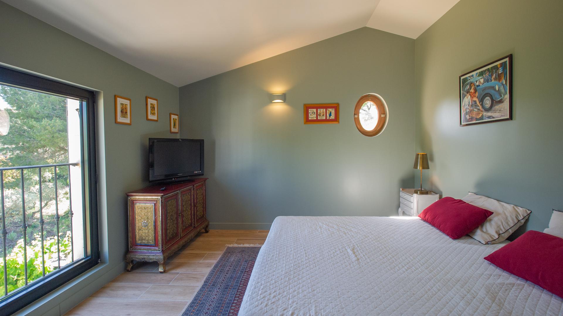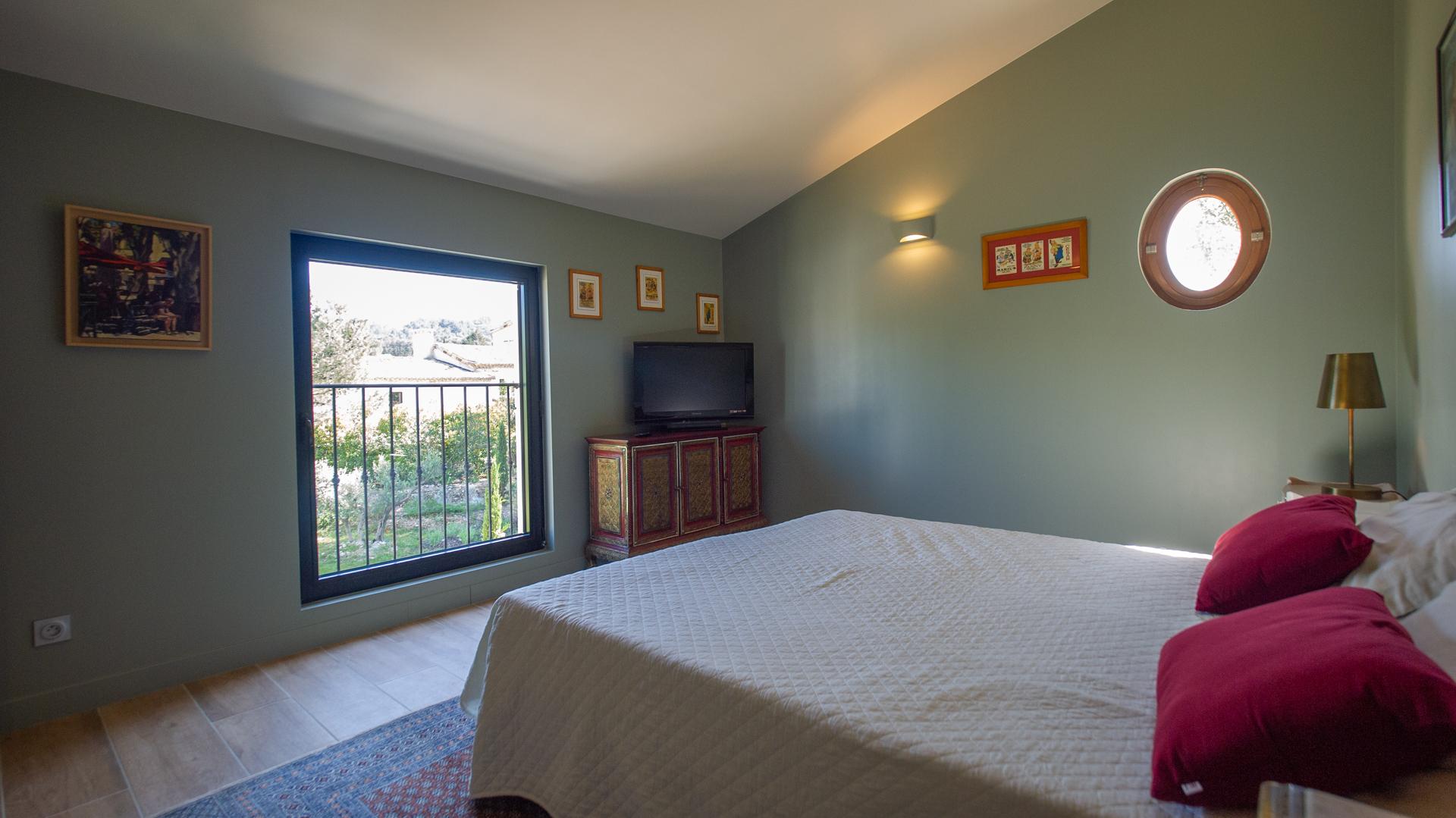 The chic and comfortable living room invites guests to relax, read, watch movies or listen to music via a high quality HIFI system. The entire ground floor is very bright and fully opens onto the Alpilles.