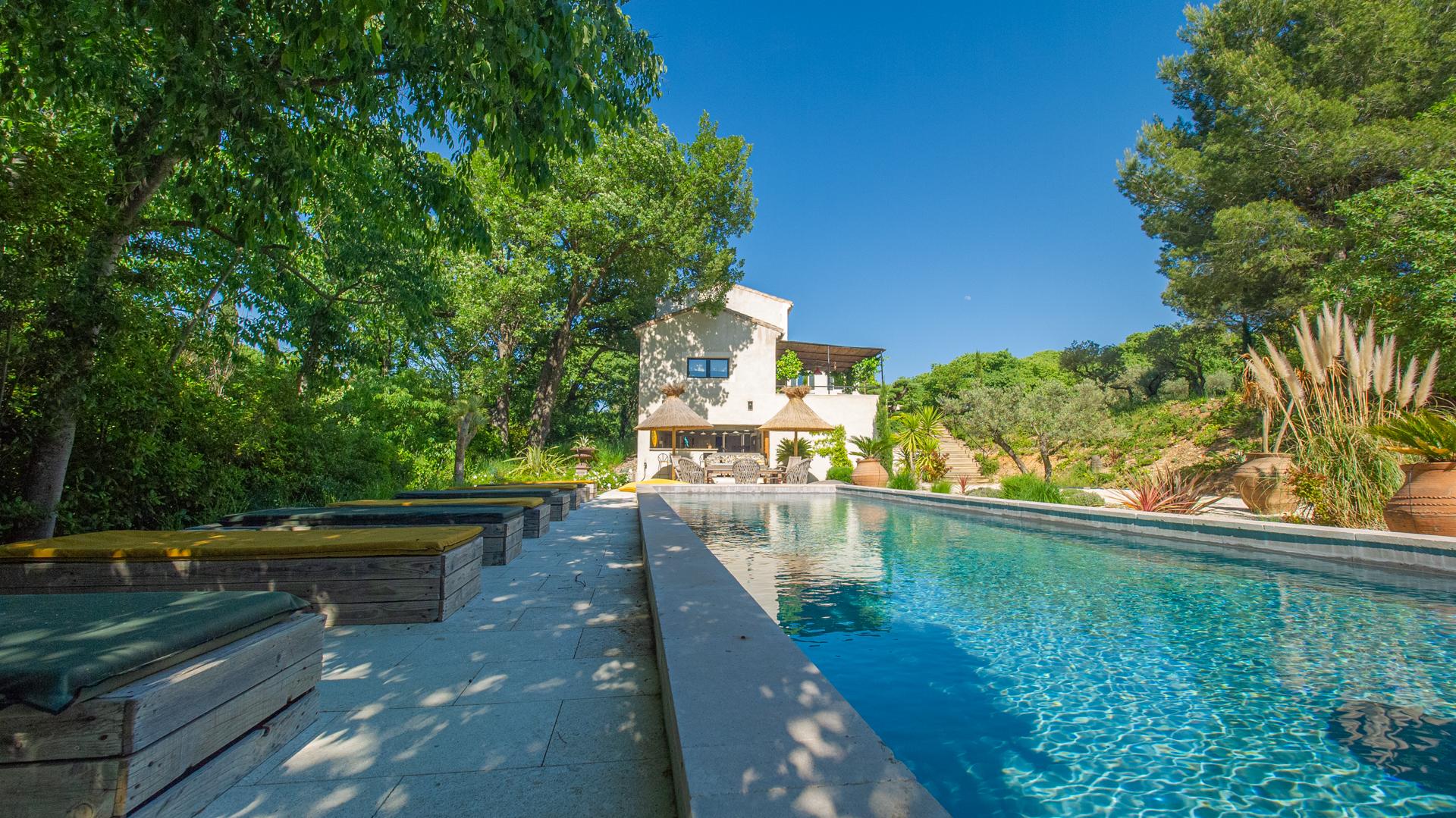 The amenities are ideal for a holiday home: air conditioning, lovely outdoor areas, immaculate gardens and a large swimming pool. The decoration mixes tradition and luxury.