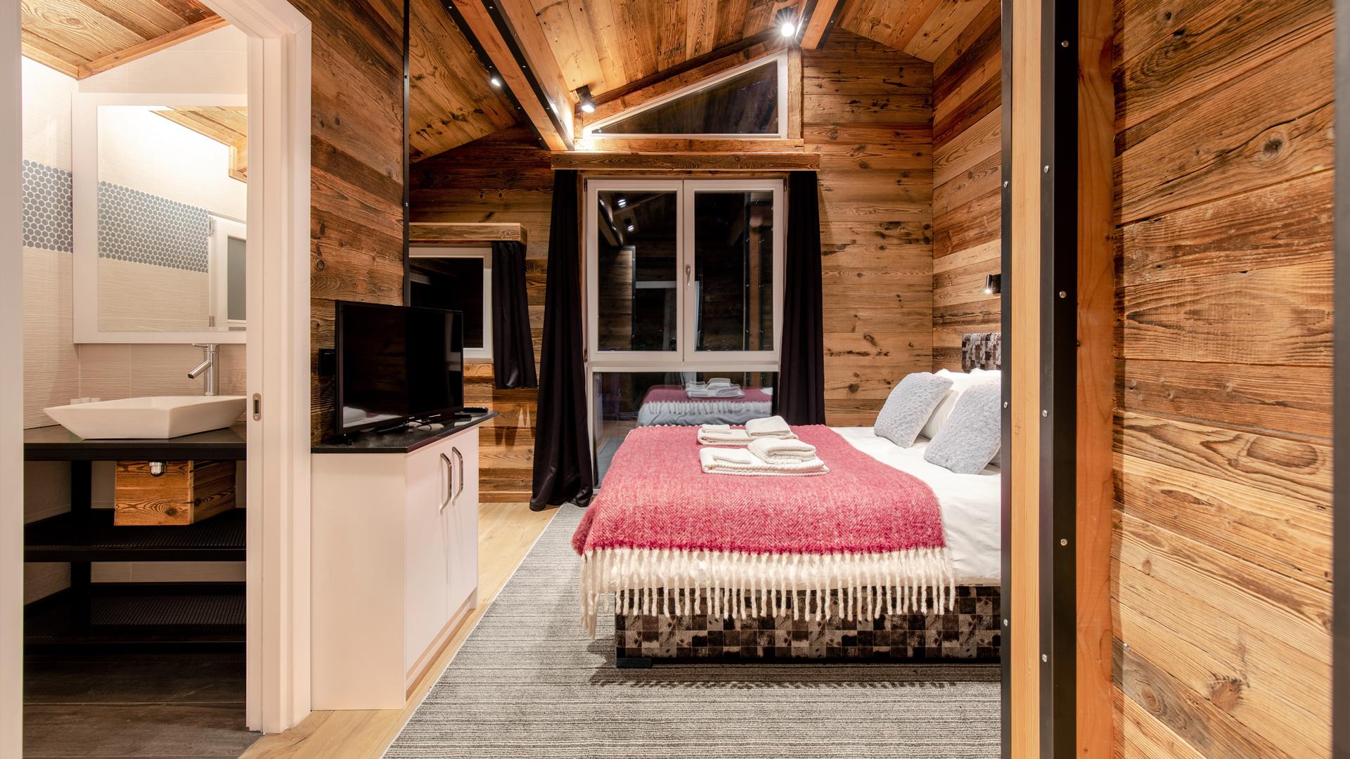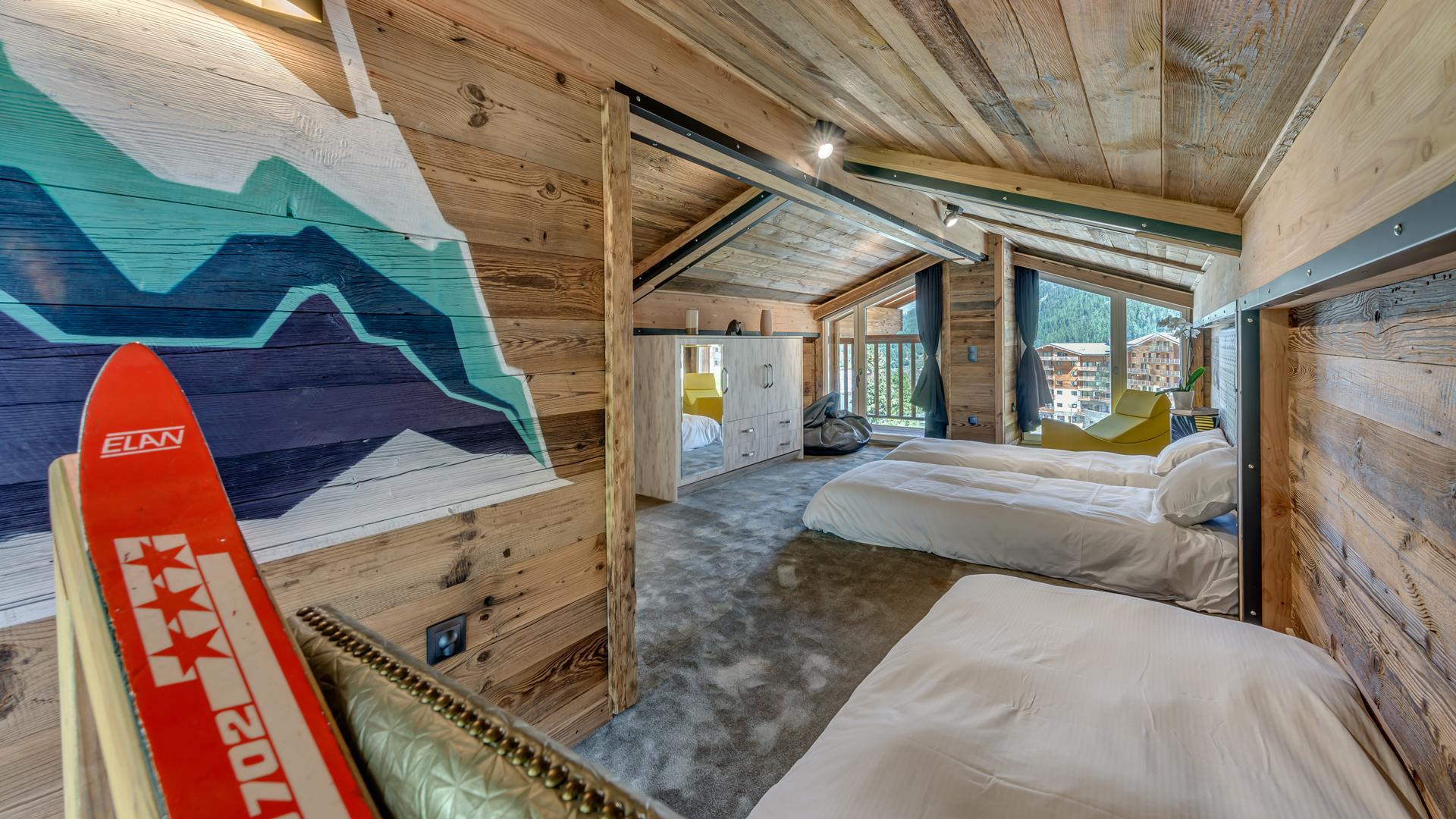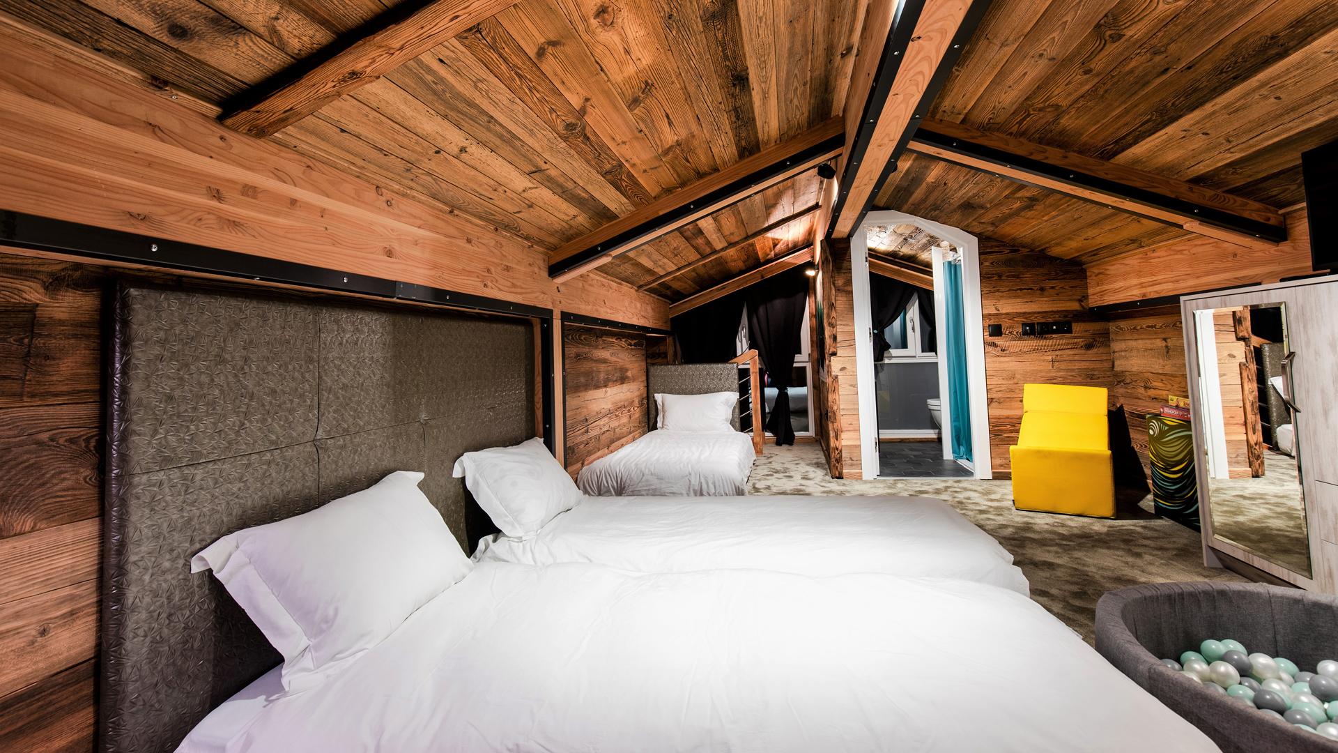 Decorated with taste and fantasy, its interiors playfully incorporate many typical elements of the ski world ... revisited in custom furniture with a retro feel. A modern approach to Alpine style that creates an atmosphere that is both authentic and surprising. The "night" area is available in 5 double rooms, and a children's room for 3, in order to provide an ideal setting for everyone.