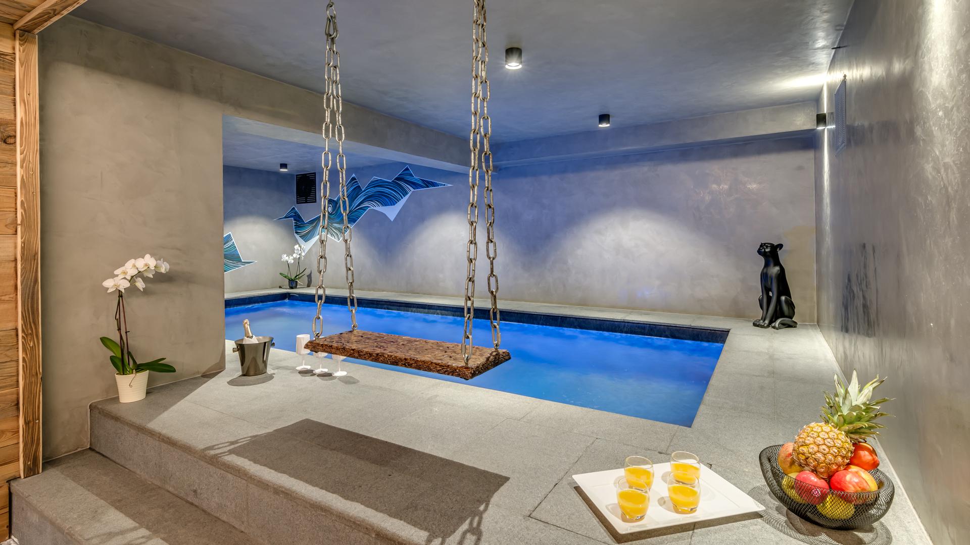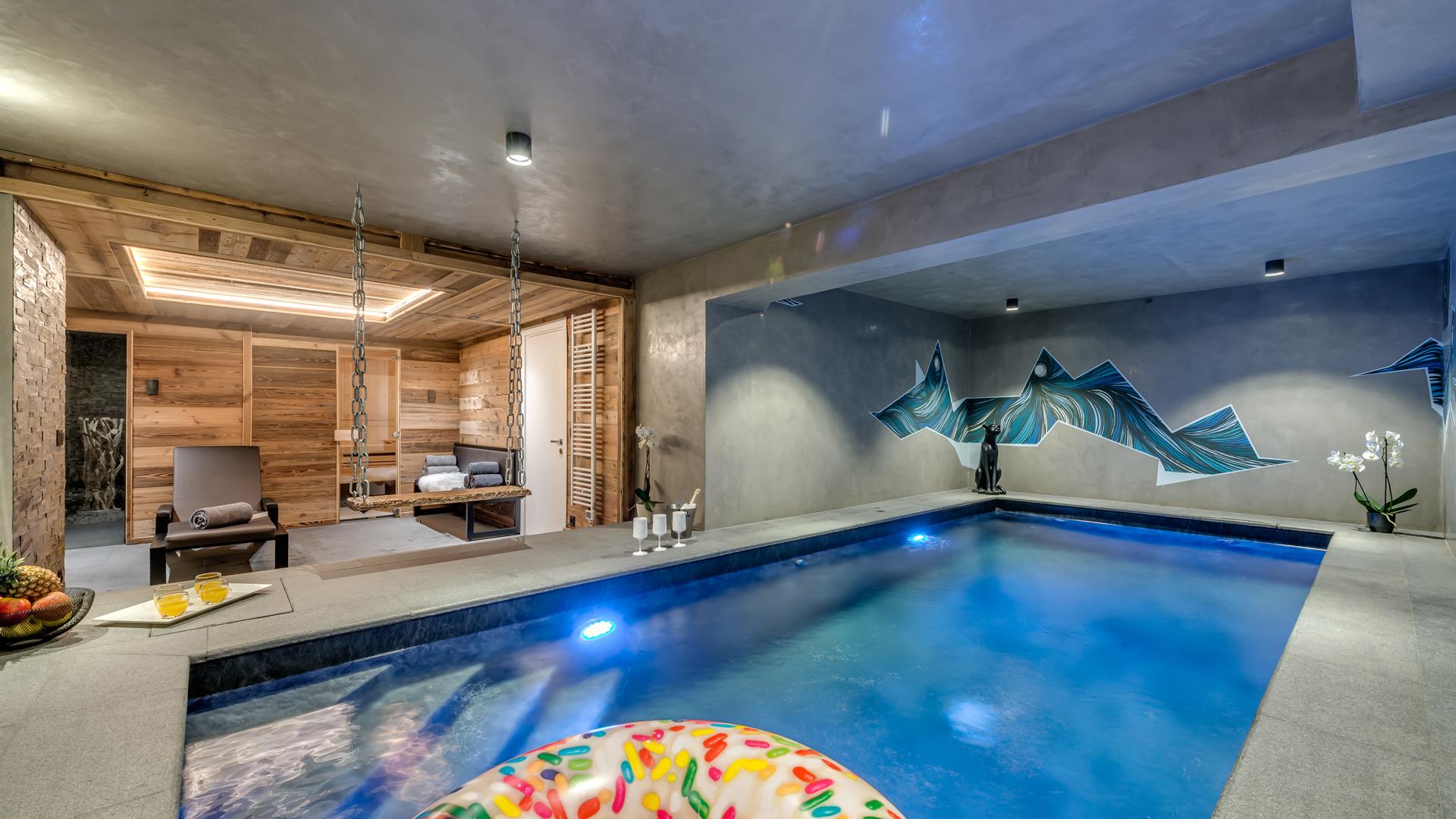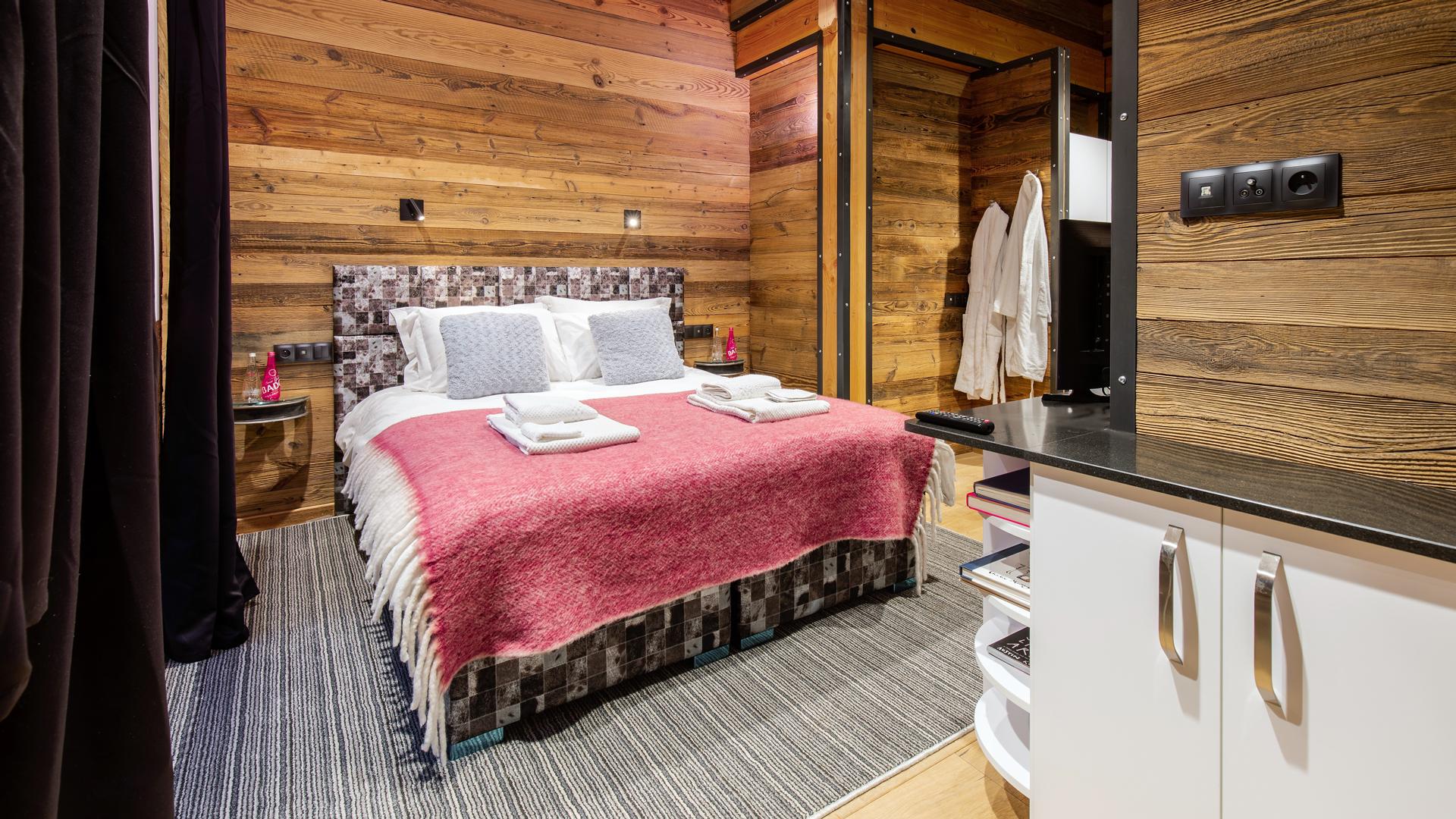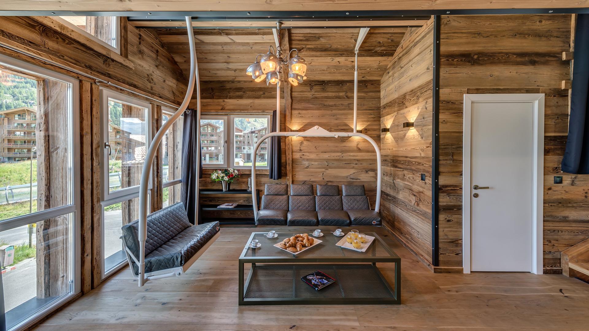 Decorated with taste and fantasy, its interiors playfully incorporate many typical elements of the ski world ... revisited in custom furniture with a retro feel. A modern approach to Alpine style that creates an atmosphere that is both authentic and surprising. The "night" area is available in 5 double rooms, and a children's room for 3, in order to provide an ideal setting for everyone.
