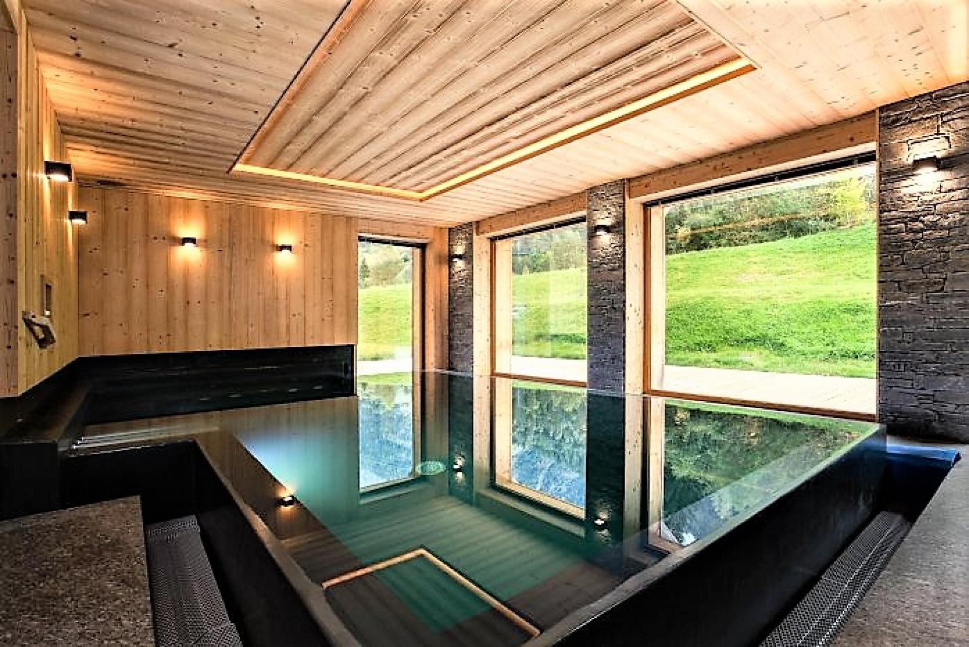 There is a further annexe across the first floor decking, which may be taken in addition to the main chalet. Here there are two bedrooms and one bathroom. With up to nine bedrooms, spacious living areas, pool and sauna the Chalet Arandellys is just perfect for large groups and family holidays!