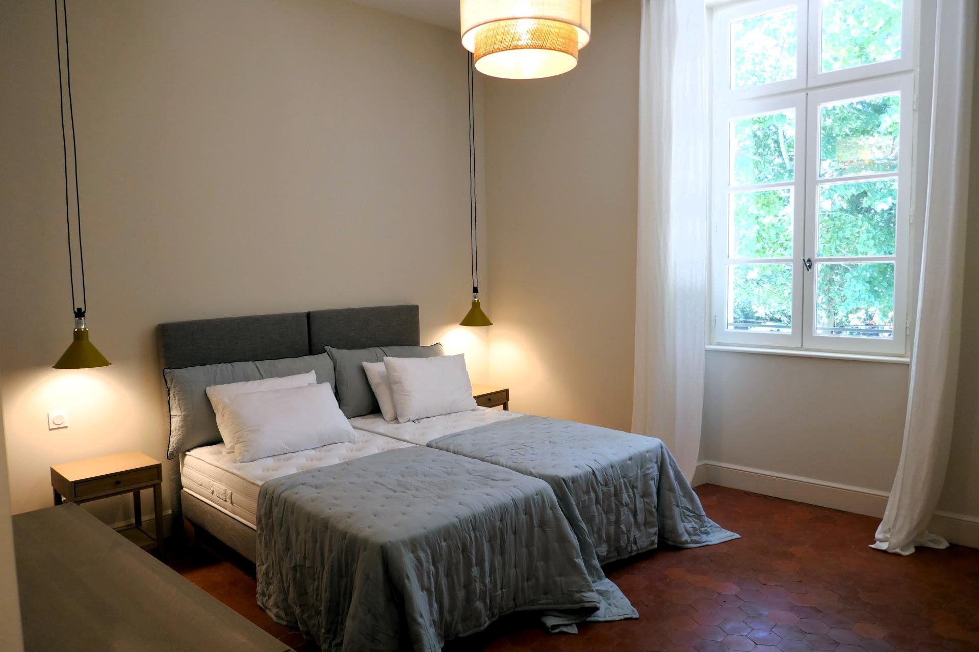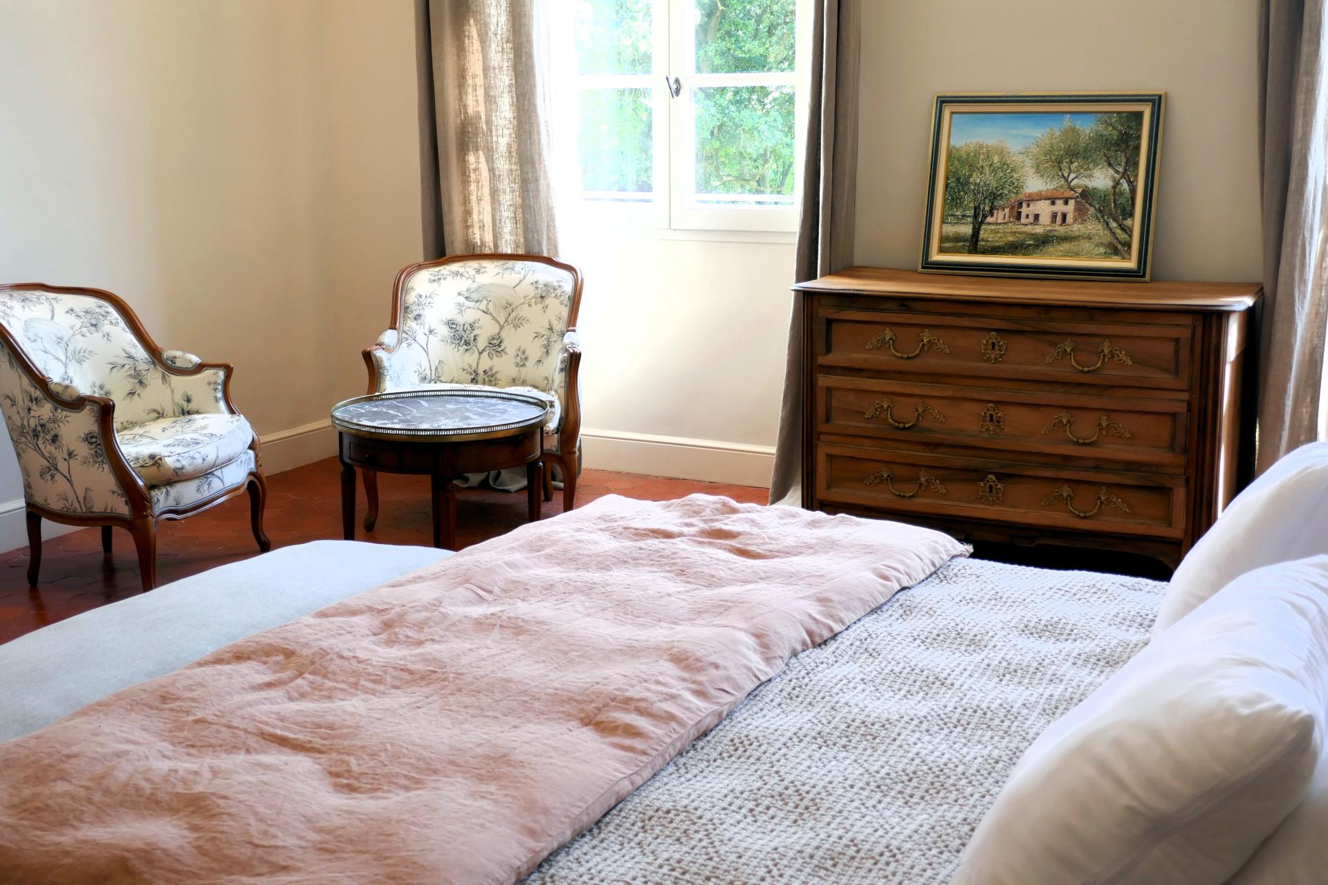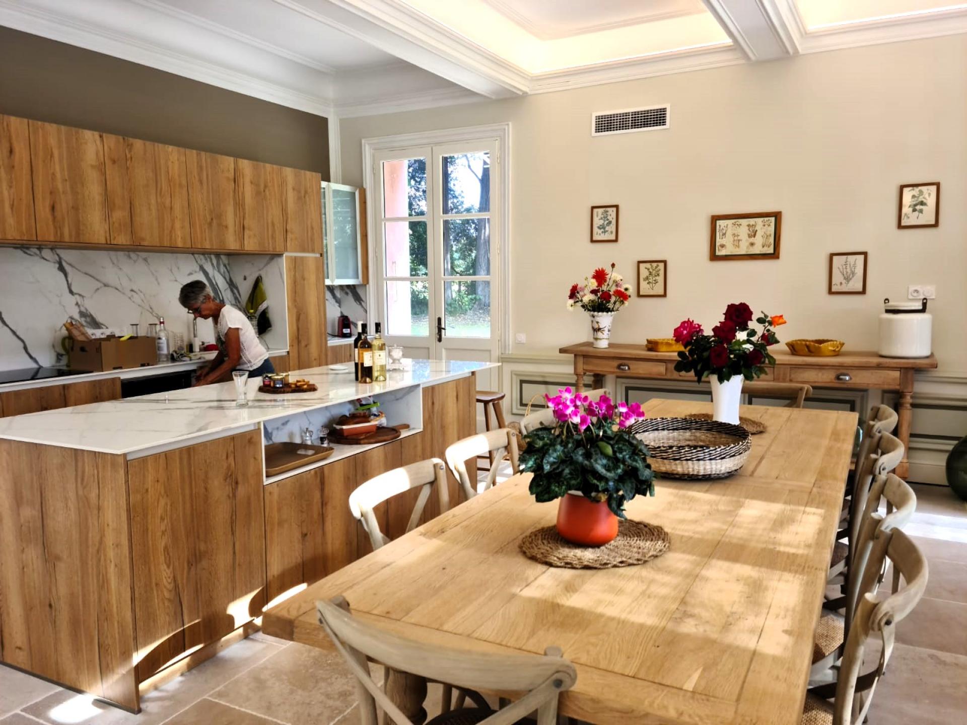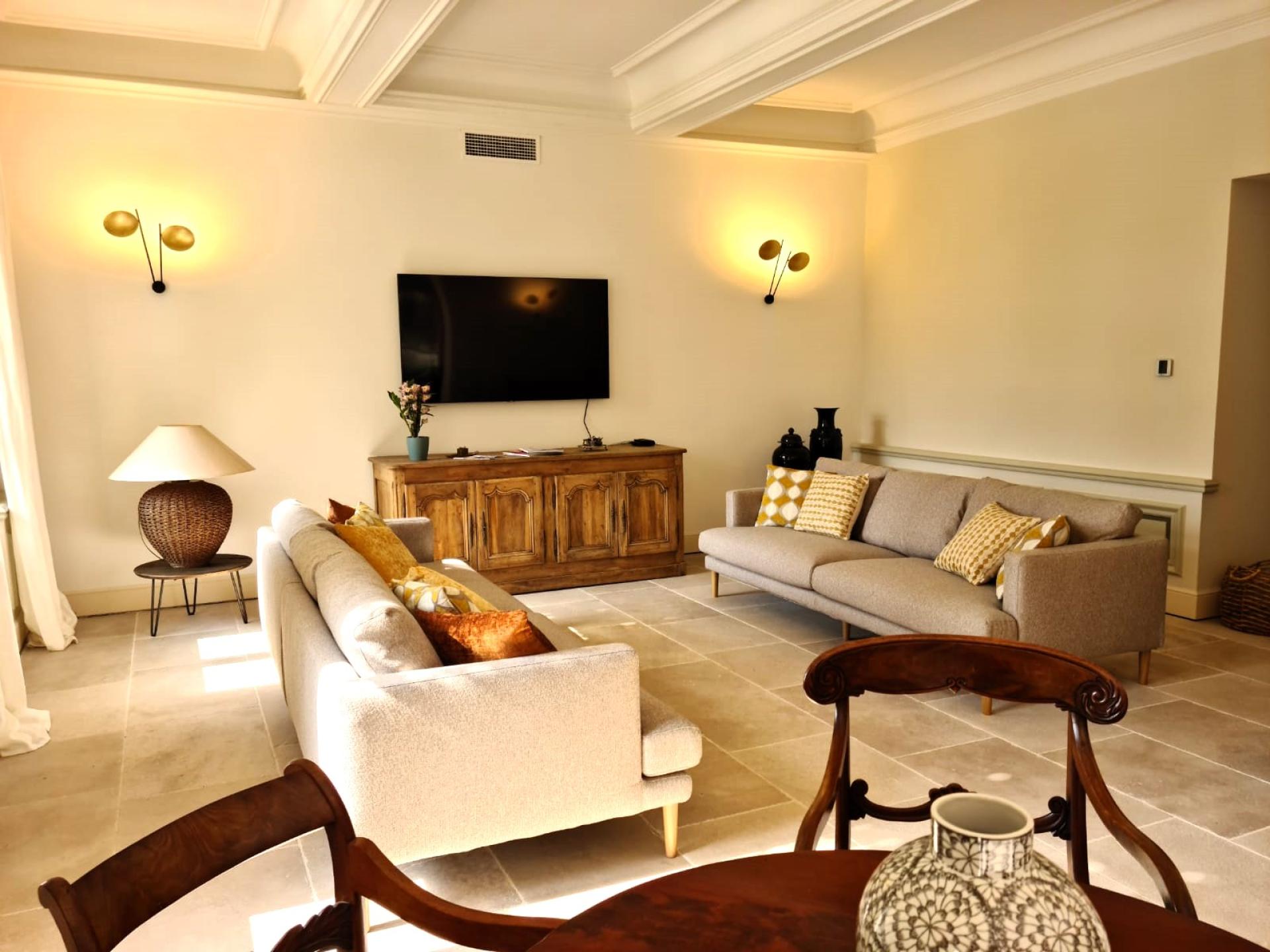 As soon as you enter, the Bastide welcomes you into a chic atmosphere where past and present coexist with taste and sobriety. The rooms are bright, and you immediately imagine the heat of the sun's rays warming the atmosphere. On the ground floor, the main living rooms are a large open space with old-fashioned ceiling heights: very well-equipped kitchen, integrated living/dining room, TV lounge and a guest toilet, to the side a master bedroom with its terrace. A stone staircase leads you to the upstairs bedrooms, all with a dedicated bathroom.
