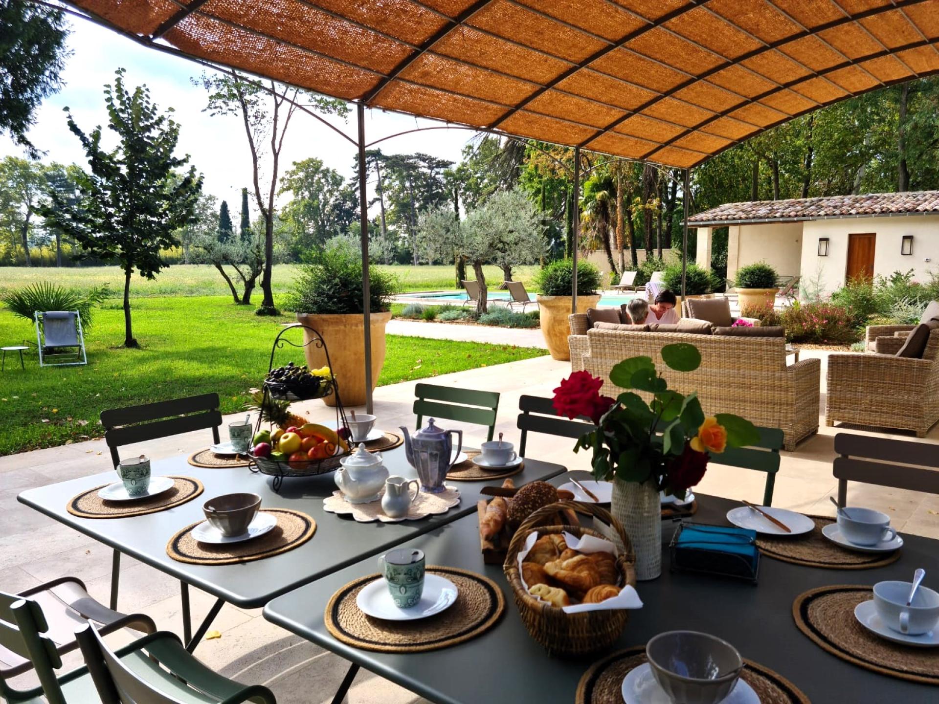Nestled in the countryside surrounding Avignon, you access the property through an imposing gate which immediately suggests the size of the place. Once you have passed the numerous trees of all species, two paths separate and take you towards two different buildings: La Bastide on the one hand and Le Mas on the other.