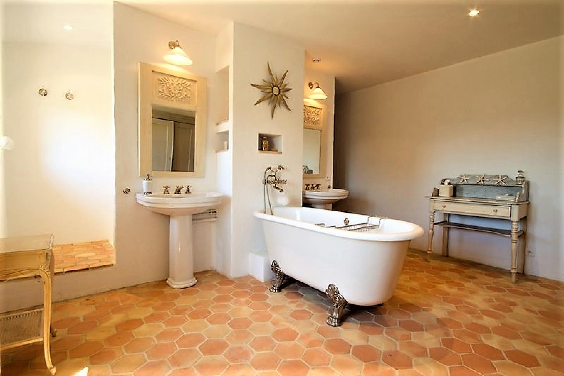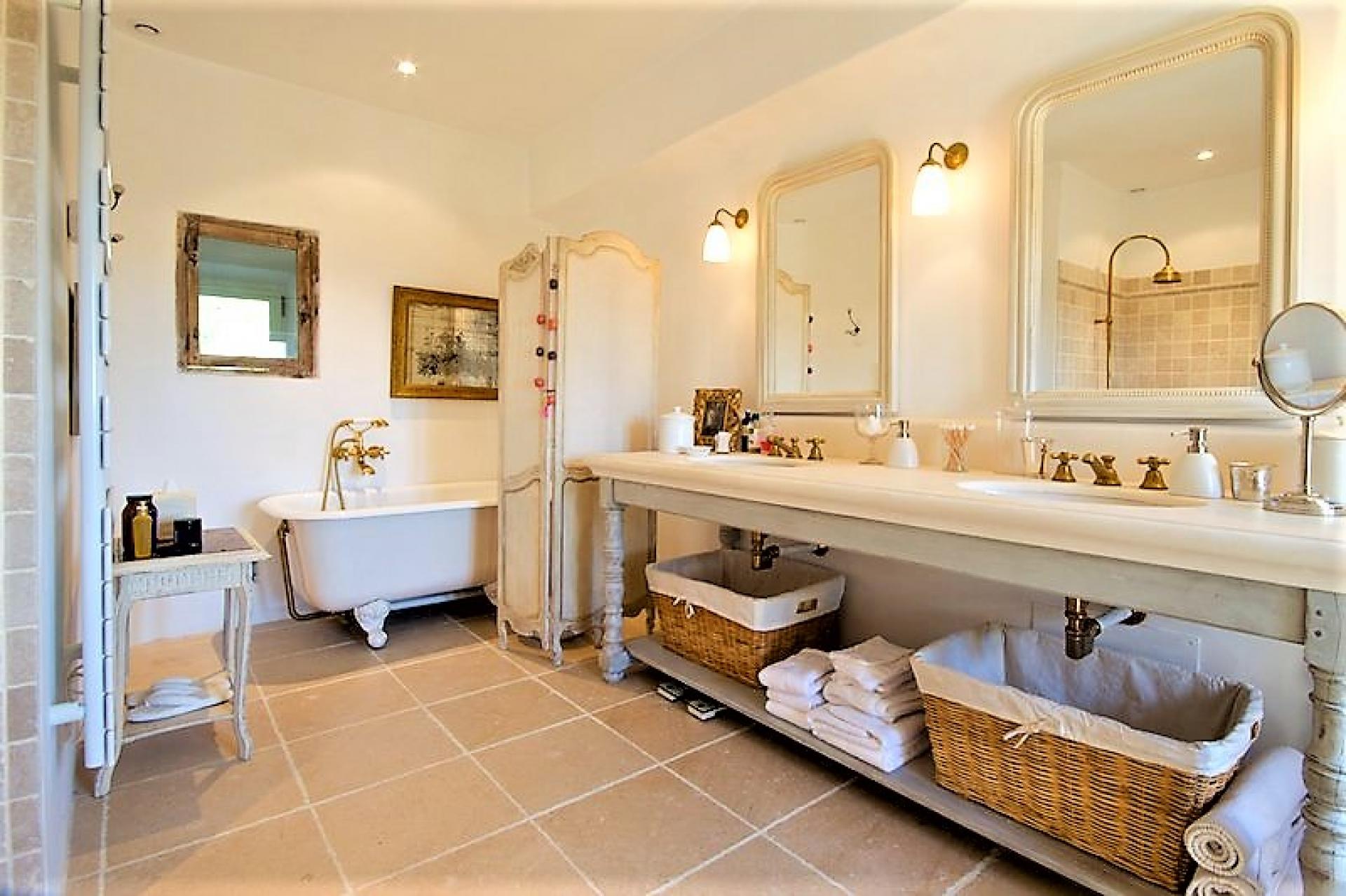 Built and restored in local stone over two levels, the Farmhouse is fully furnished and beautifully decorated with pretty pretty Provencal furniture, charming objects and bright paintings. The property comprises of 4 en-suite bedrooms, an entrance hall with desk, a large modern kitchen, which is a gourmet Chef's dream, a laundry room which is adjacent to the kitchen with washing machine, dryer and ironing facilities, guest WC, two staircases, a large dining area, a TV room, and two living rooms. Whilst outside there are two dining areas, a long terrace, a flower bedecked courtyard and a very welcoming pool with an attractive wooden deck surround.