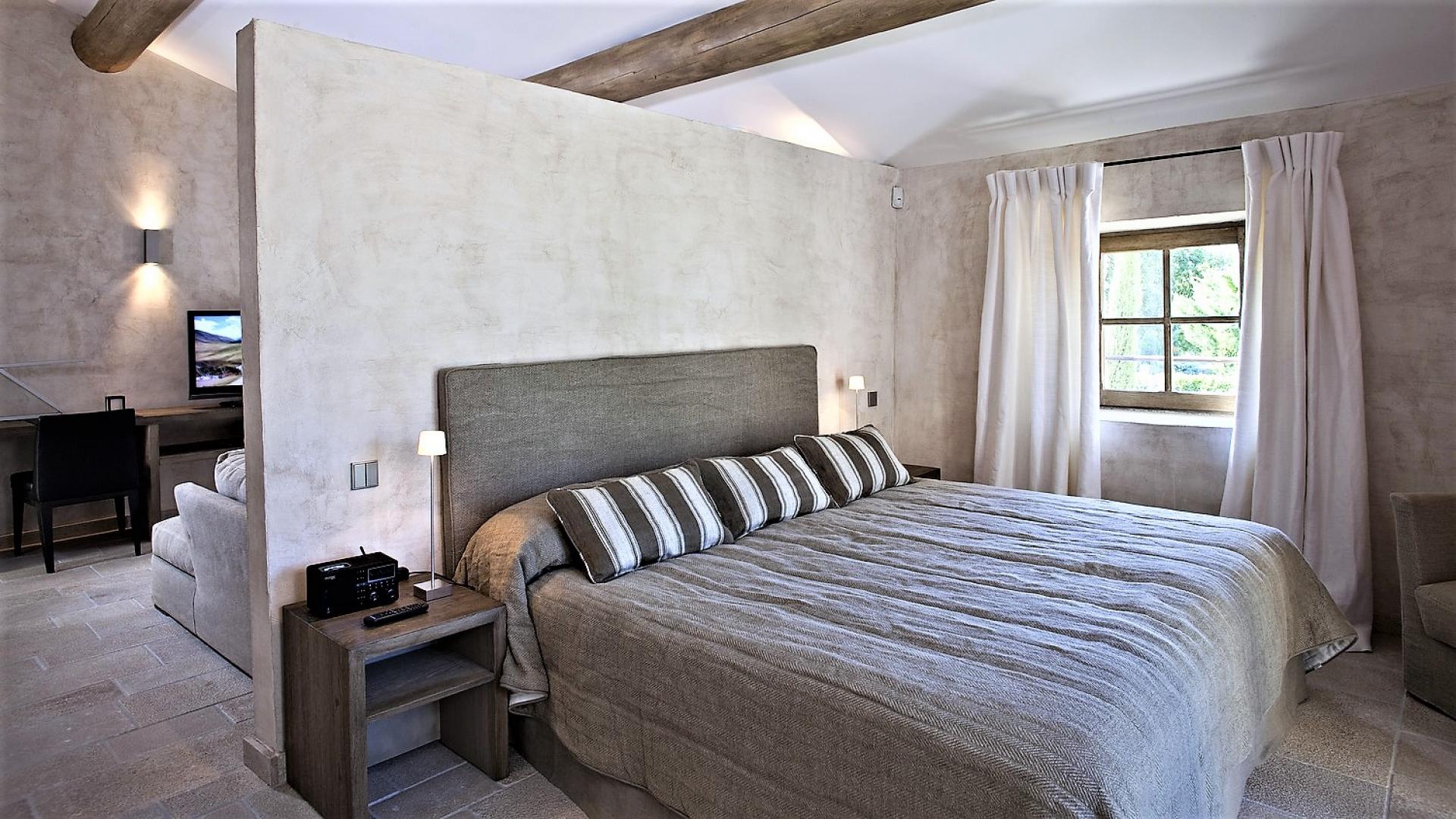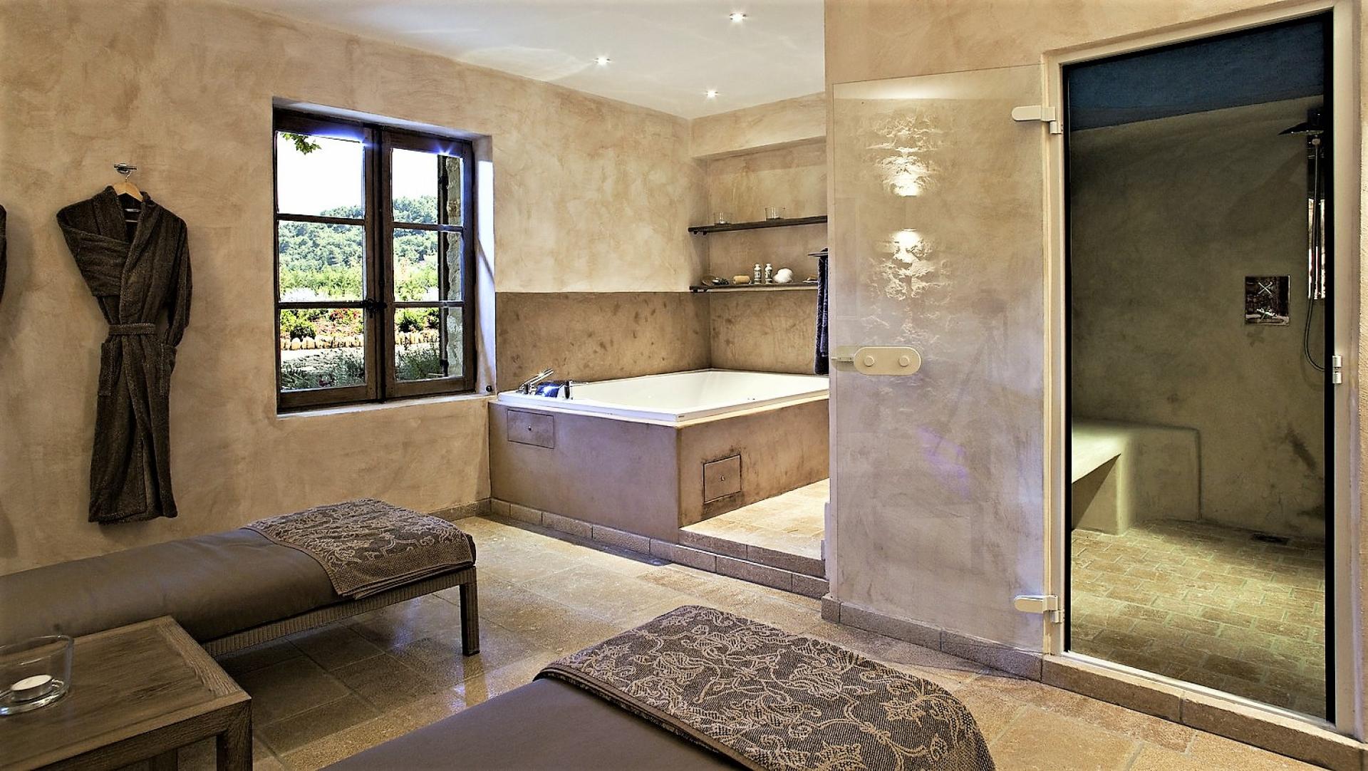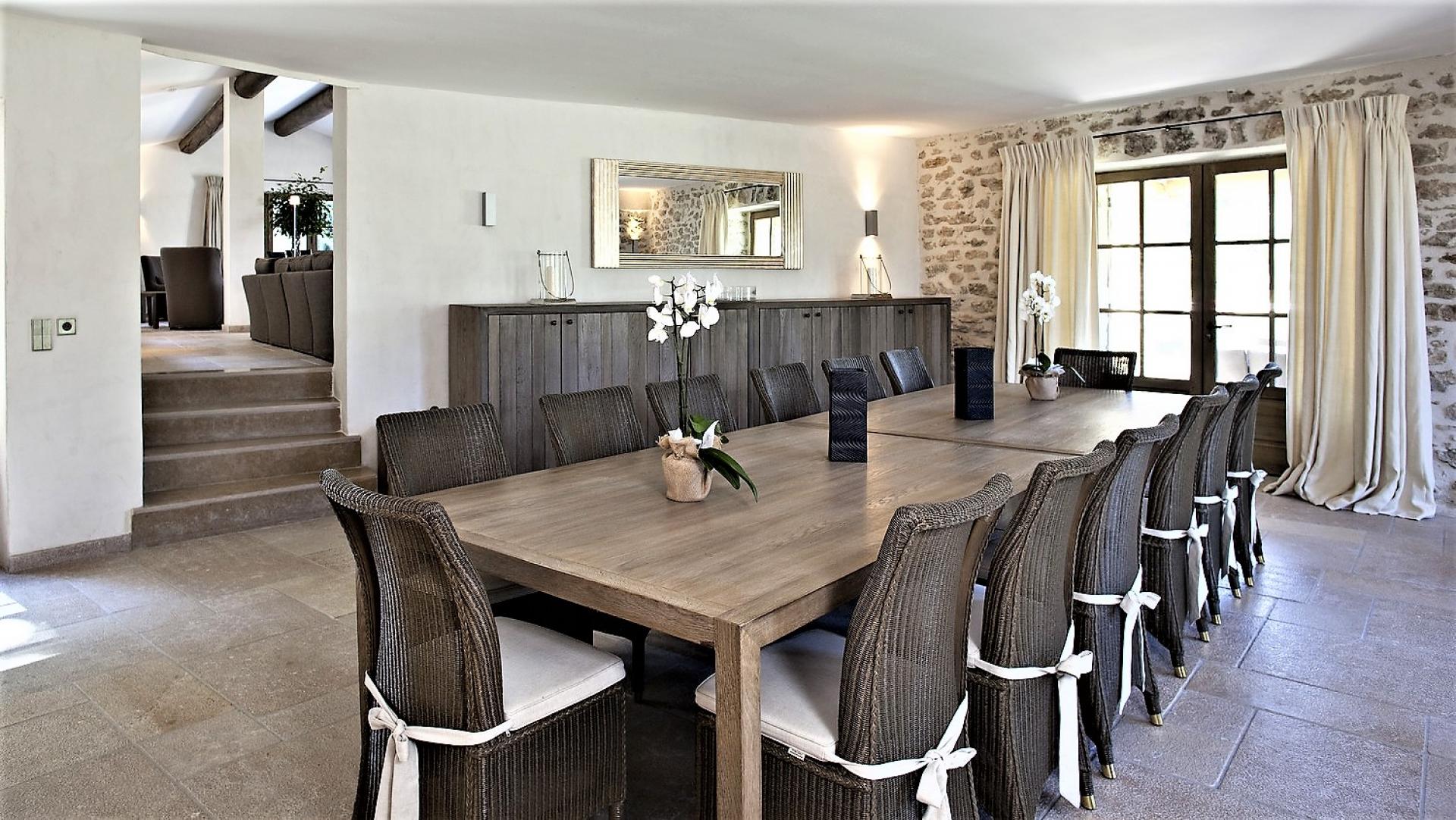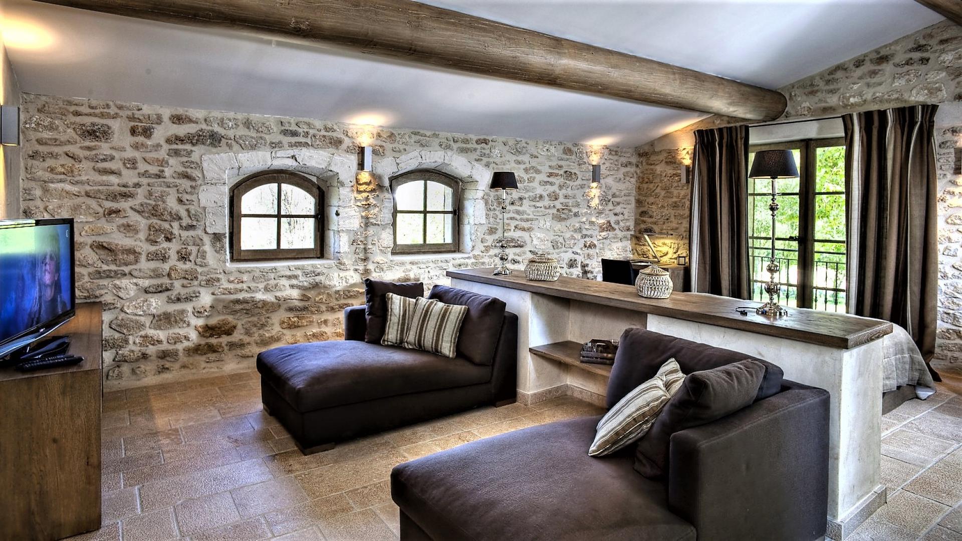 The interiors of the impressive bastide are immaculately decorated with the original stone walls, wooden doors and stone tiled floors a perfect back drop to modern understated furnishings in muted Provencal colours. Each room, whether for living or sleeping has a feeling of spaciousness and understated elegance, style and luxury.