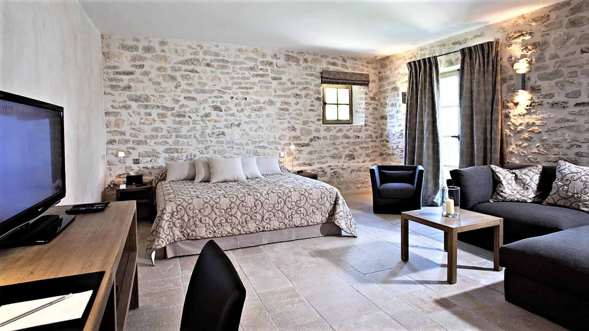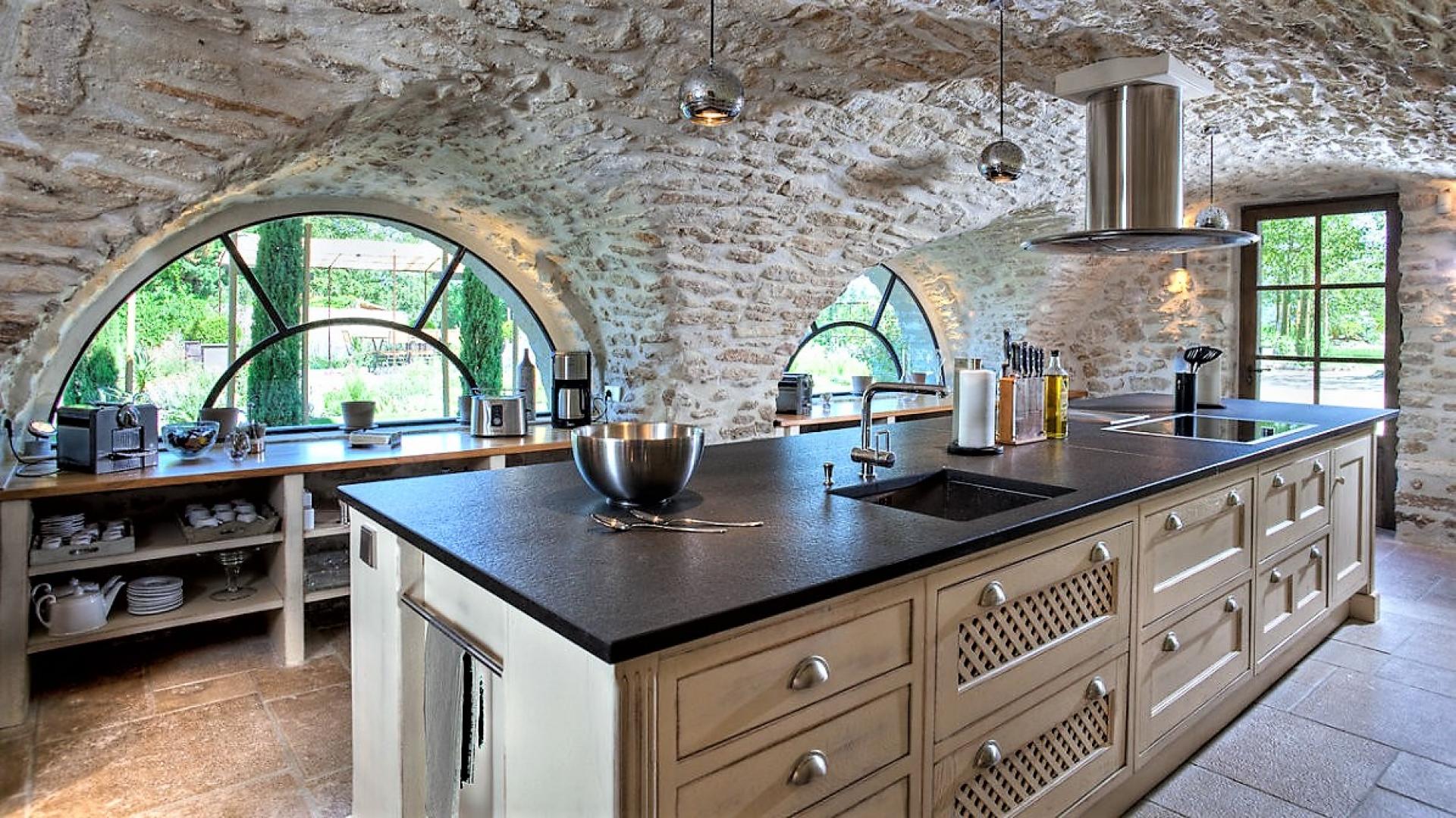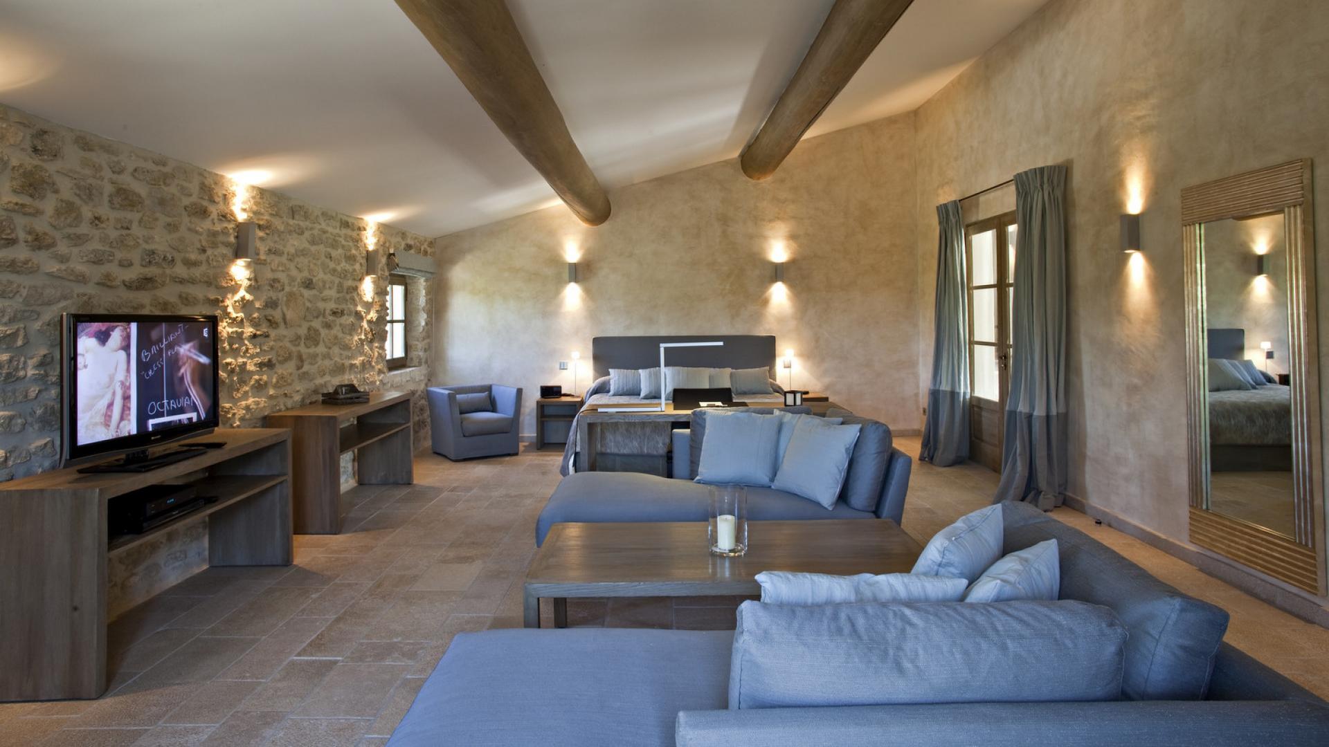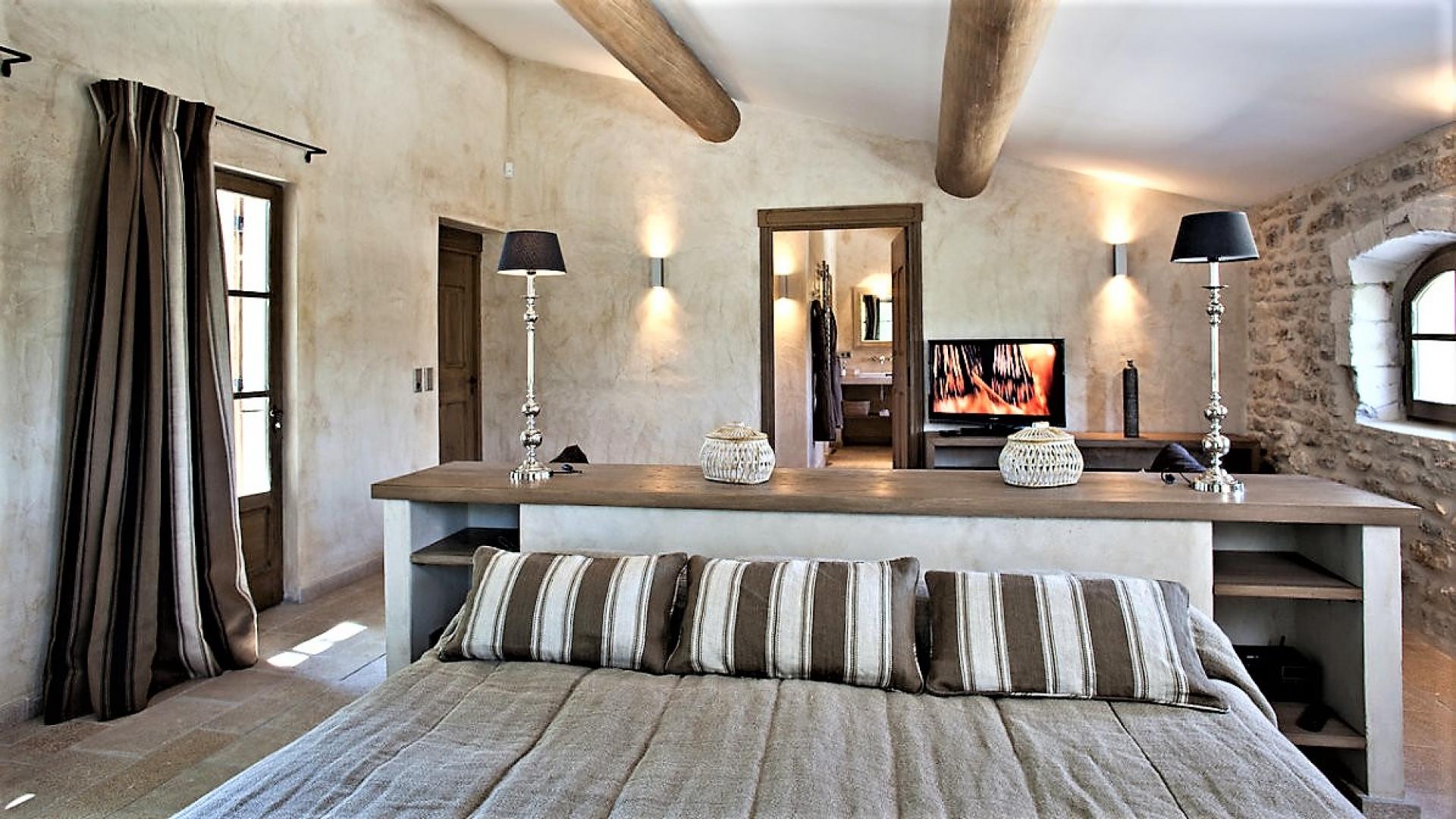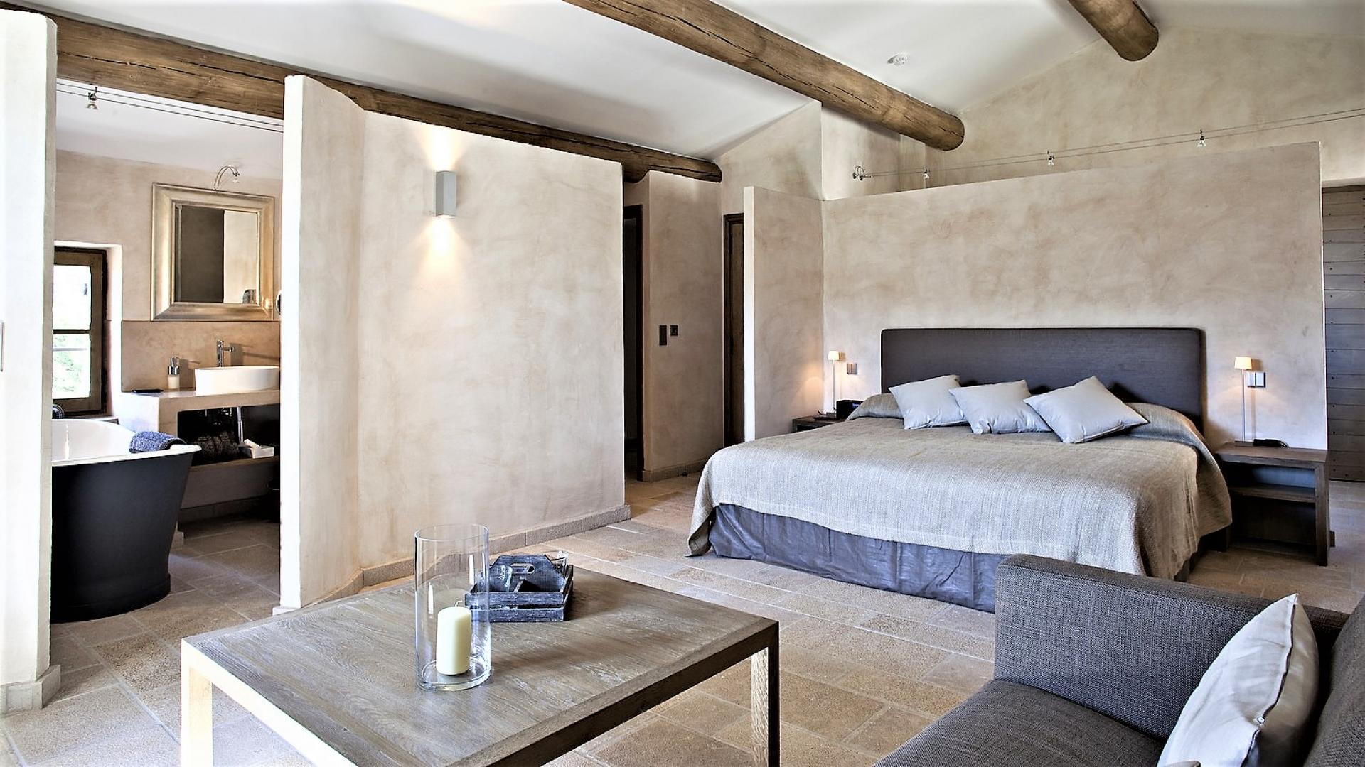 The interiors of the impressive bastide are immaculately decorated with the original stone walls, wooden doors and stone tiled floors a perfect back drop to modern understated furnishings in muted Provencal colours. Each room, whether for living or sleeping has a feeling of spaciousness and understated elegance, style and luxury.