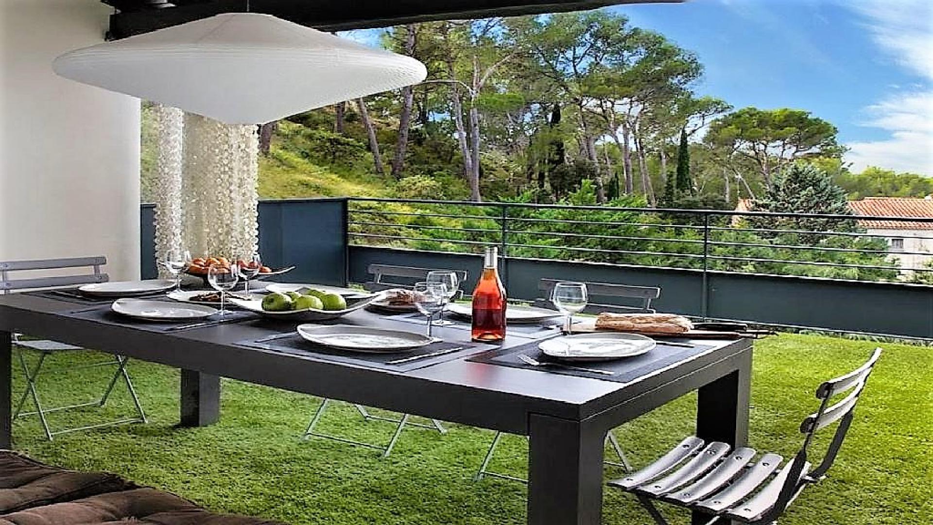 The house is situated at the end of a quiet cul-de-sac built on a hillside with grounds of 2,000sqm. Directly behind the pool are the hillside slopes that mark the beginning of les Alpilles, which are indeed well worth climbing, because at the top there are the most wonderful views to savour and enjoy...
