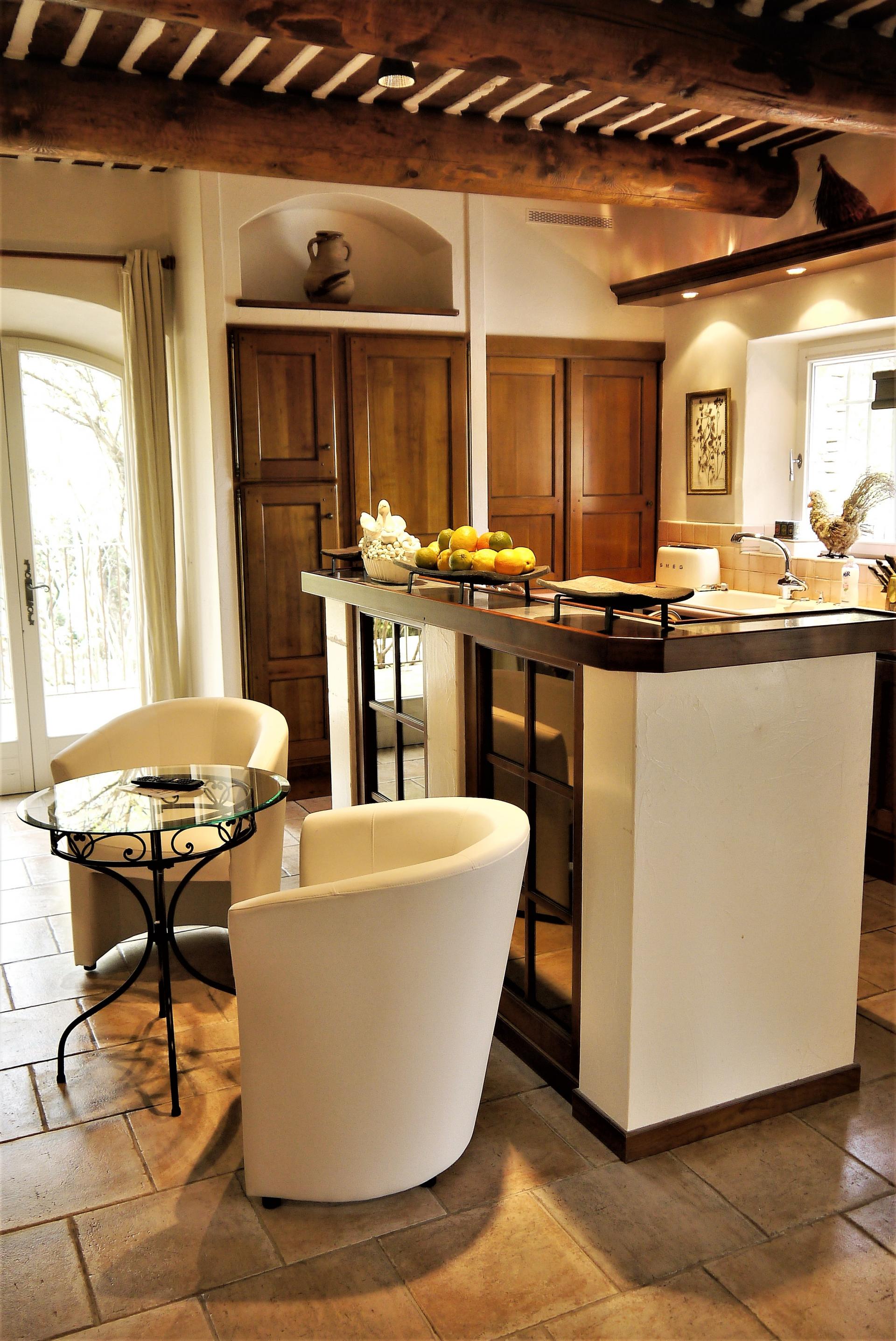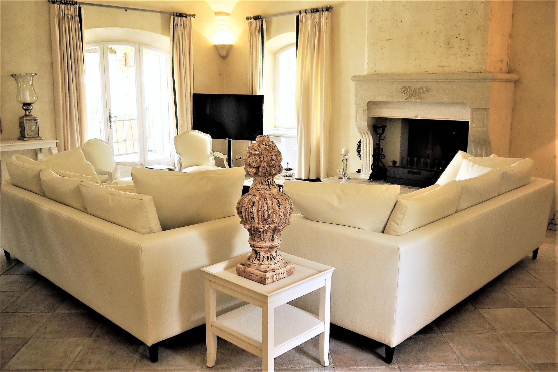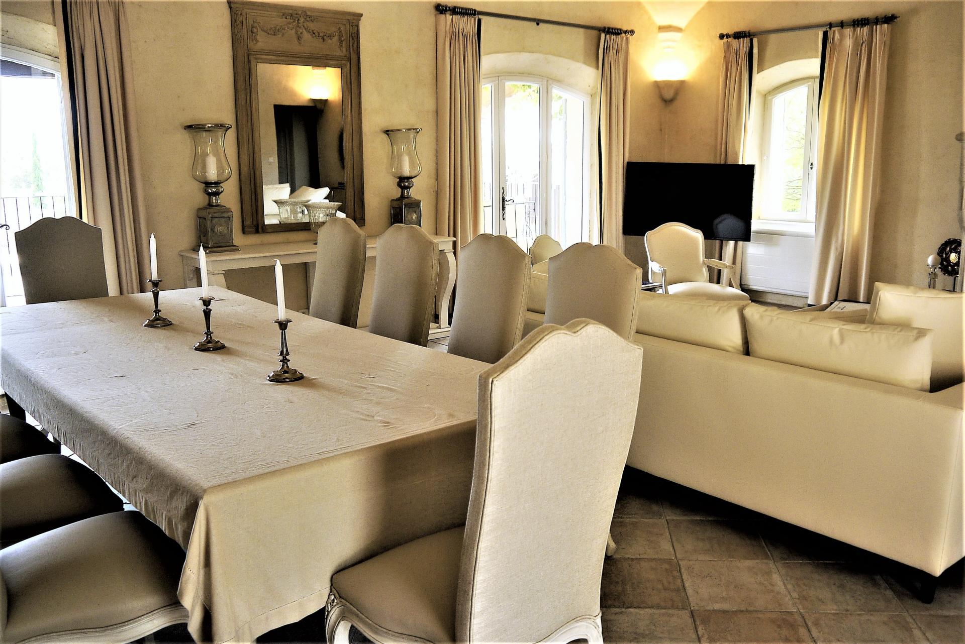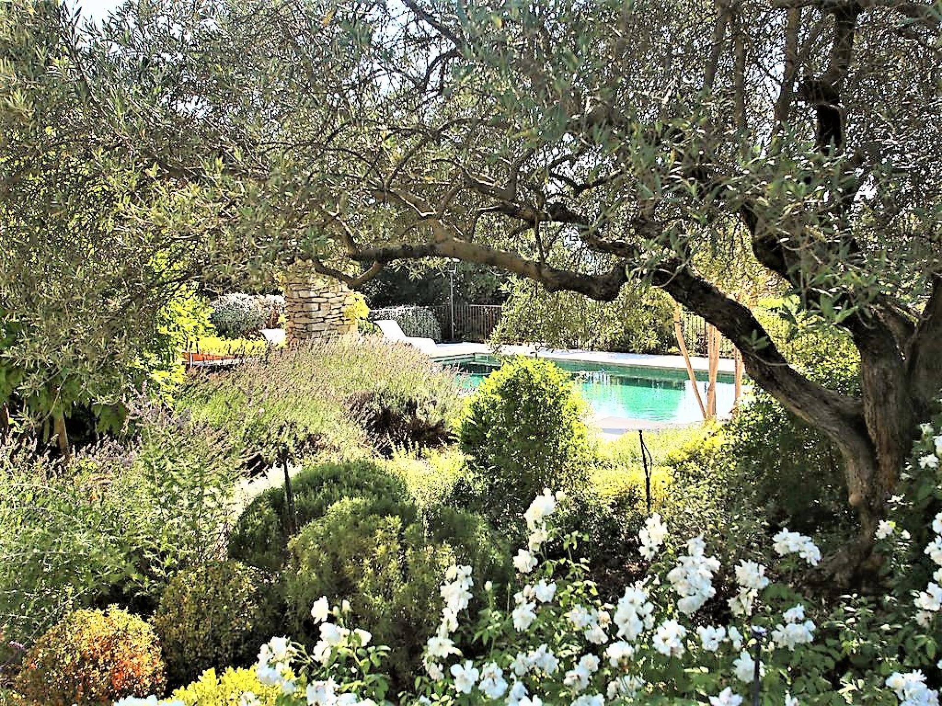 The villa is set in a very luxurious well maintained garden awash with a profusion of colours and scents and is completely private. To the rear of the property, which enjoys views of the Luberon hills, there is a large terrace for outside dining and an enclosed heated pool.