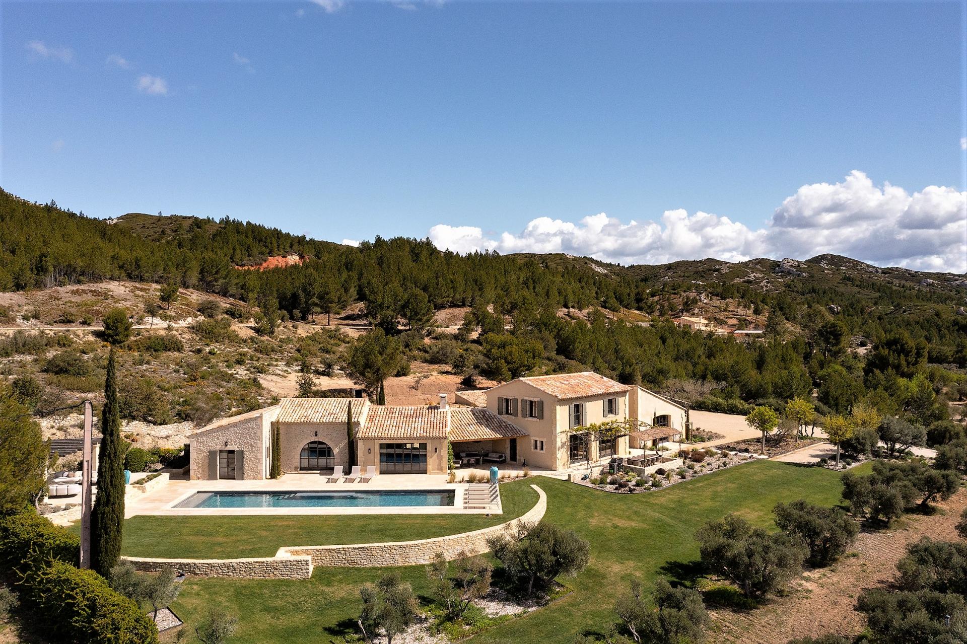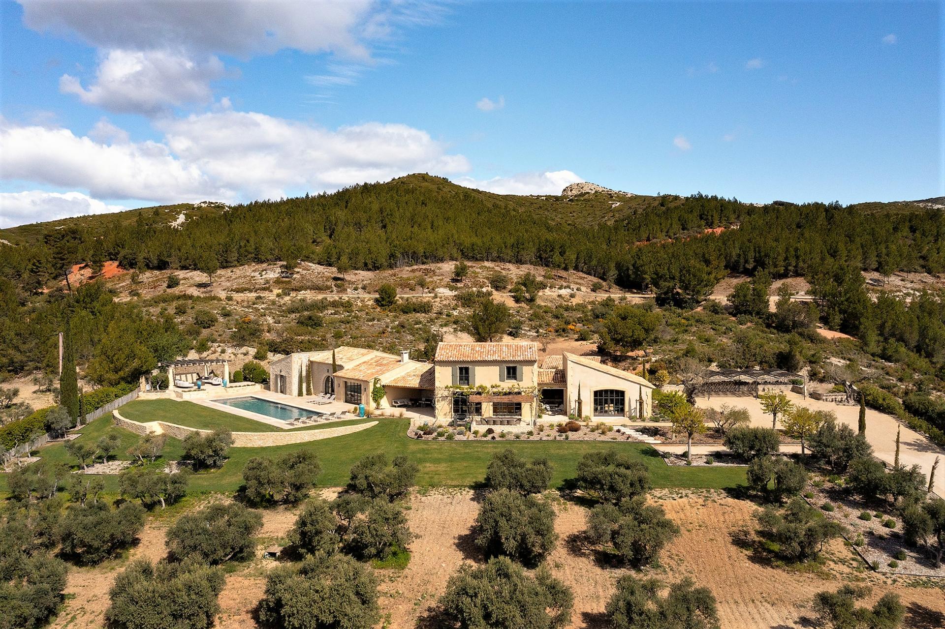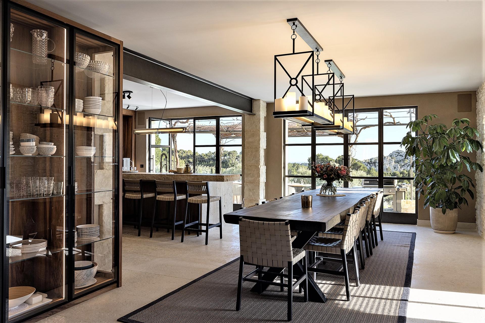 Located 5 minutes from the village of Maussane, with a dominant view of the surrounding hills and olive groves, this 400 m2 property is an invitation to serenity, calm and nature with its 1 hectare garden nestled in the heart of the Alpilles Natural Park.