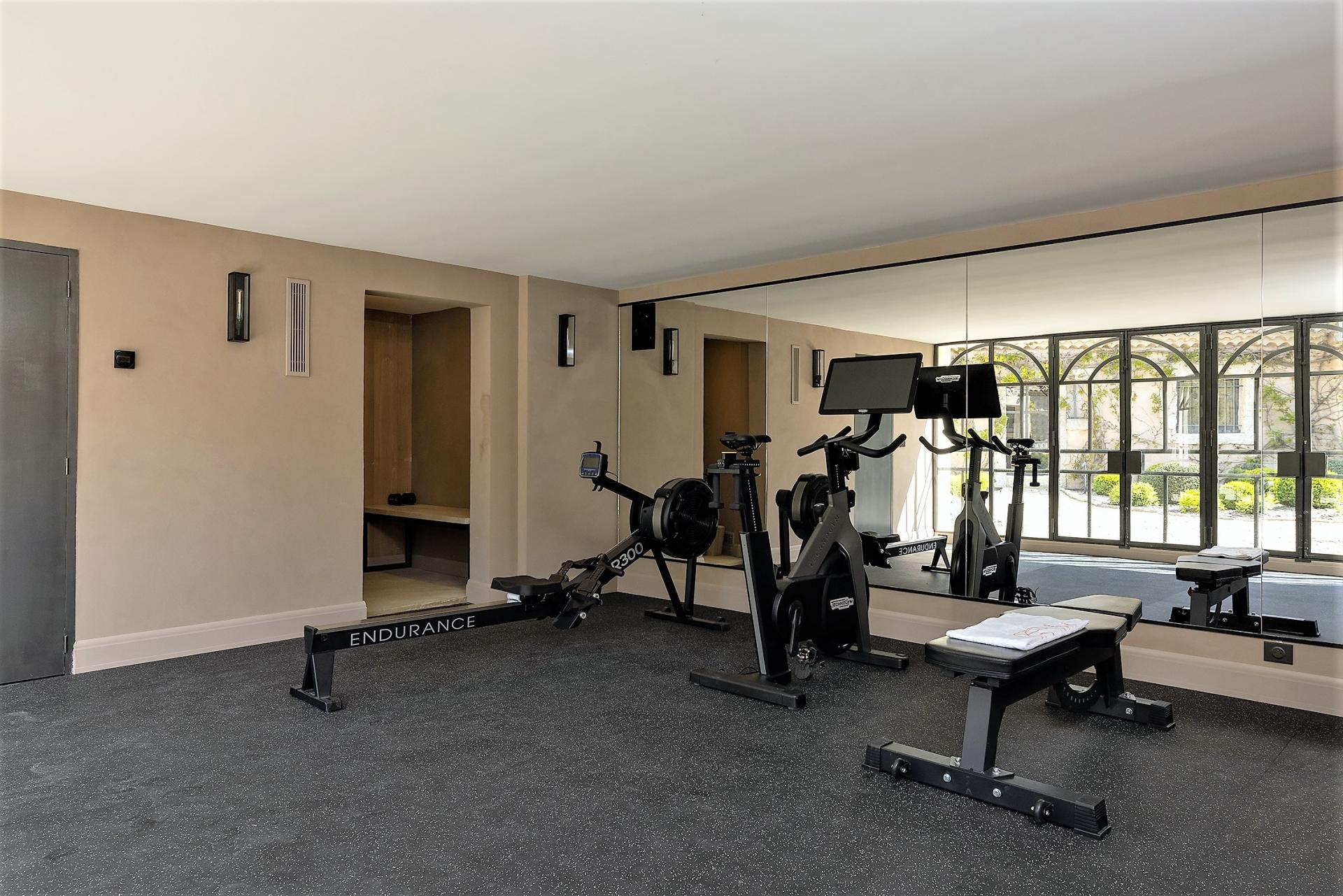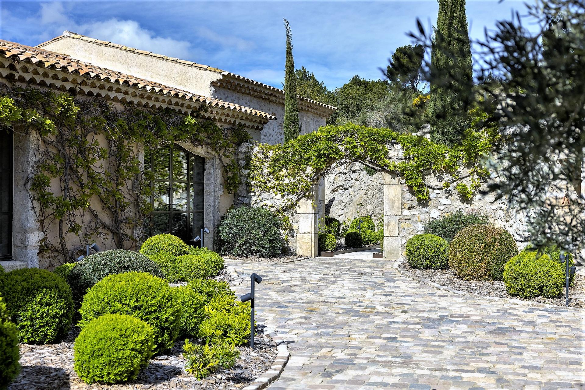 A paved courtyard with a Provencal atmosphere takes you to the gym, sauna and a sixth bedroom ensuite.