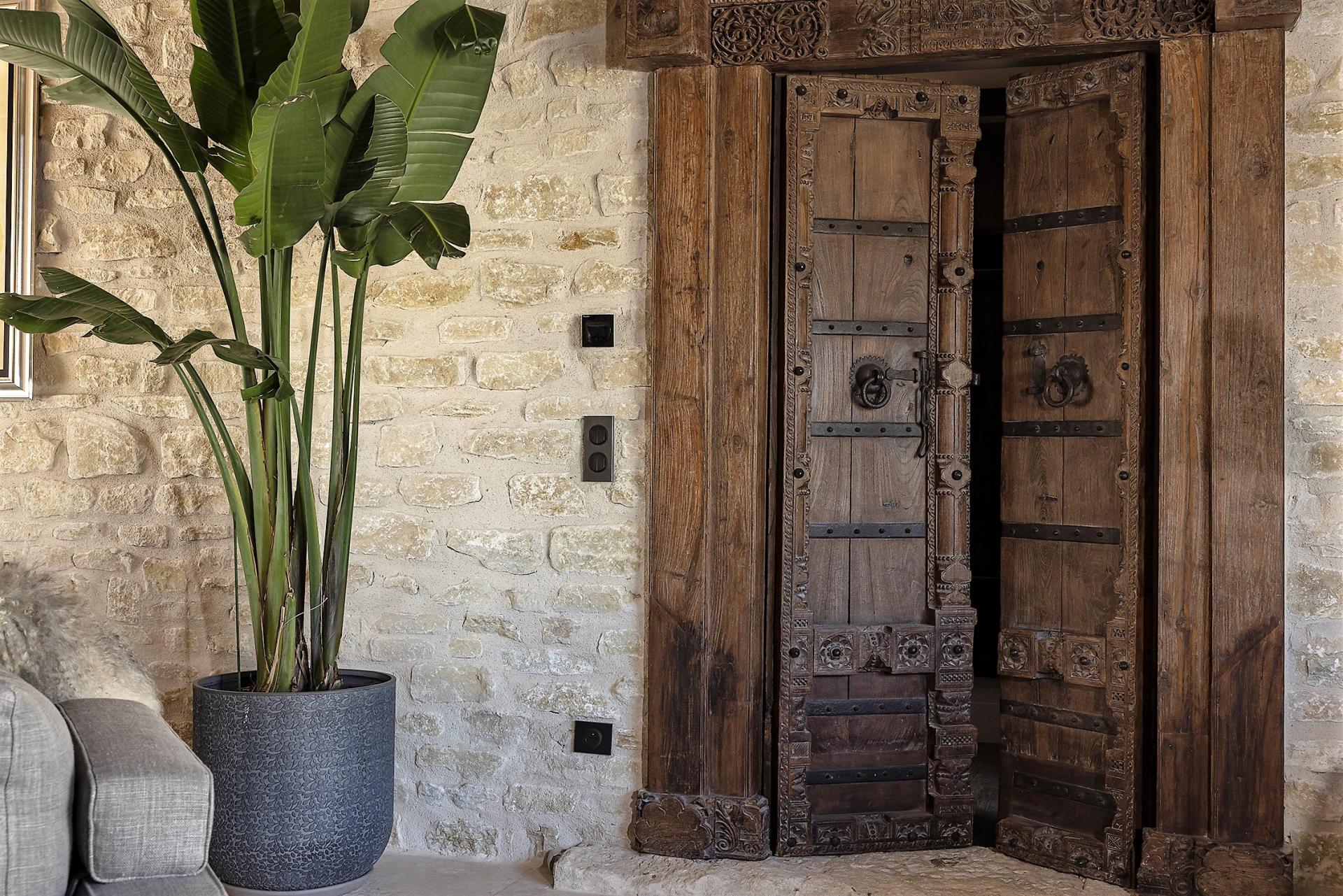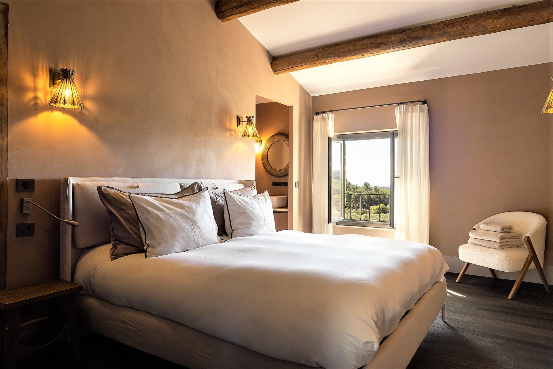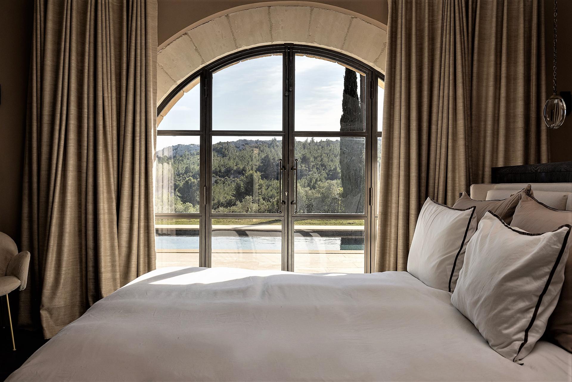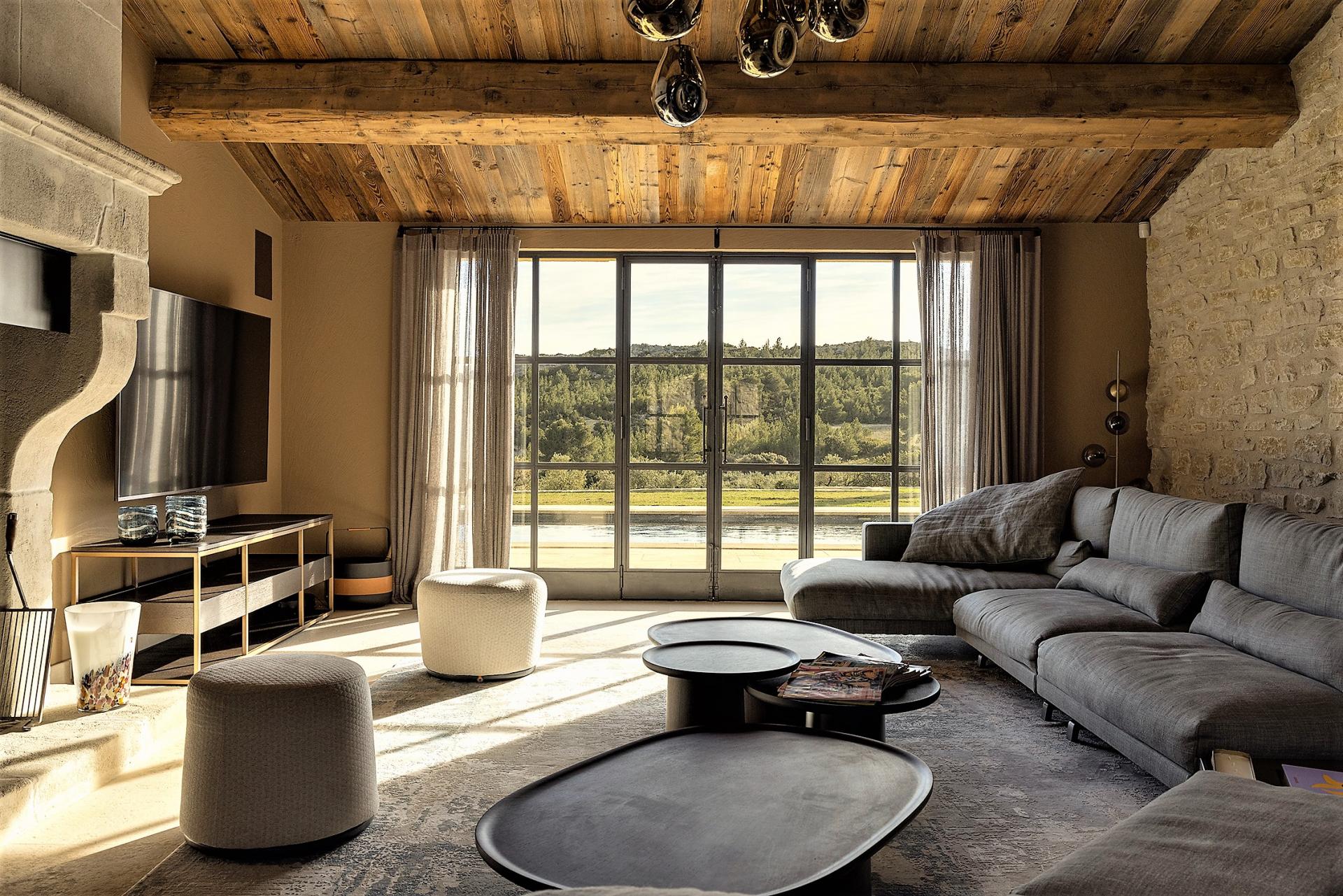 A spacious 65m2 living room with fireplace opens onto the Alpilles and the swimming pool, juxtaposing a spacious suite with direct access to the swimming pool. Two other en-suite bedrooms in the annex will accomodate your guests.