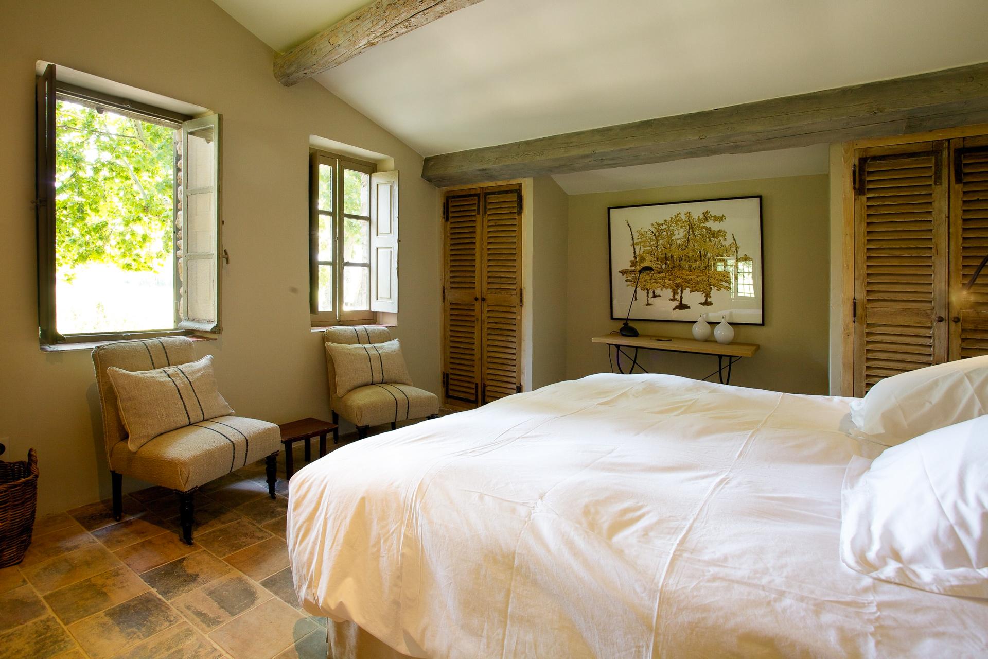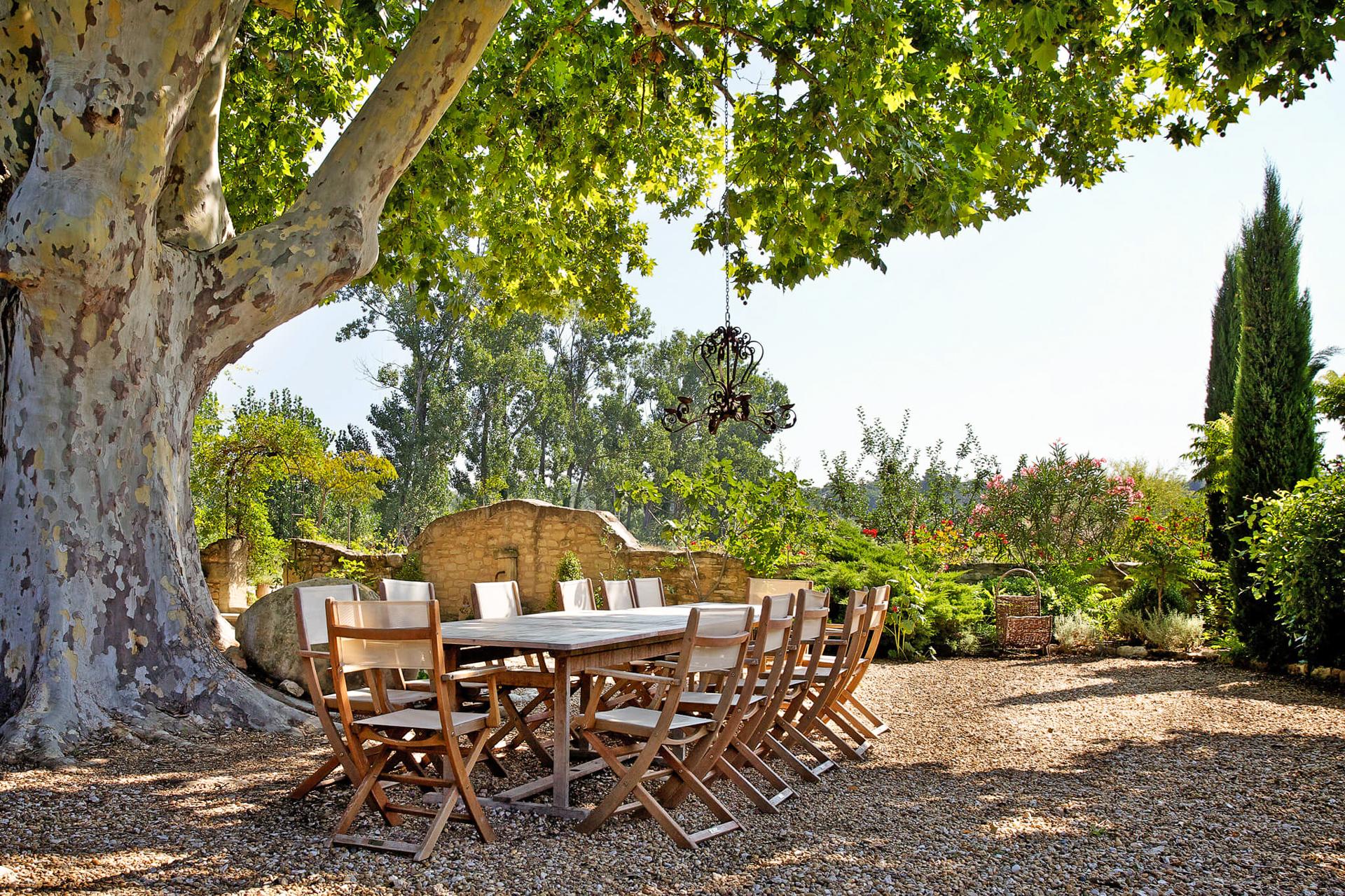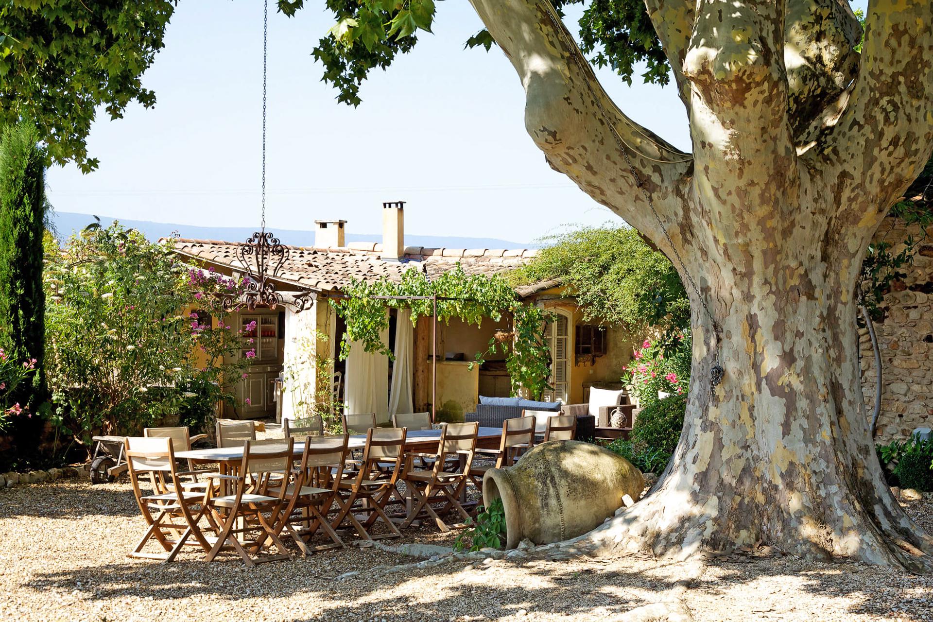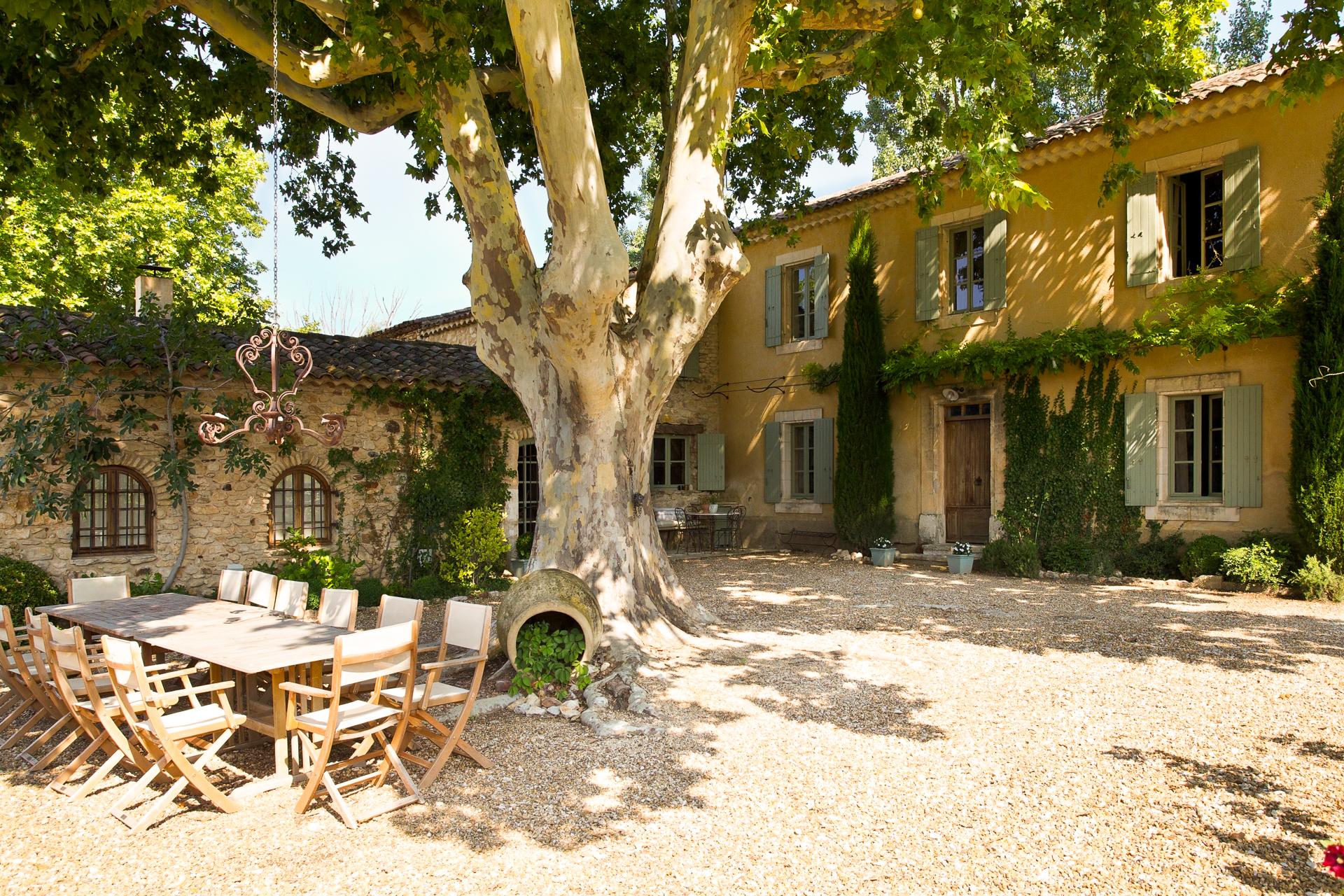 This is an attractive recently renovated 18th century mas with a shady courtyard, featuring a 300-year-old plane tree and large grounds-which includes a lavender field, swimming pool and summer kitchen. This splendid property has one adjoining wall with an old mas next door that was once the old school house and is nestled in the Luberon between Bonnieux and Roussilon.