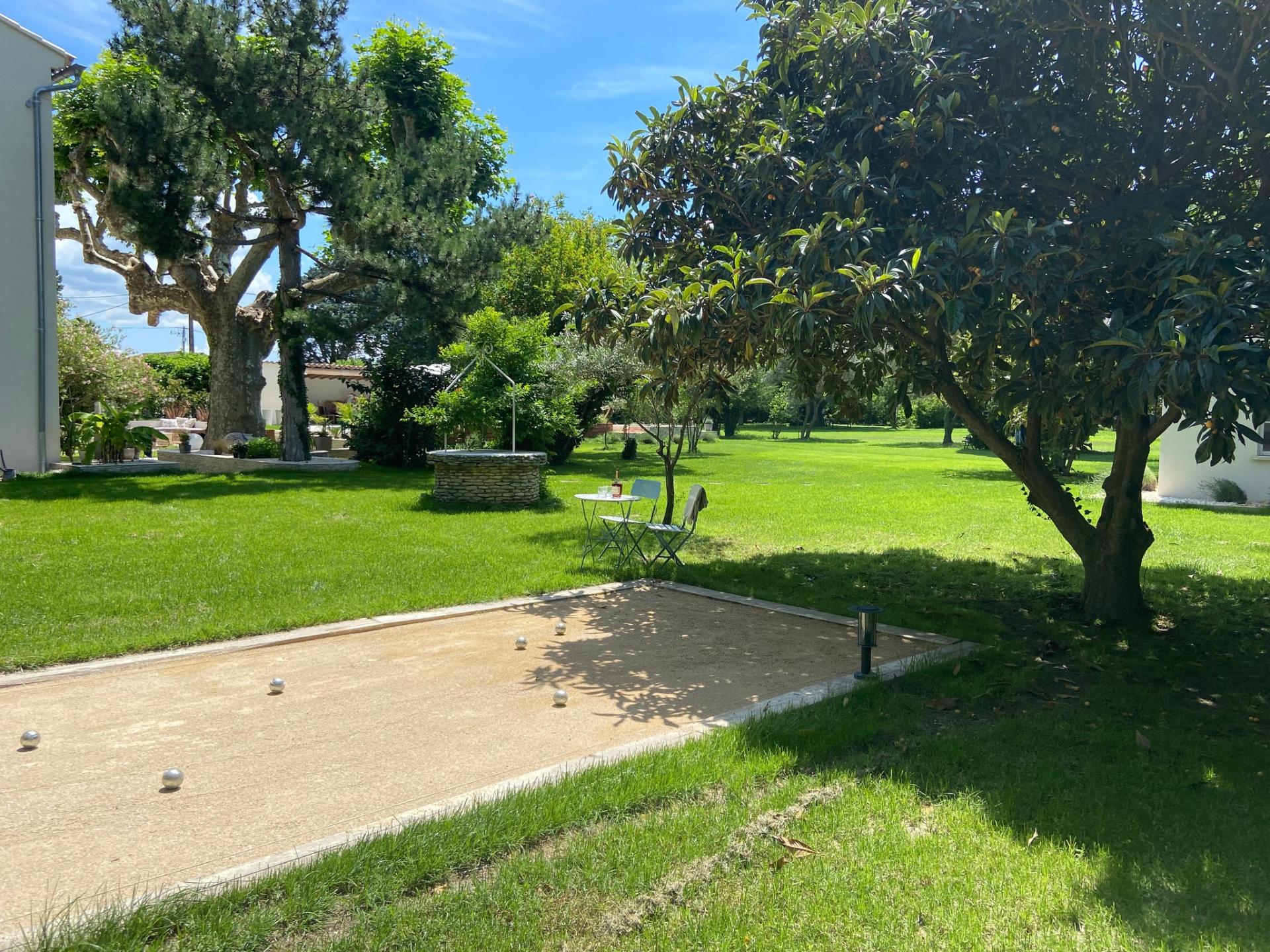 Outside, a large swimming pool (11 x 5 m) with its sunbeds and hammock, a jacuzzi (6 seats), a dining area under a century-old plane tree, a relaxing sofa area around the brazier and the unmissable pétanque court, all awaiting you for a friendly, enjoyable and relaxing holiday in a vast wooded park of 5000m2.