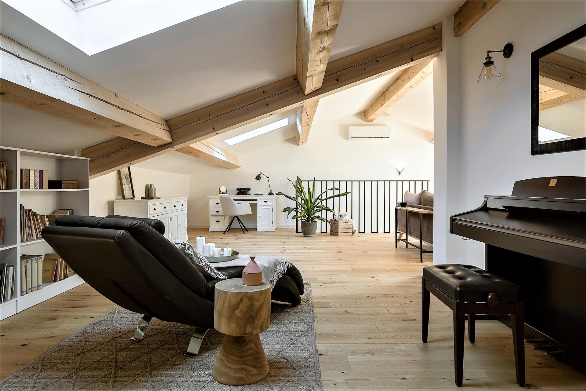 On the first floor, you will find a magnificent master suite of more than 40m2 with its dressing room and its large bathroom as well as 2 other bedrooms, each benefiting from its own bathroom. In the attic, a living space with piano, relaxation area, and workspace, 2 additional bedrooms and a bathroom. All rooms are equipped with central air conditioning.