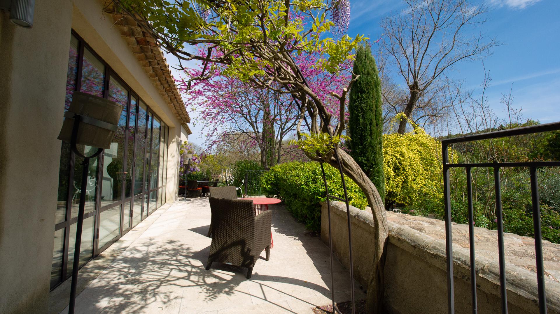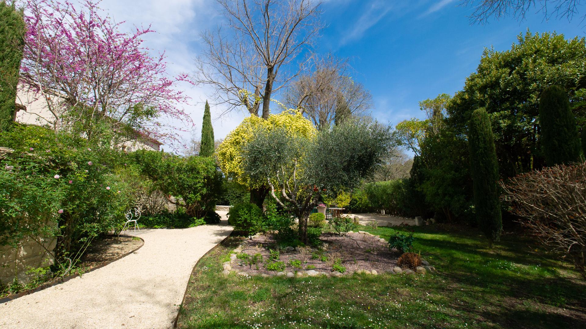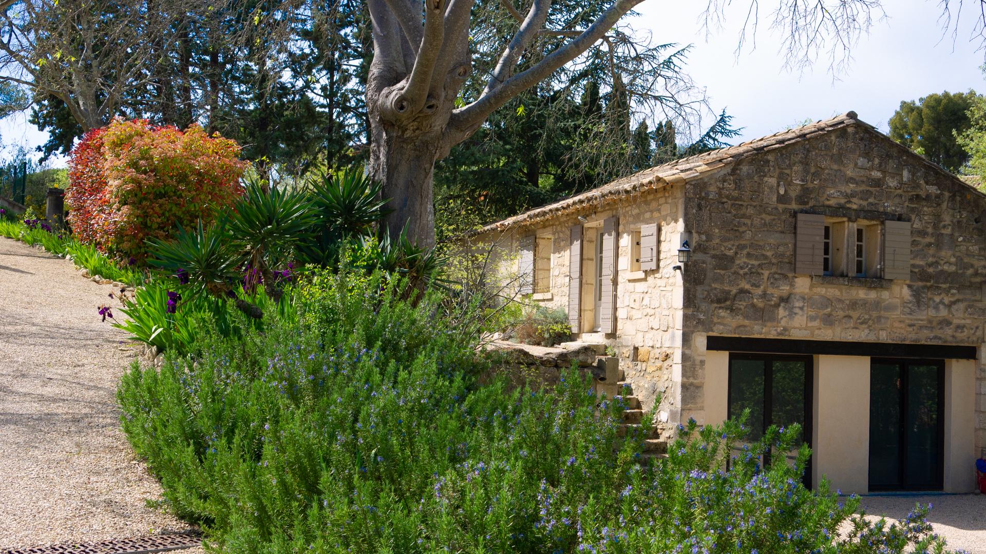Facing the Alpilles and located on the outskirts of Saint-Rémy-de-Provence, the Mas des Eclats invites you to an intimate setting in a beautiful stone building with an agricultural heritage dating from the 18th century. Benefiting from a large garden on several levels, with trees and landscaped where pines, oaks and century-old hackberry trees rub shoulders, it amazes with its diversity and invites you to take a relaxing stroll.