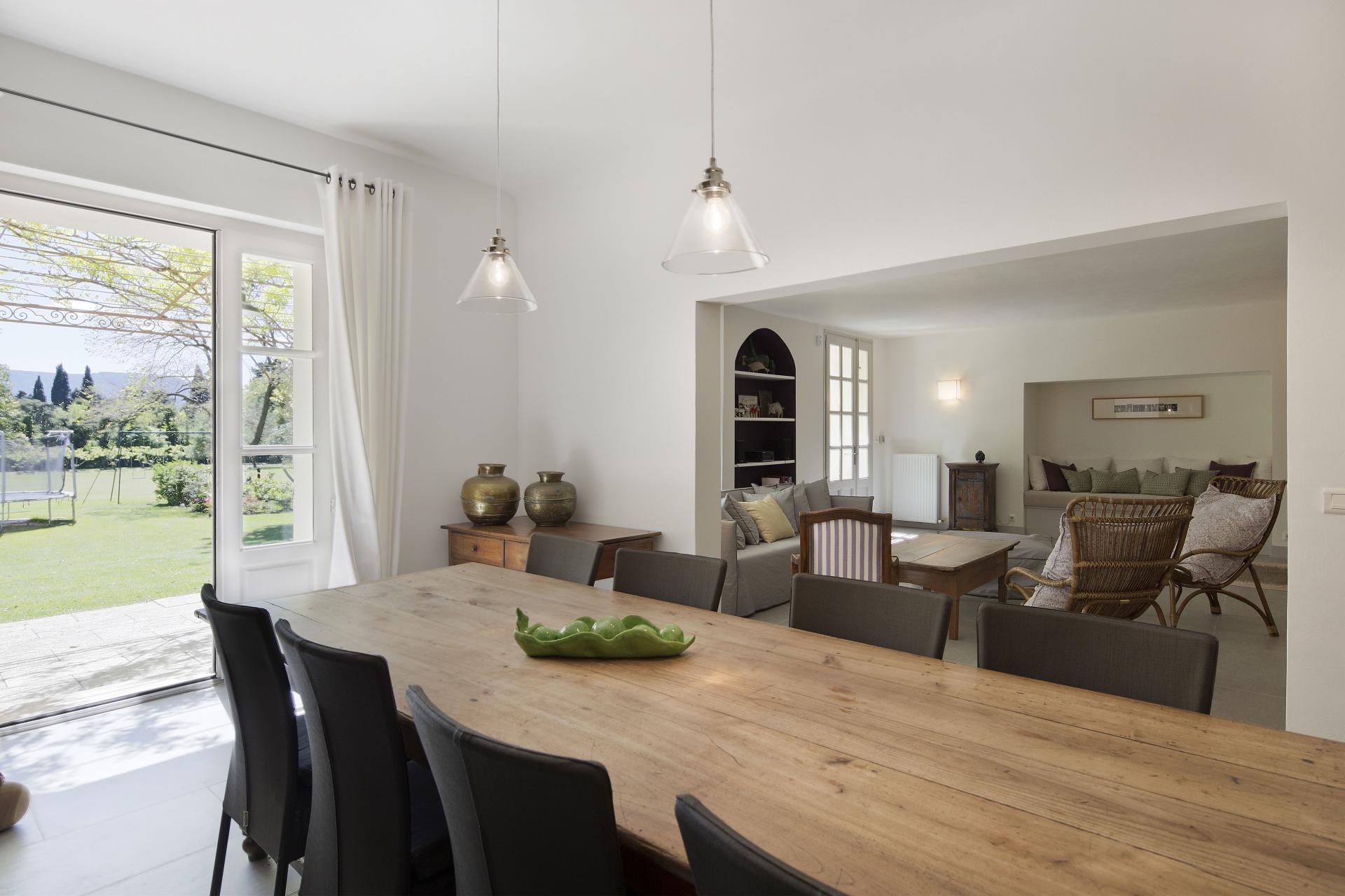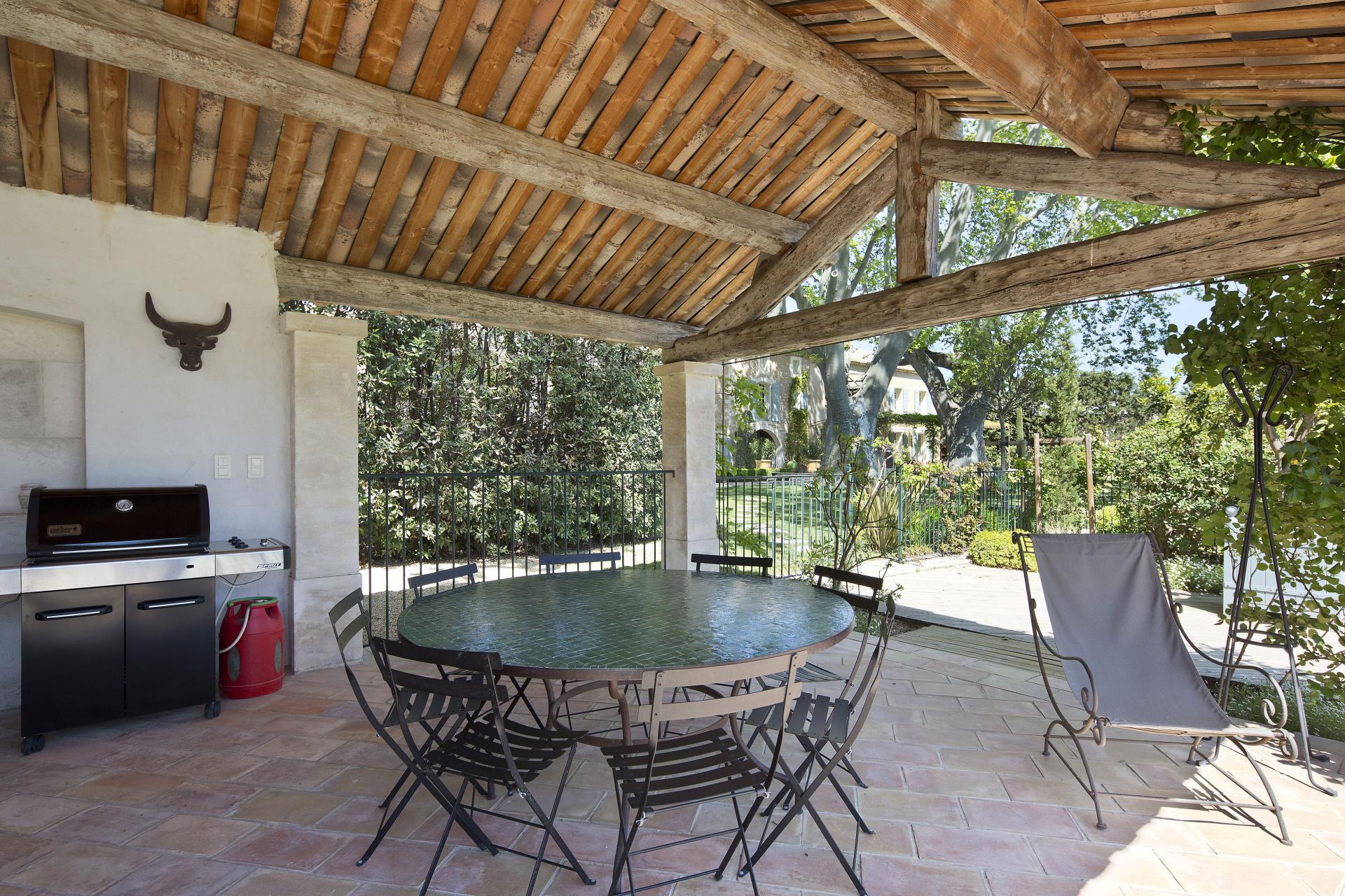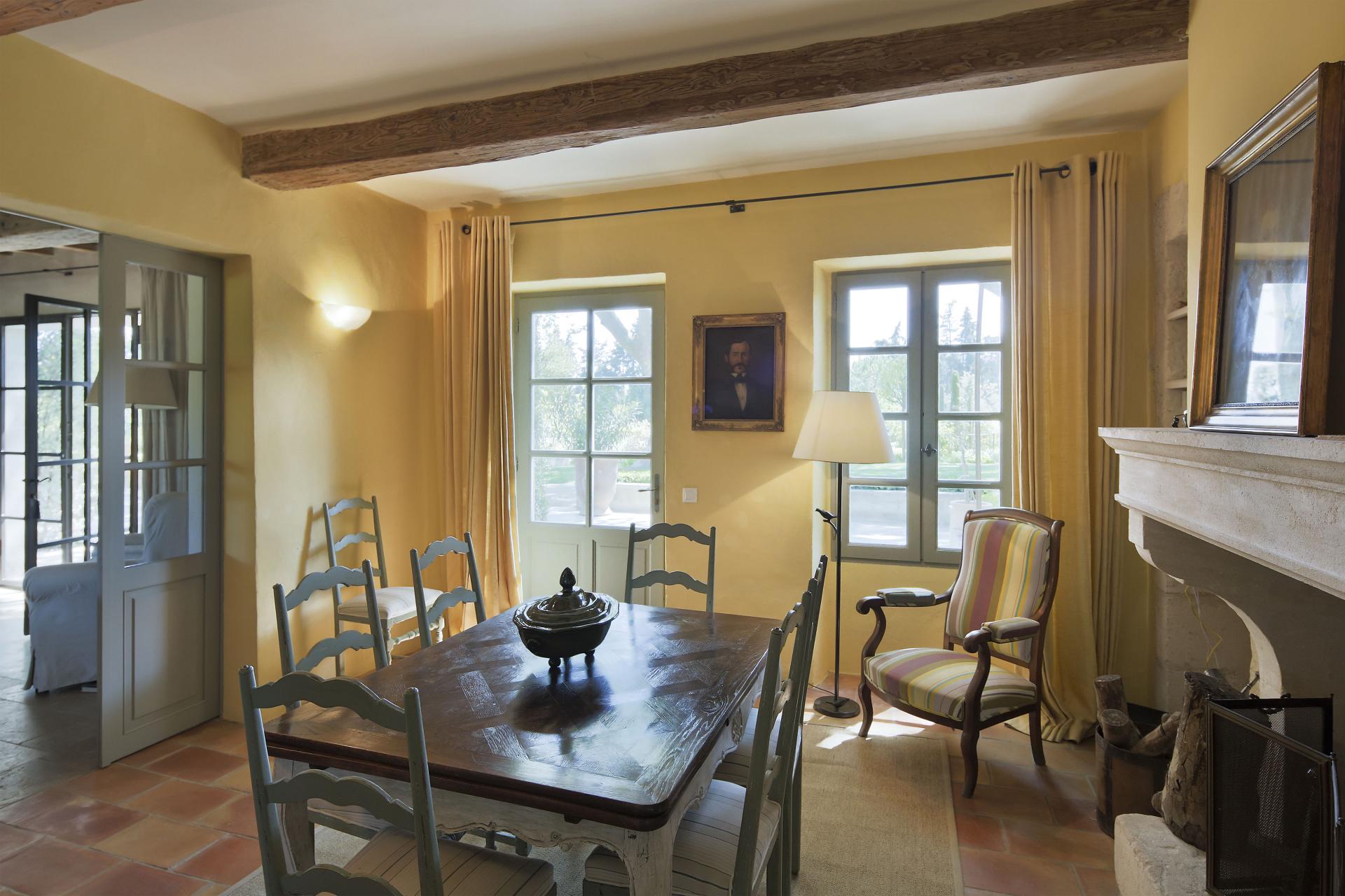 This is an imposing and rather beautiful mas dating back to the mid-19th century with a later extension added to it. It is surrounded by extensive well-maintained gardens of nearly 5 hectares, which include an olive grove, an orchard of pear trees, almond, fig trees, three sturdy plane trees, a pretty kitchen garden, an ornamental pool, a chicken coop for fresh daily eggs, a swimming pool of 18 metres and a vast terrace of 400m2, part of which is covered with white wisteria. The terrace has both a lounging area and an area for dining.
