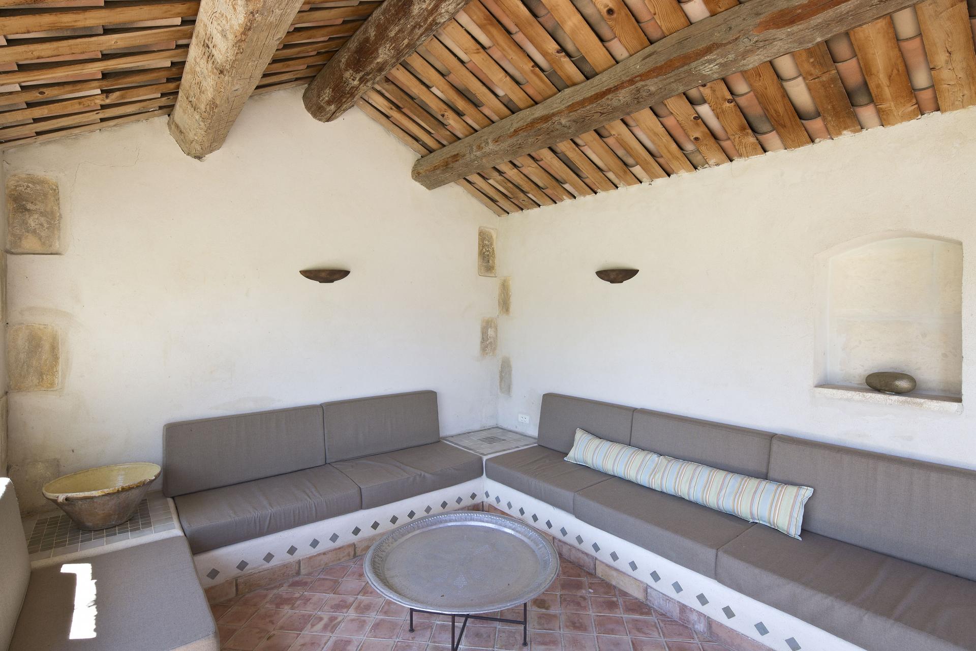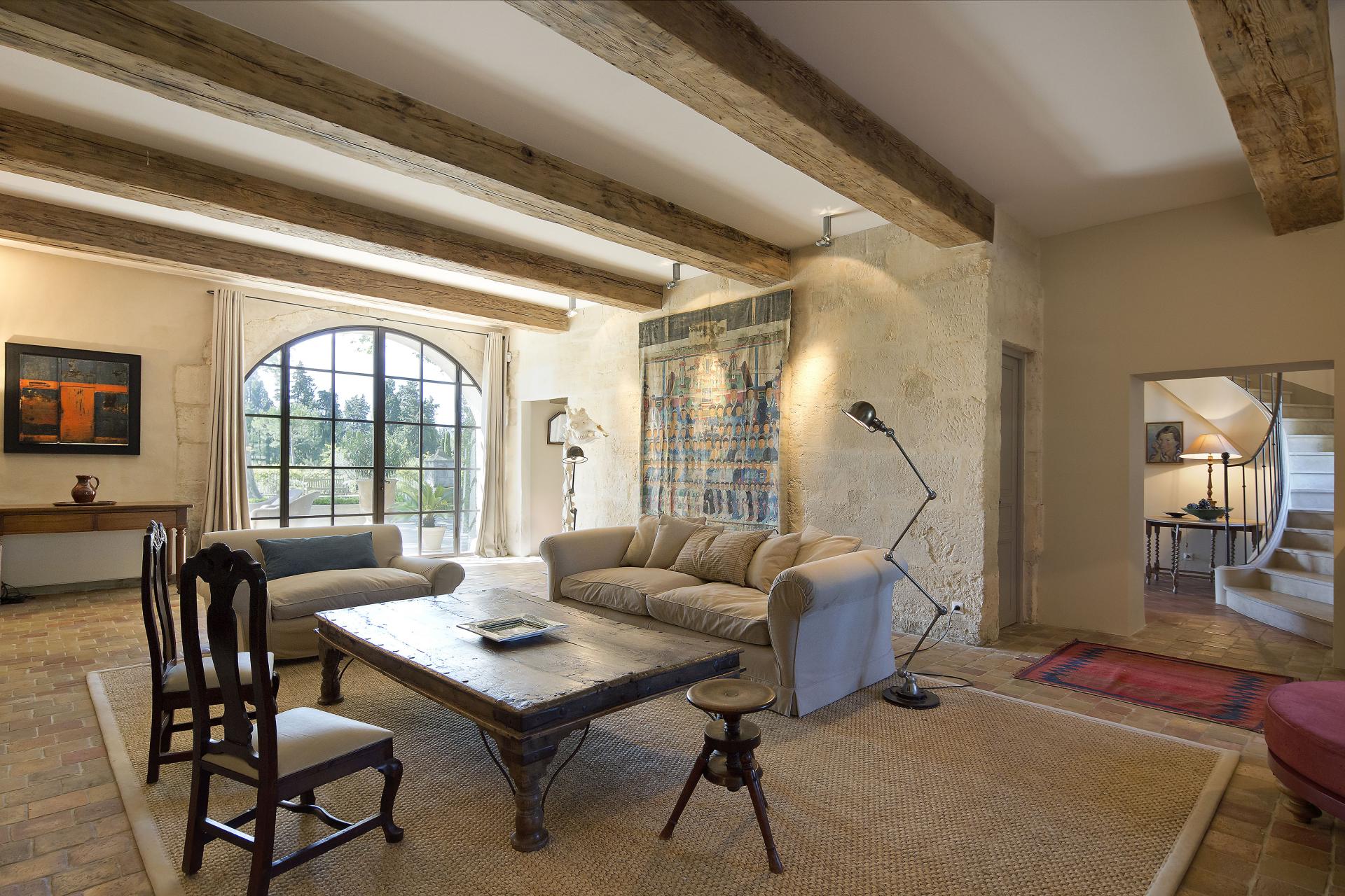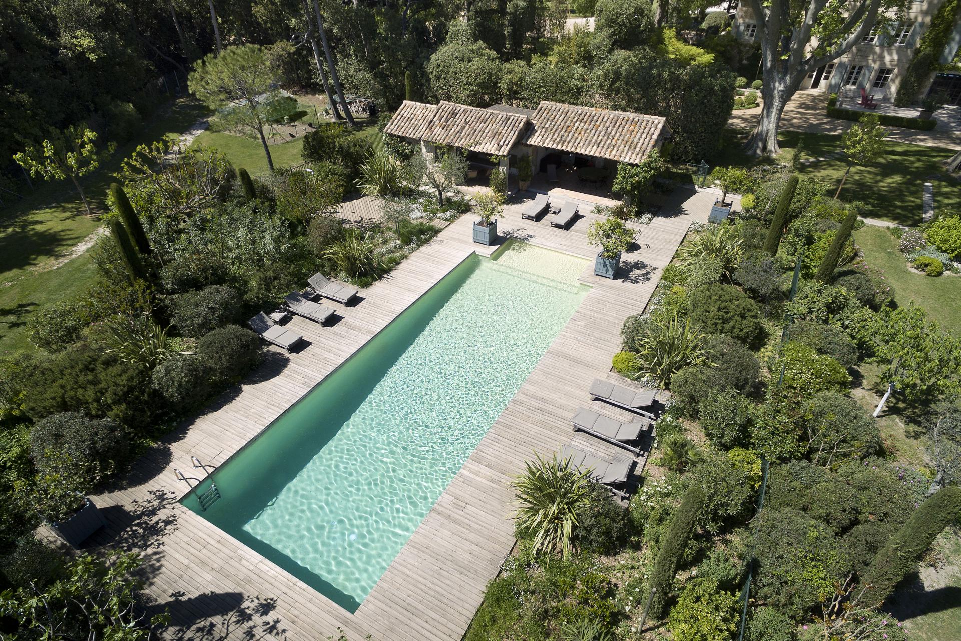 This is an imposing and rather beautiful mas dating back to the mid-19th century with a later extension added to it. It is surrounded by extensive well-maintained gardens of nearly 5 hectares, which include an olive grove, an orchard of pear trees, almond, fig trees, three sturdy plane trees, a pretty kitchen garden, an ornamental pool, a chicken coop for fresh daily eggs, a swimming pool of 18 metres and a vast terrace of 400m2, part of which is covered with white wisteria. The terrace has both a lounging area and an area for dining.