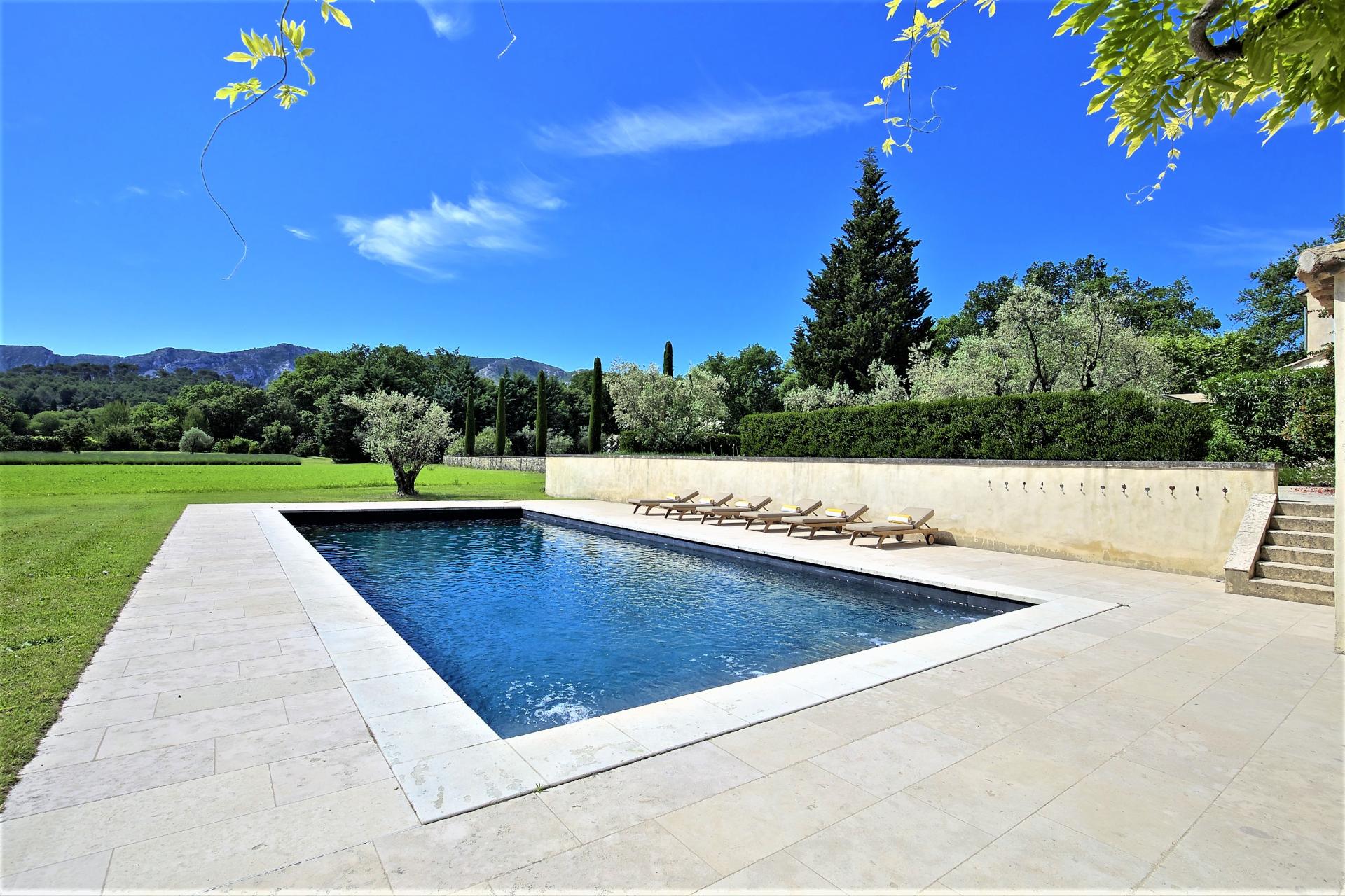 Set in 10 hectares of parkland, which include an olive grove, landscaped gardens, lawns, a pretty flowering field, a large heated pool and floodlight tennis court, with views of les Alpilles and all within a 20-minute walk or 5-minute drive to St Remy de Provence. This large mas with two independent cottages is a wonderful setting for a large group of friends or an extended family.