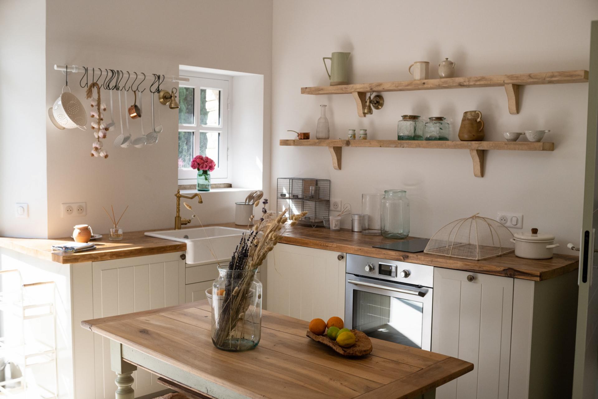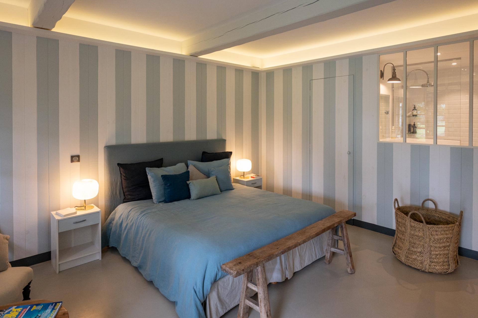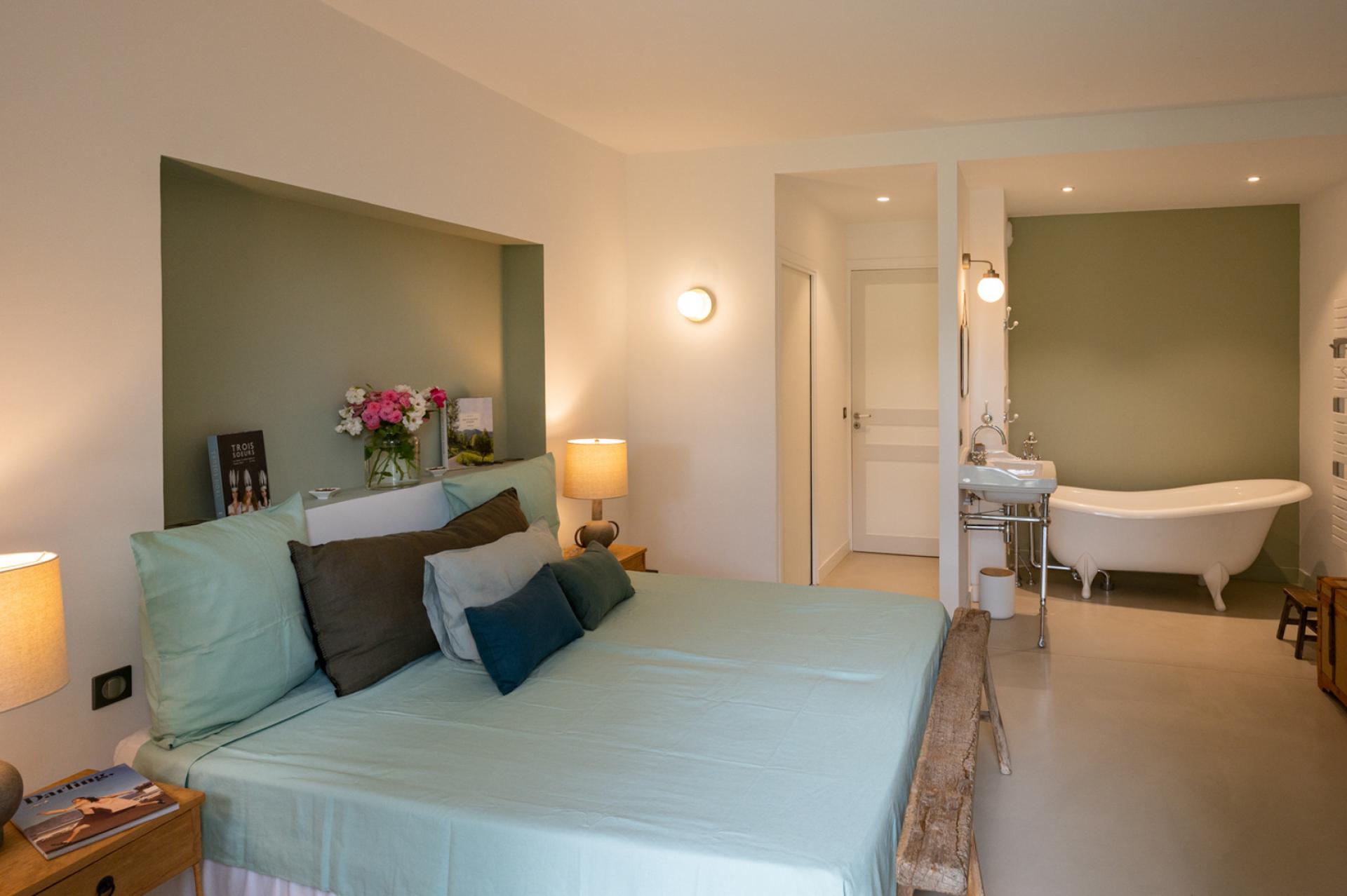 Further on, there is a 12 x 5 heated swimming pool which has a system of removable wooden barriers to protect access to the youngest if necessary. Several dry-stone buildings of the most beautiful finish are nearby. There is a very well-equipped pool house, outdoor WC and shower, a fitness room and a mazet with a double bedroom en suite, with living room and kitchen. As well as a caravan with New England decoration, which has a double bedroom with its open bathtub, a kitchenette opening onto a living room with fireplace insert and a shower room and WC.