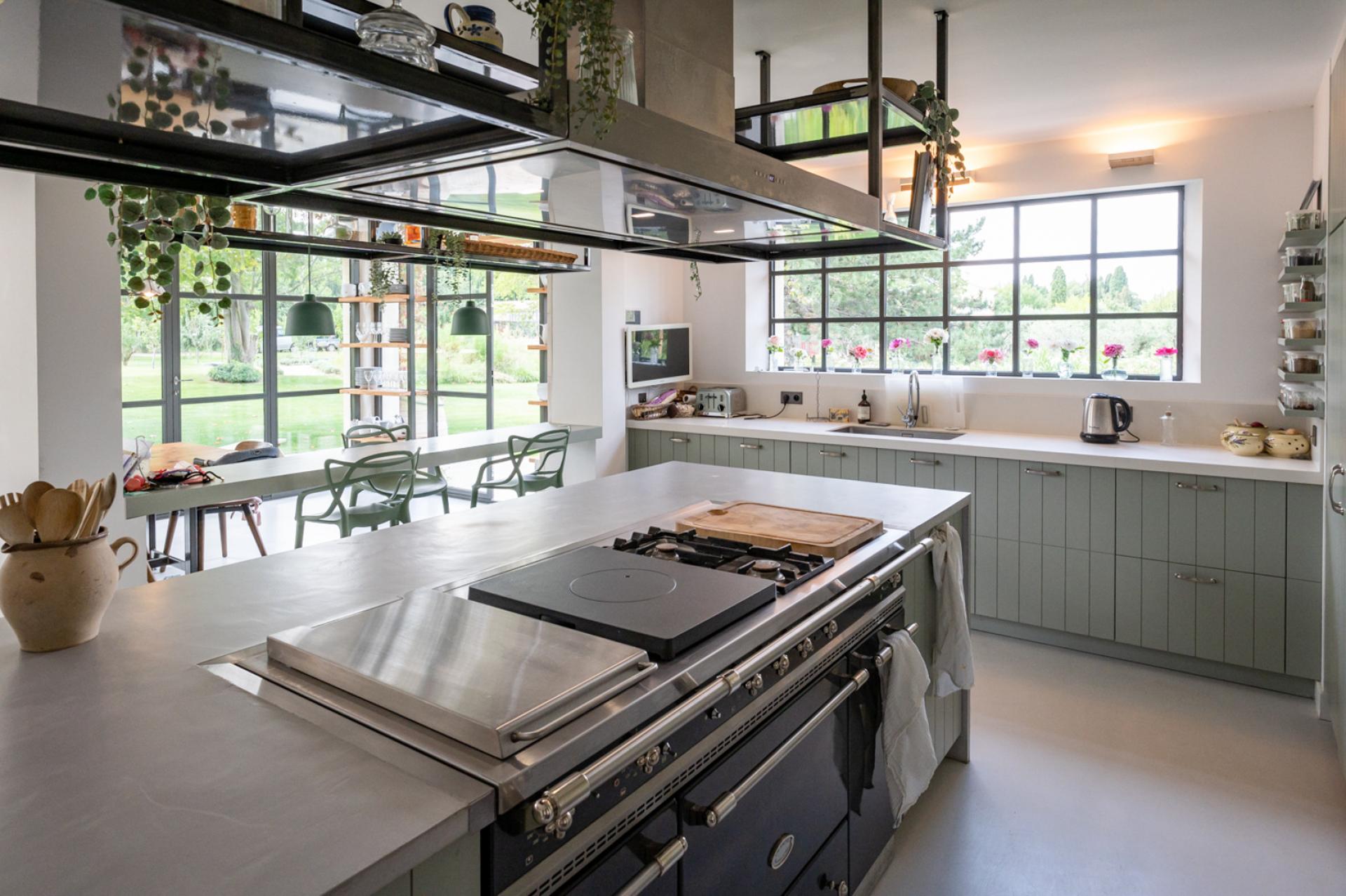 On its left side one crosses a living room with fireplace and TV, followed by the dining area and semi-professional kitchen which calls out for its luminosity thanks to its steel bay windows, allowing one to savor the view of the park. , and its successful decoration.