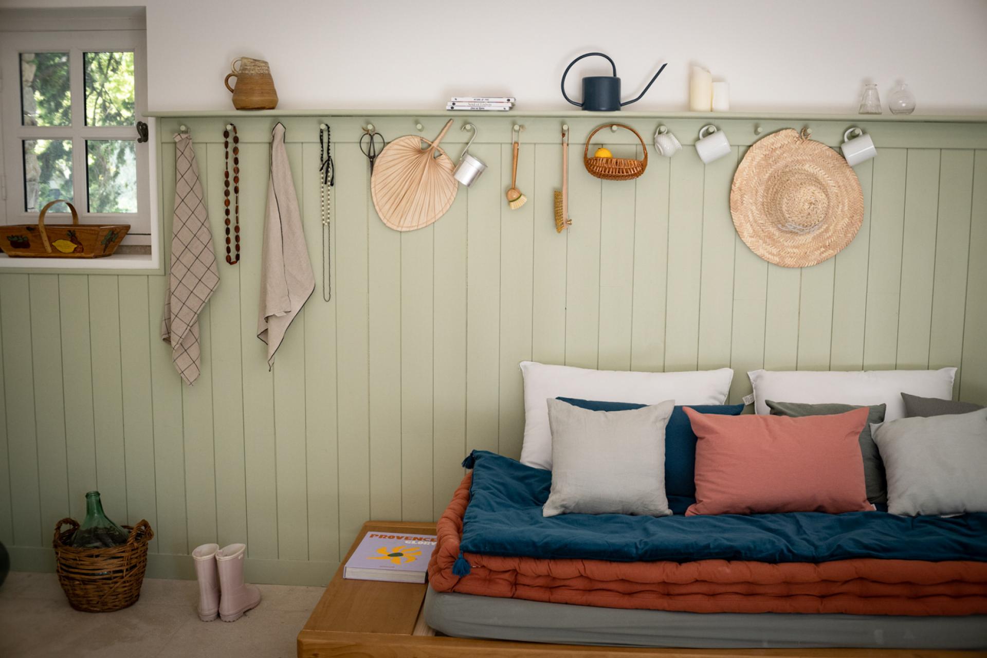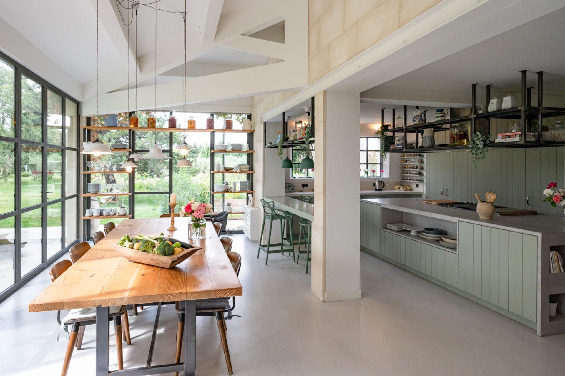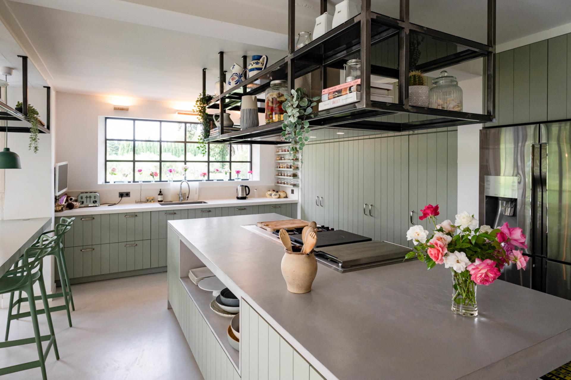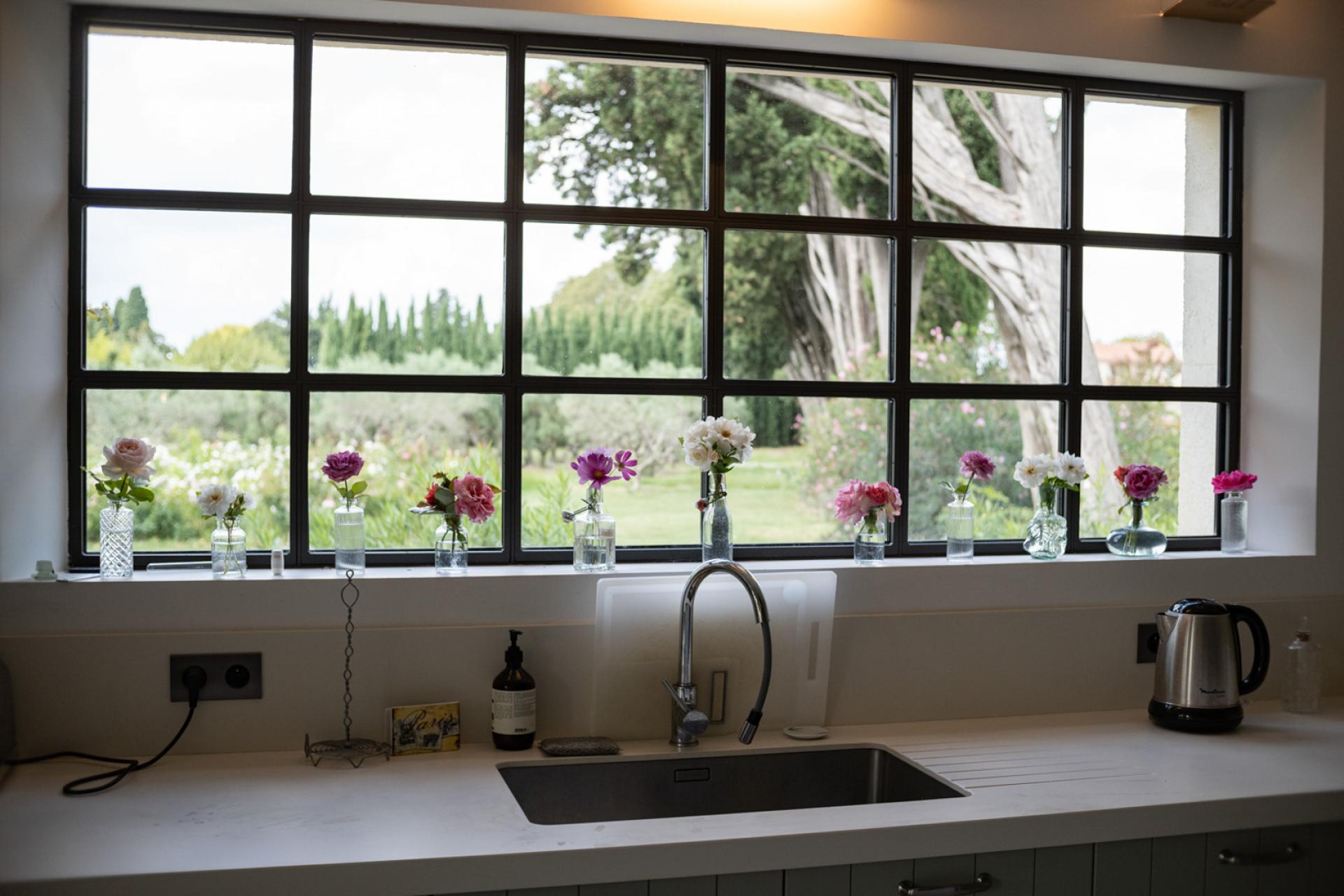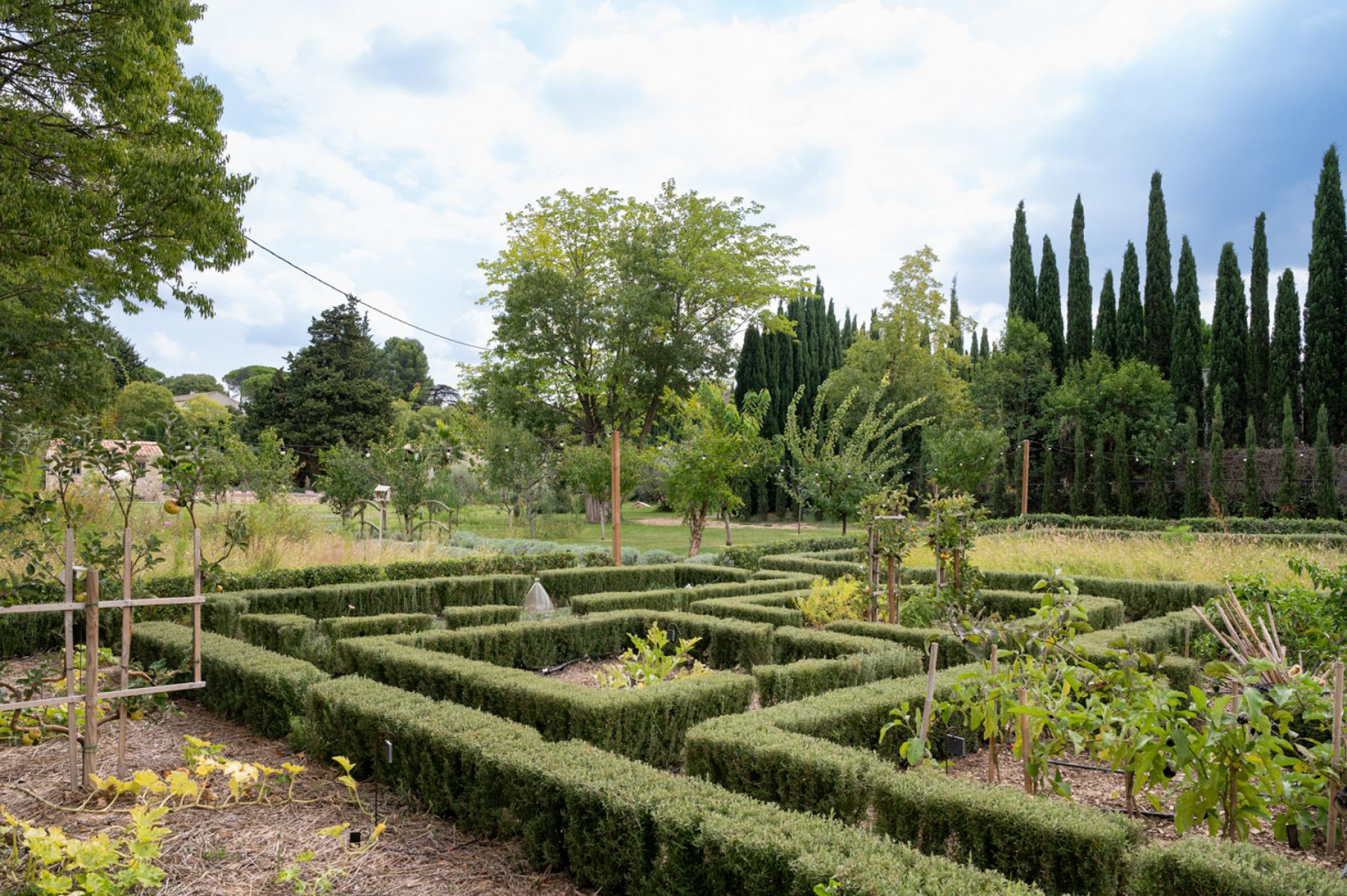 The other side of the land has a landscaped and minimalist decor, organized around a small orchard, a meadow-type plant space, a vegetable garden laid out in the style of a French garden, a greenhouse and an olive grove.