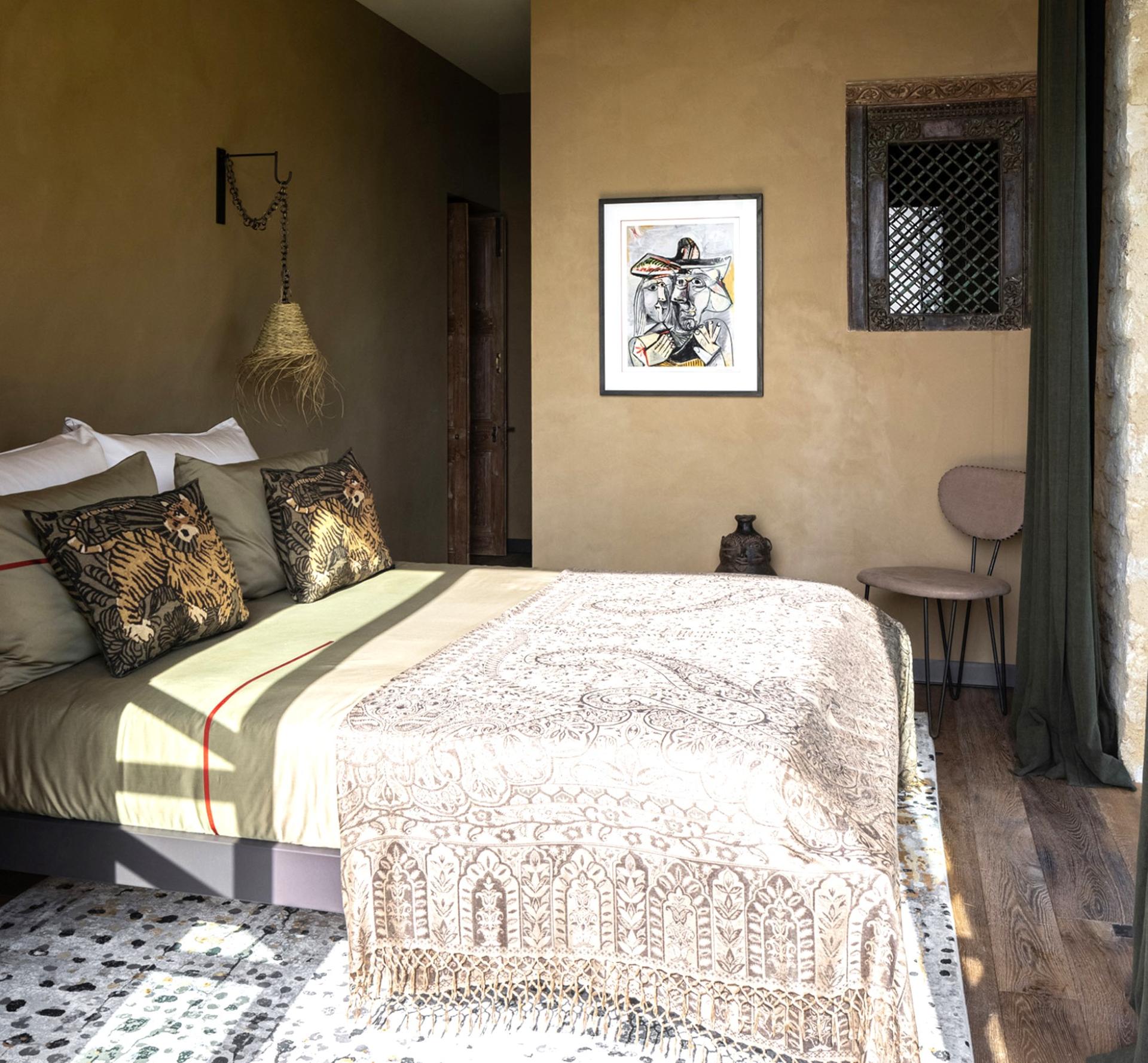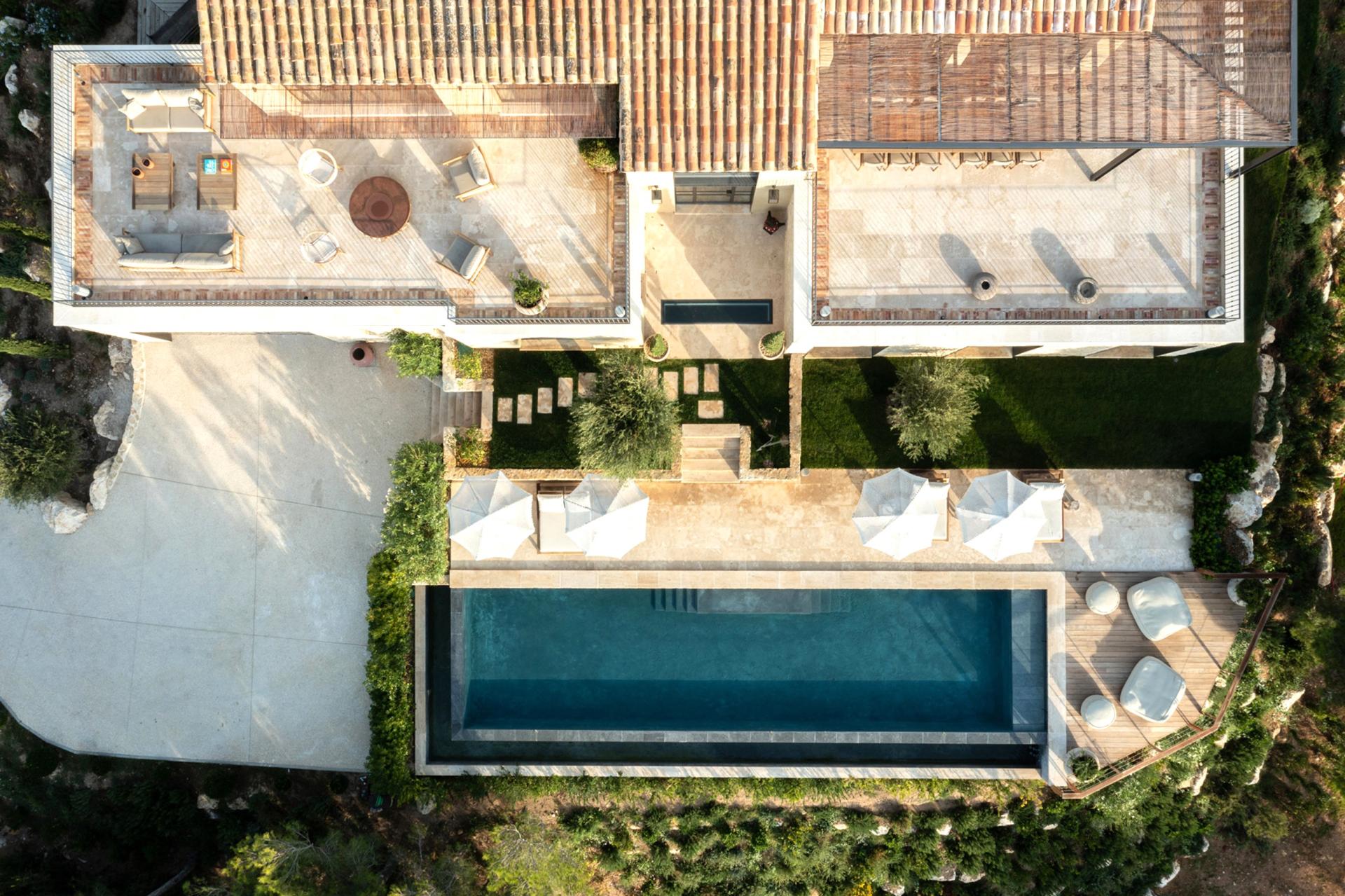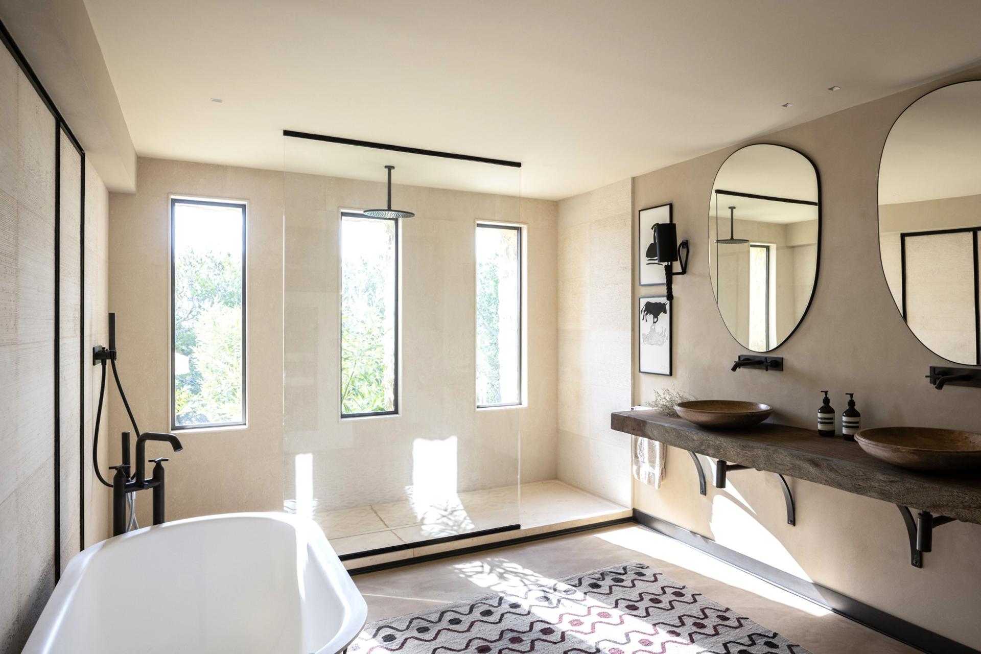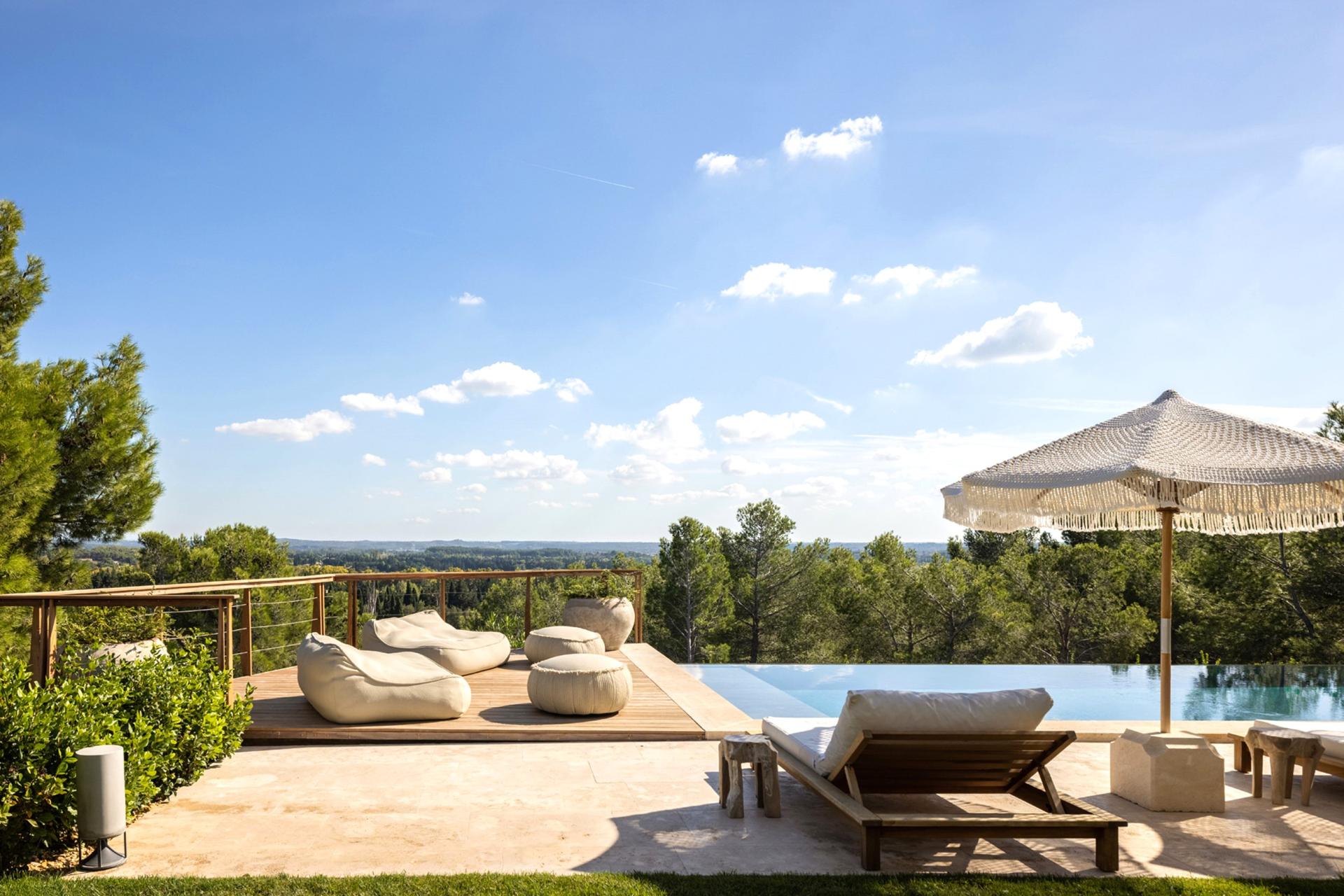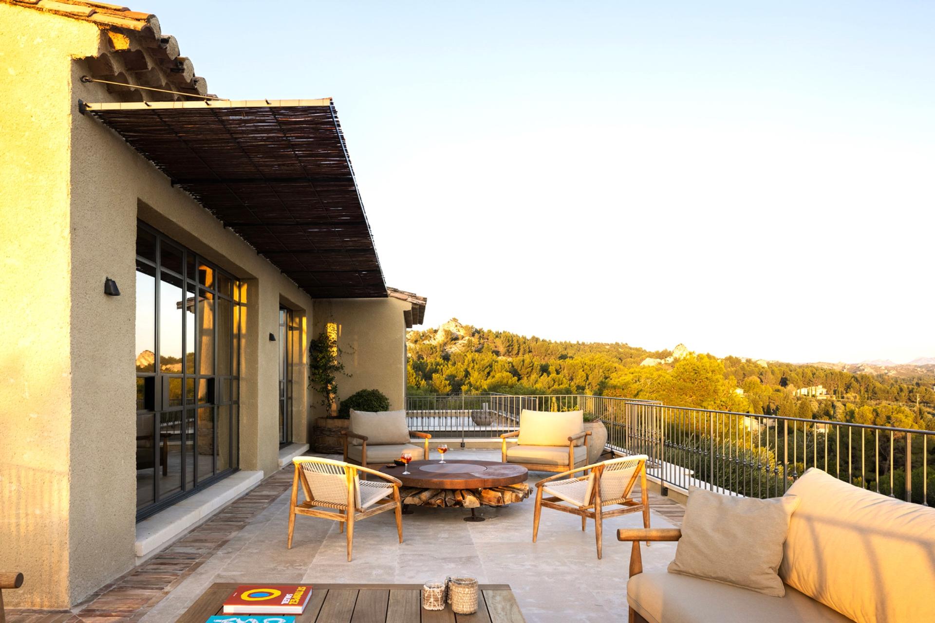 Whilst on the lower level It's hard to imagine, at first glance, that 4 large airconditioned bedrooms with their private bathrooms hide on the lower level – the house is so well incorporated in its surroundings. Wake up in the heart of Provence with direct access to the swimming pool and a breathtaking view of the Alpilles. You might think time has stood still, so intense is the magic of the place. The water, on which the sun's rays are reflected, seems to flow into the valley, at the foot of the pines, suspended for a moment, like a living fresco, each day different but always so peaceful.