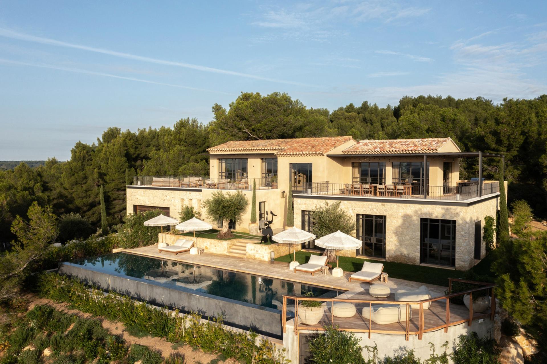 Located 10 minutes’ walk from the village of Le Paradou, in a quiet location, this Mas offers four double bedrooms (including 2 masters) all with en-suite bathrooms, large terraces of more than 150 sqm, surrounding the living room and the kitchen, an outdoor barbecue, a stunning infinity pool suspended over the valley. Its geographical location perfectly combines proximity to the village and tranquillity for a feeling of absolute enjoyment and relaxation on the heights in the heart of Provence.