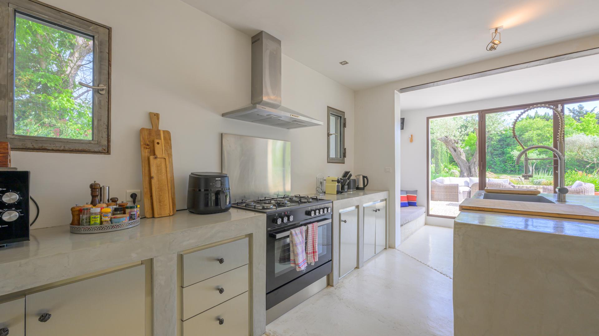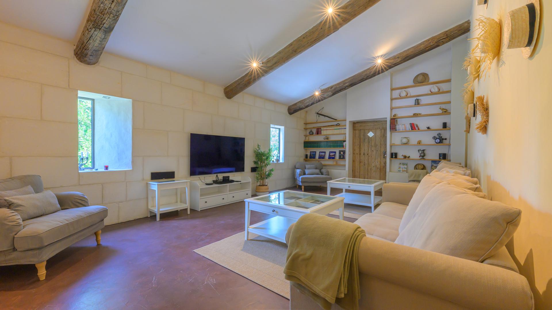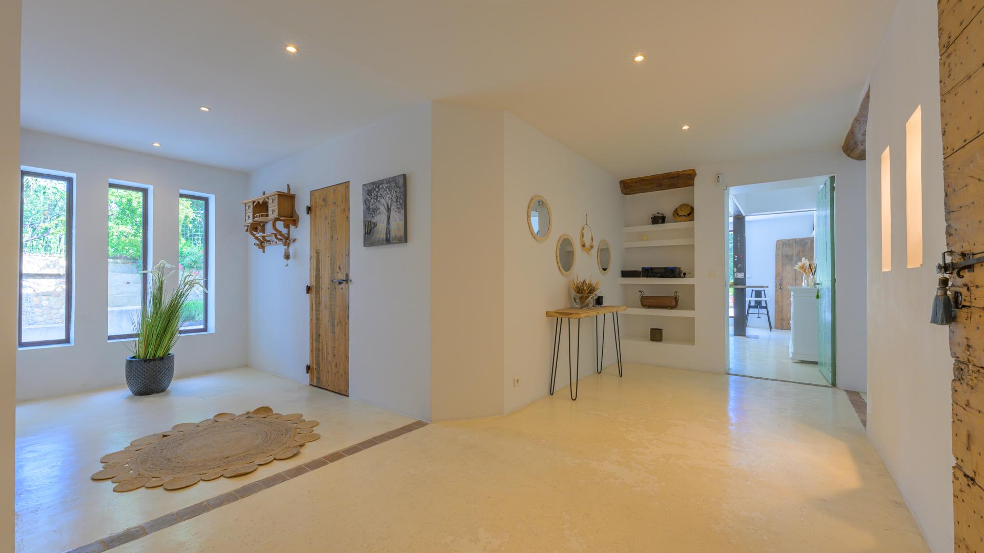 The interiors of both the mas and annex are spacious and contemporary in both décor and furnishings. The ground floor of the former comprises, an entrance hall with guest WC, a modern well-equipped kitchen and back kitchen, a dining room seating twelve, a welcoming living room, all of which open onto the terrace and front garden, whilst to the rear of the ground floor includes, an office and large TV room. Upstairs features the four double bedrooms all of which are en-suite and a kids living/play area.