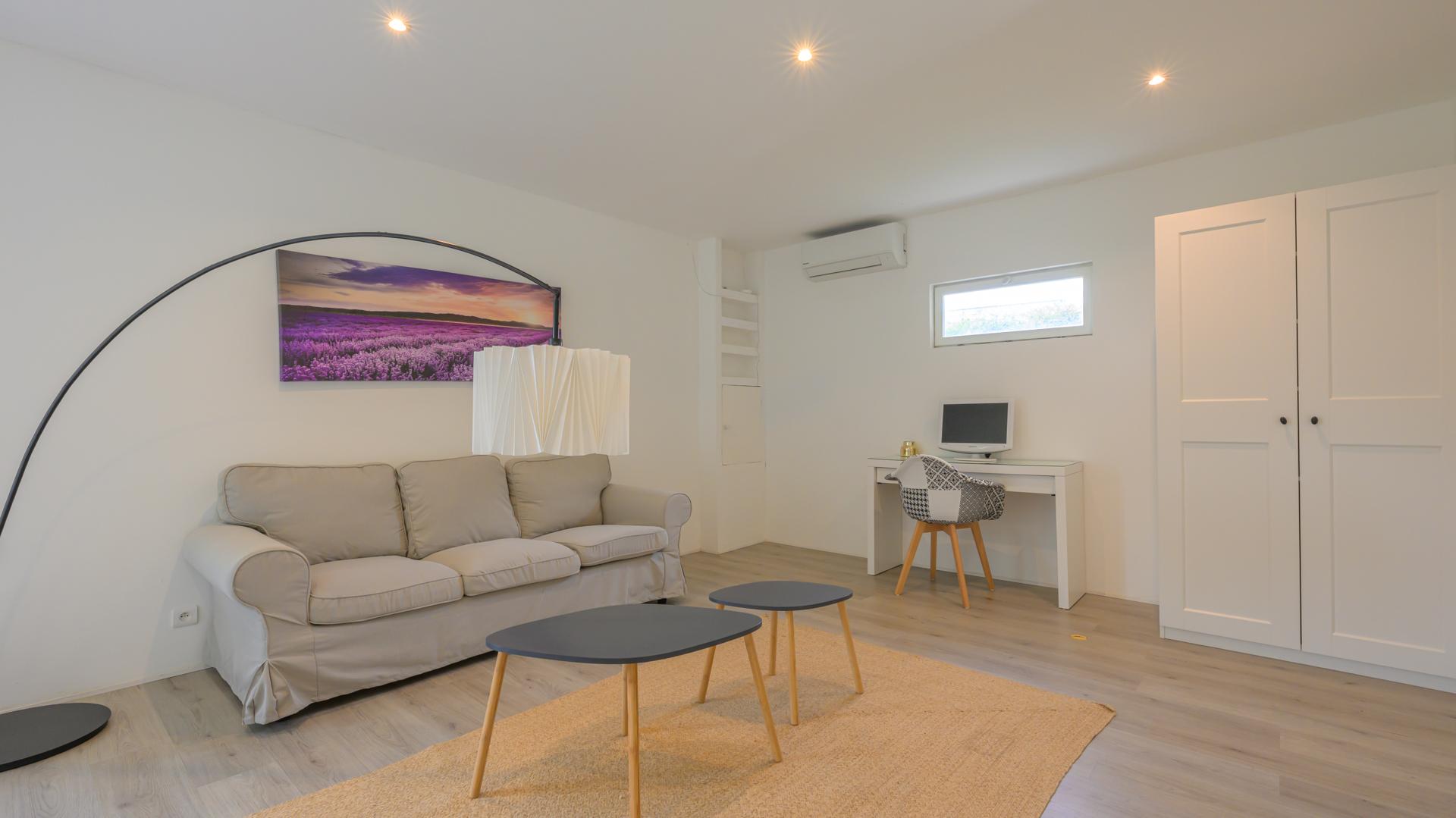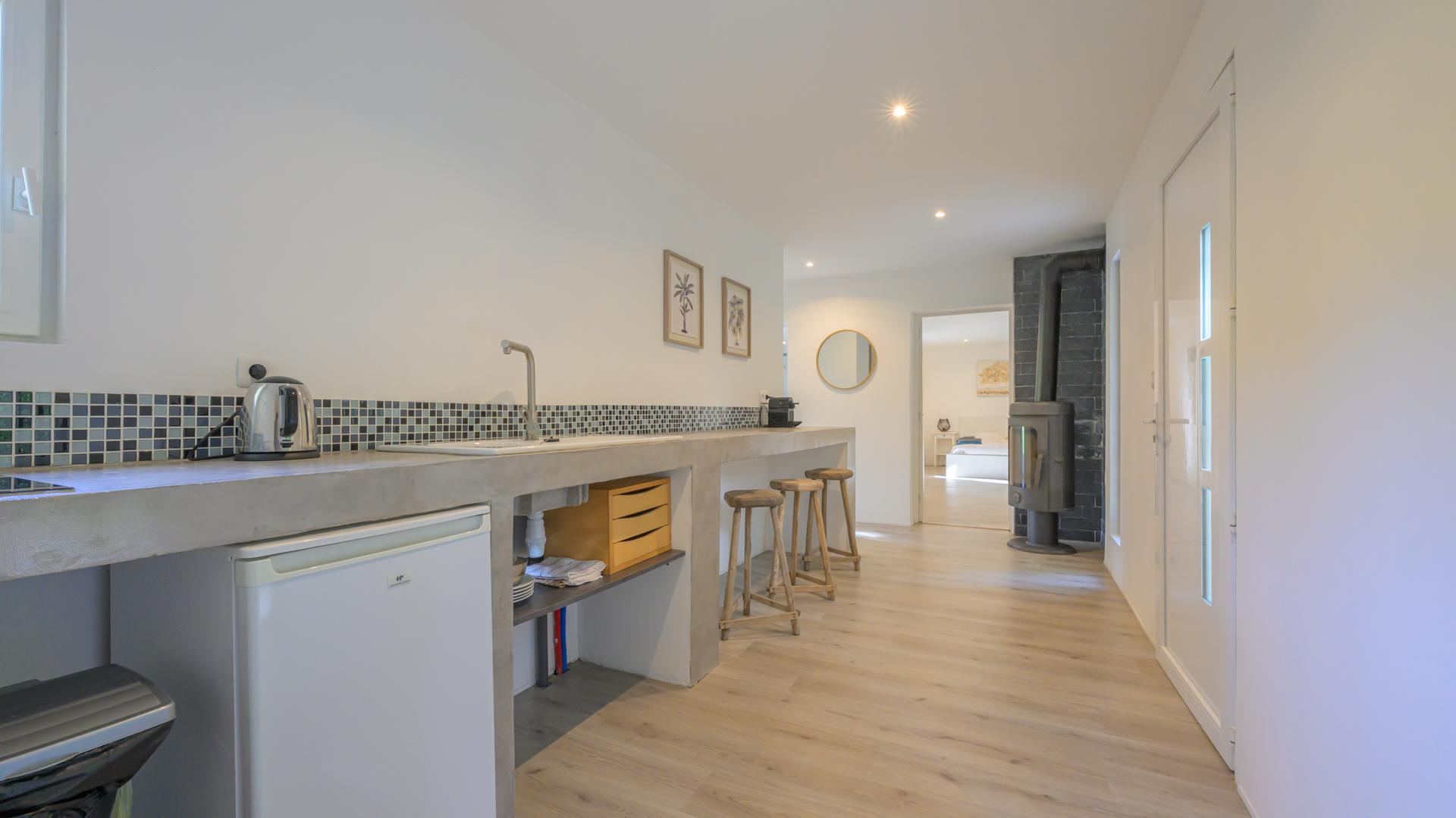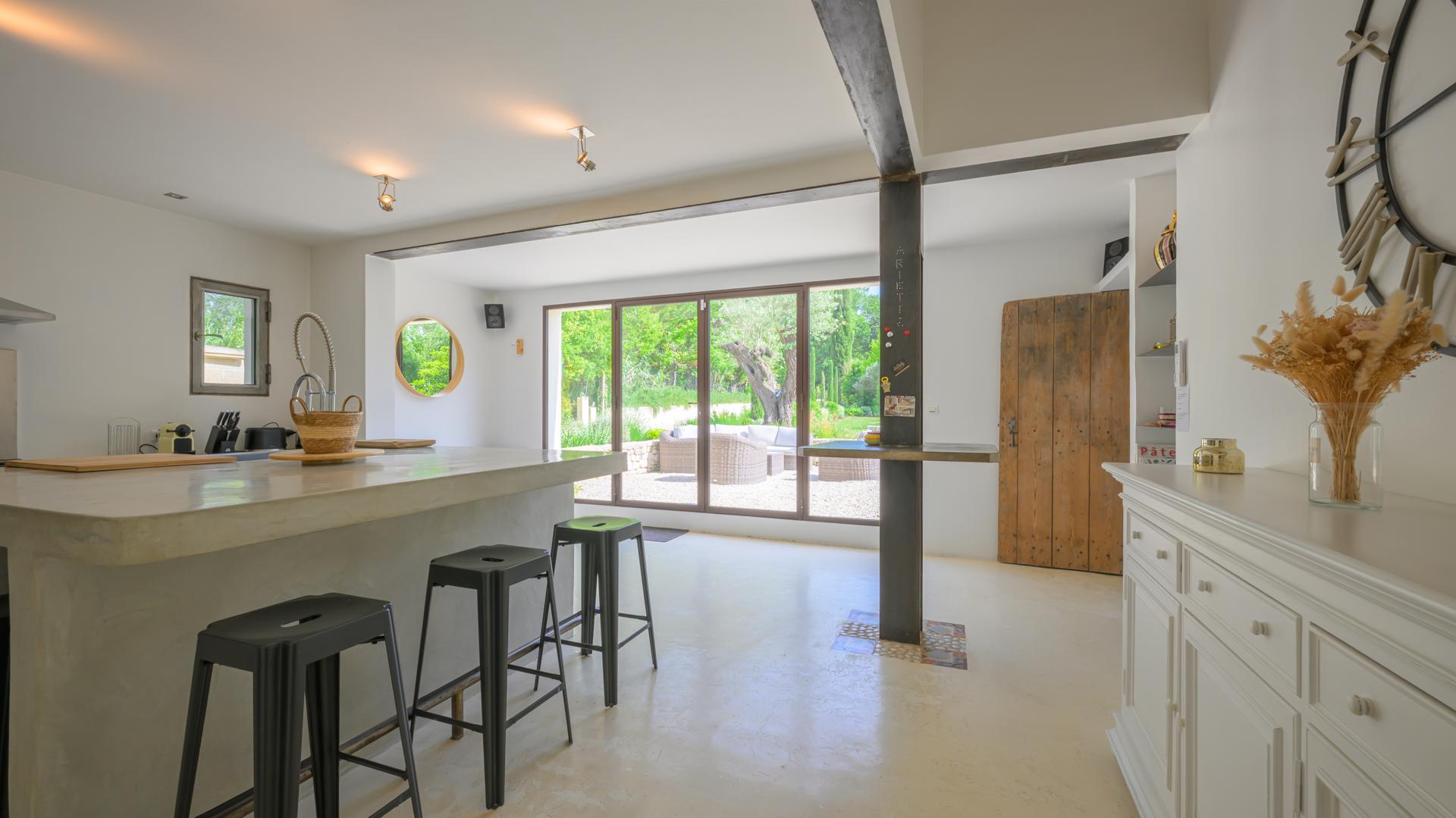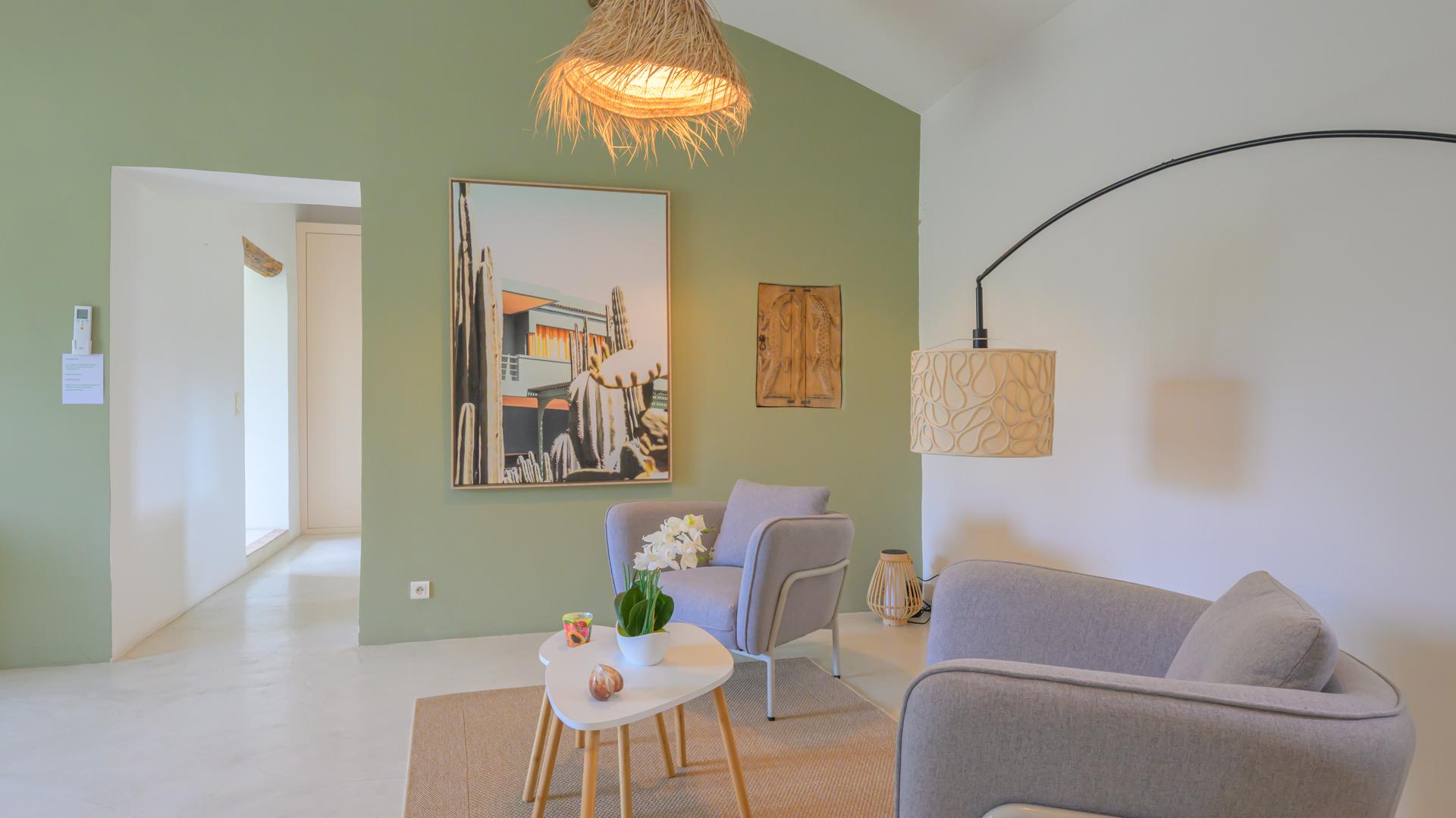 The interiors of both the mas and annex are spacious and contemporary in both décor and furnishings. The ground floor of the former comprises, an entrance hall with guest WC, a modern well-equipped kitchen and back kitchen, a dining room seating twelve, a welcoming living room, all of which open onto the terrace and front garden, whilst to the rear of the ground floor includes, an office and large TV room. Upstairs features the four double bedrooms all of which are en-suite and a kids living/play area.
