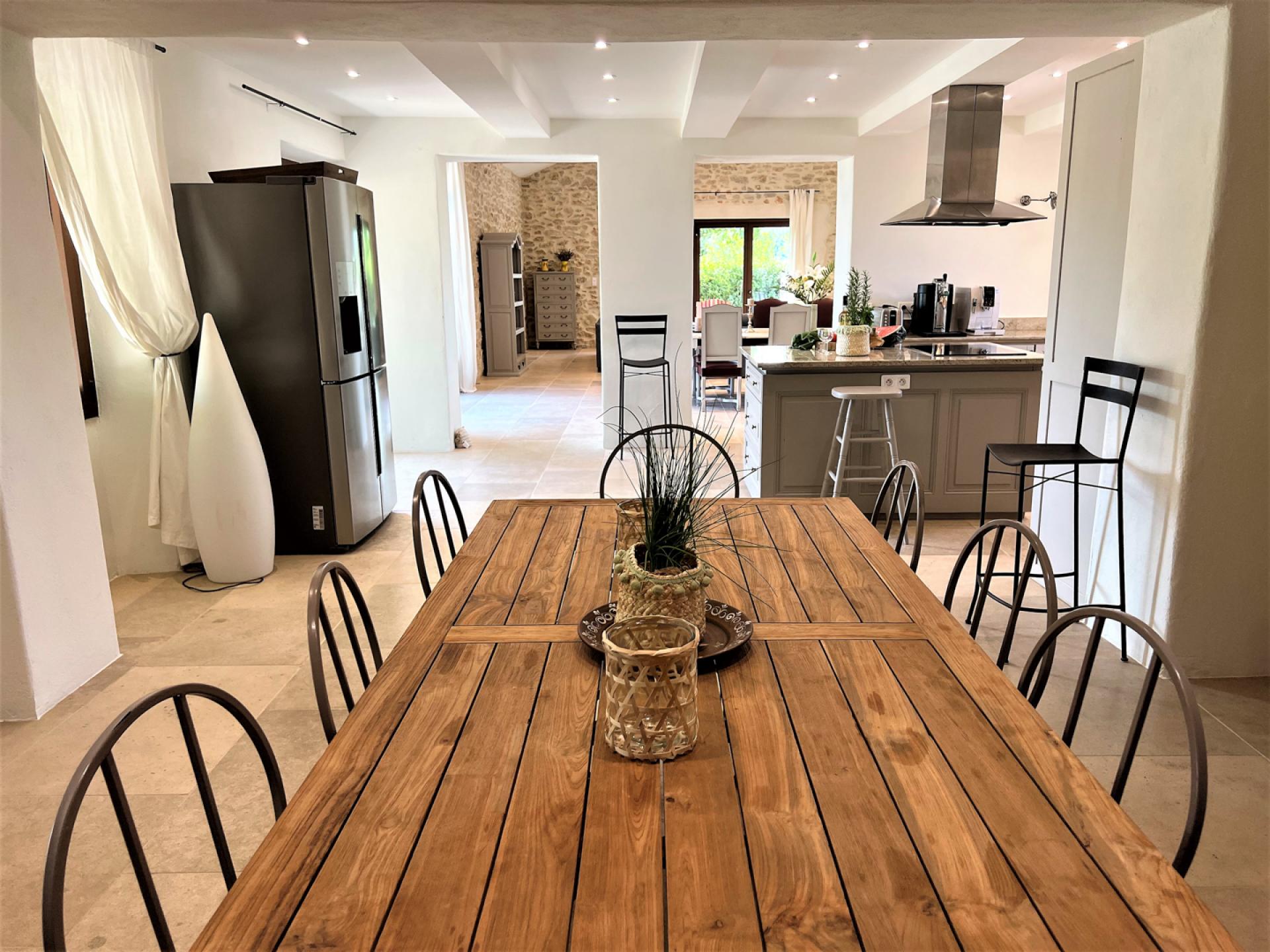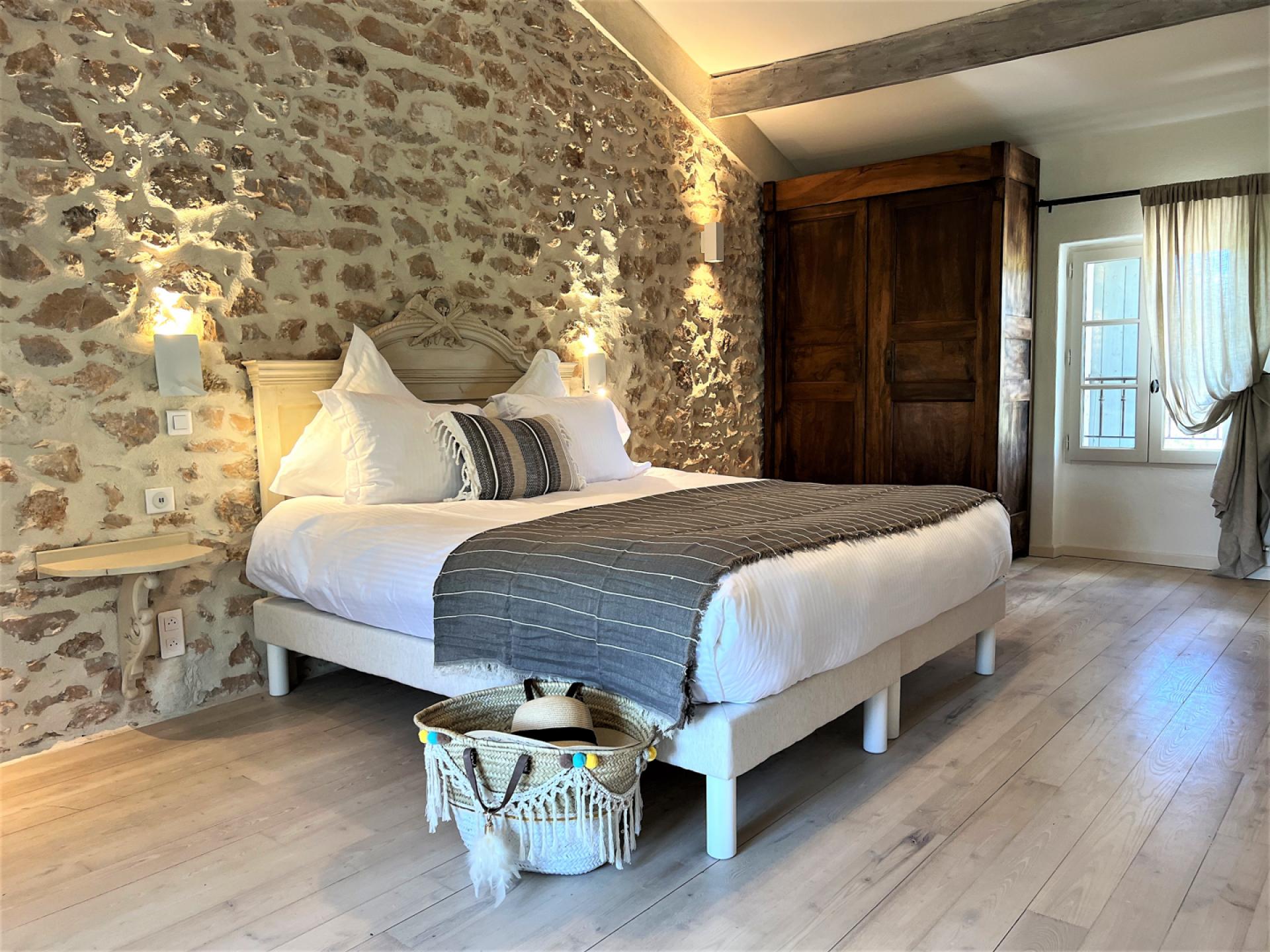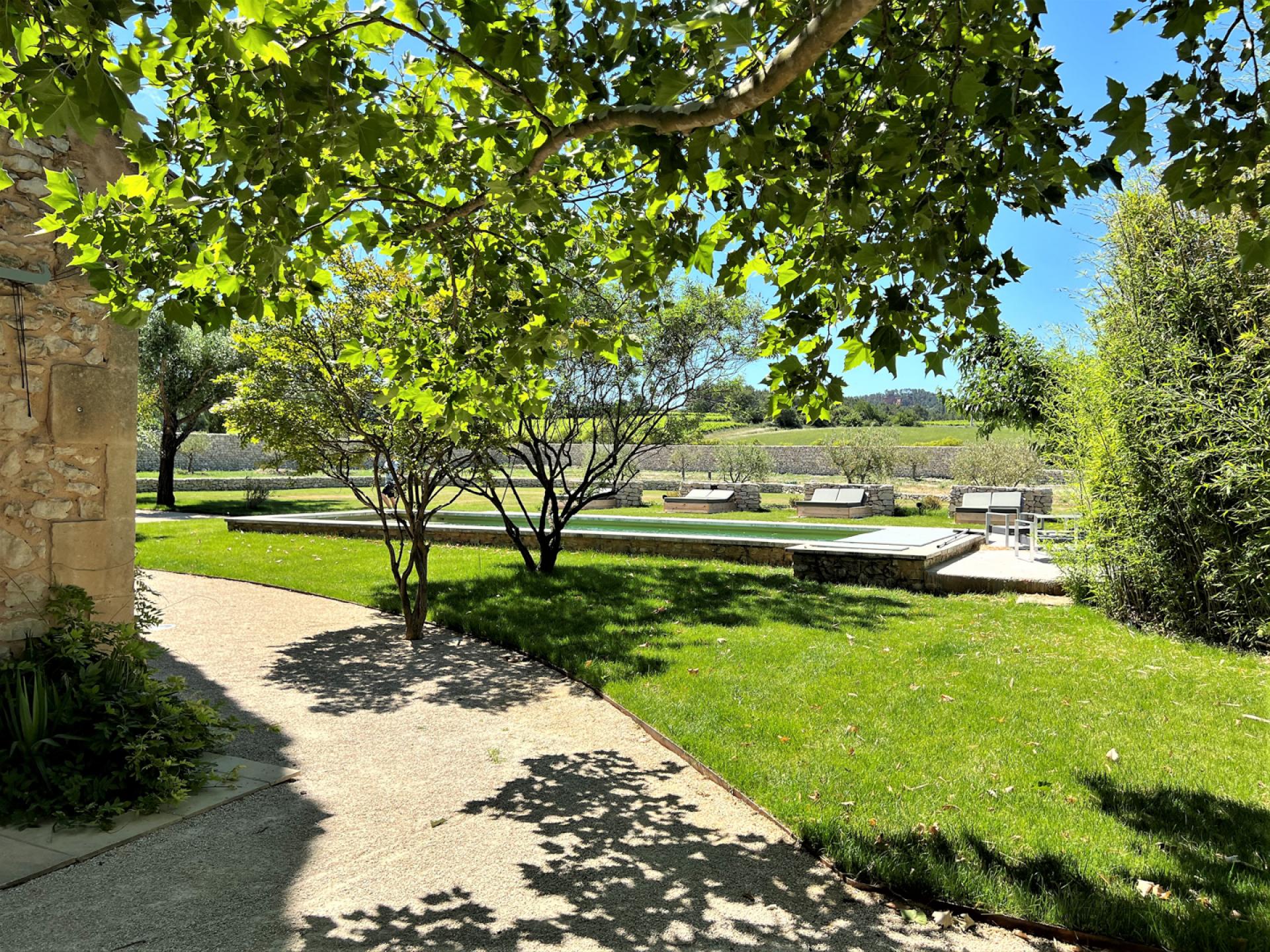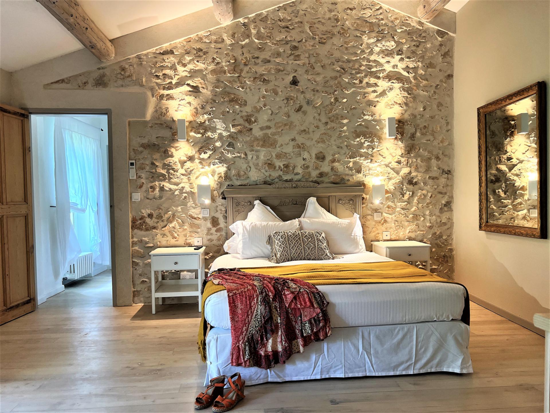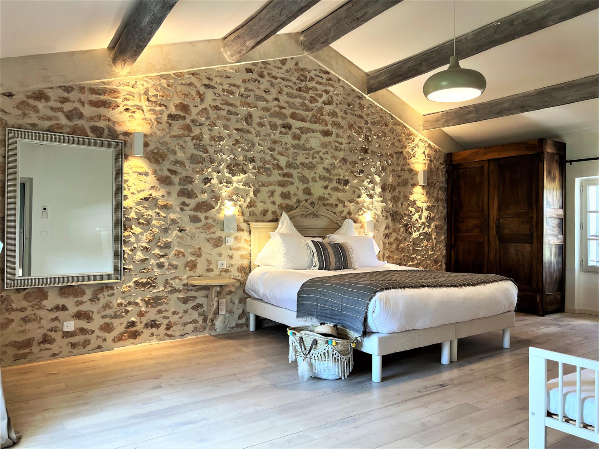 Located in the countryside close to Roussillon, In the heart of the Luberon, surrounded by vineyards, Un Mas à Roussilon is an attractive stone mas which has very recently been renovated to a very high standard throughout. The mas is set in a spacious garden of nearly two hectares, with a heated swimming pool of12x4m which is equipped with a safety shutter, next to which is a sunbathing terrace and close by, an outdoor lounge. There is also a terrace with a shaded dining table, a playground for children, a petanque court, an eclectic car charging station, exterior lighting, and an automatic entry gate. The property is also alarmed.