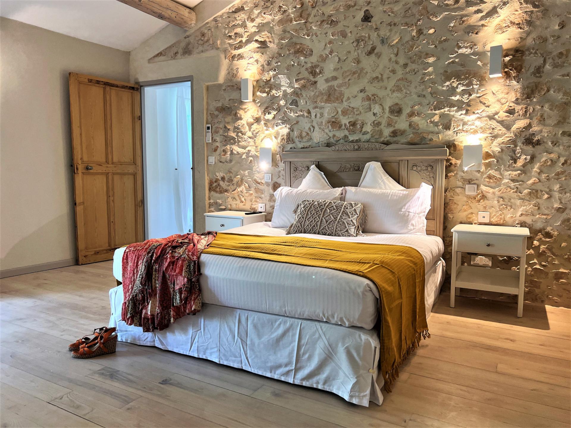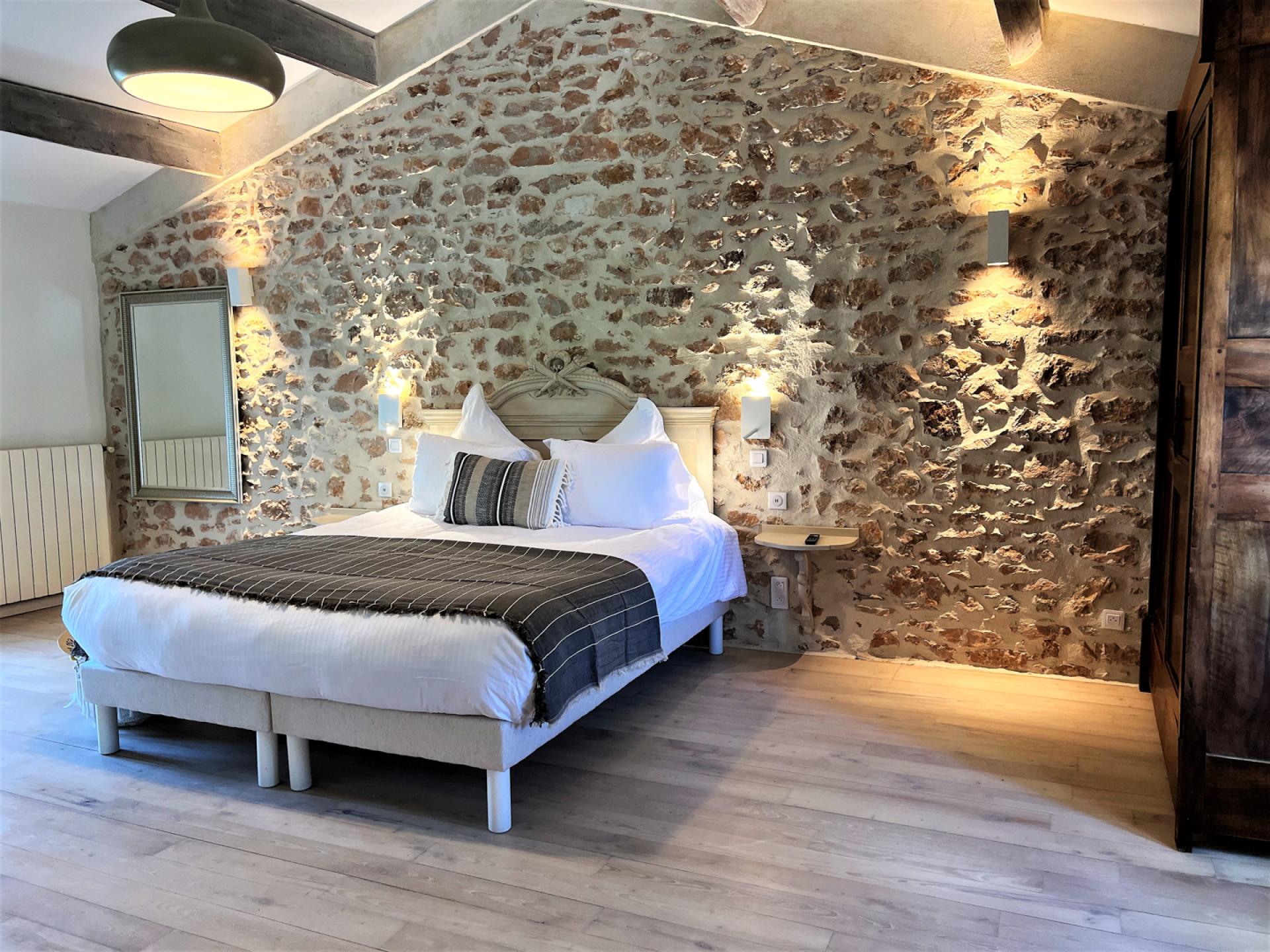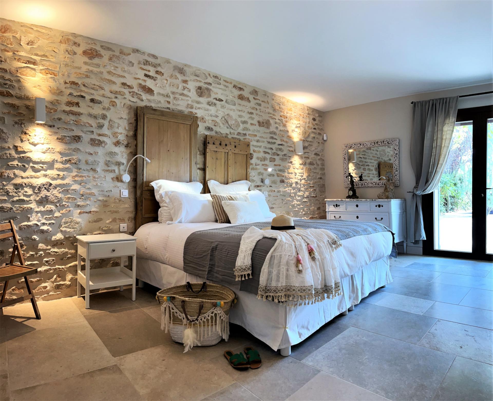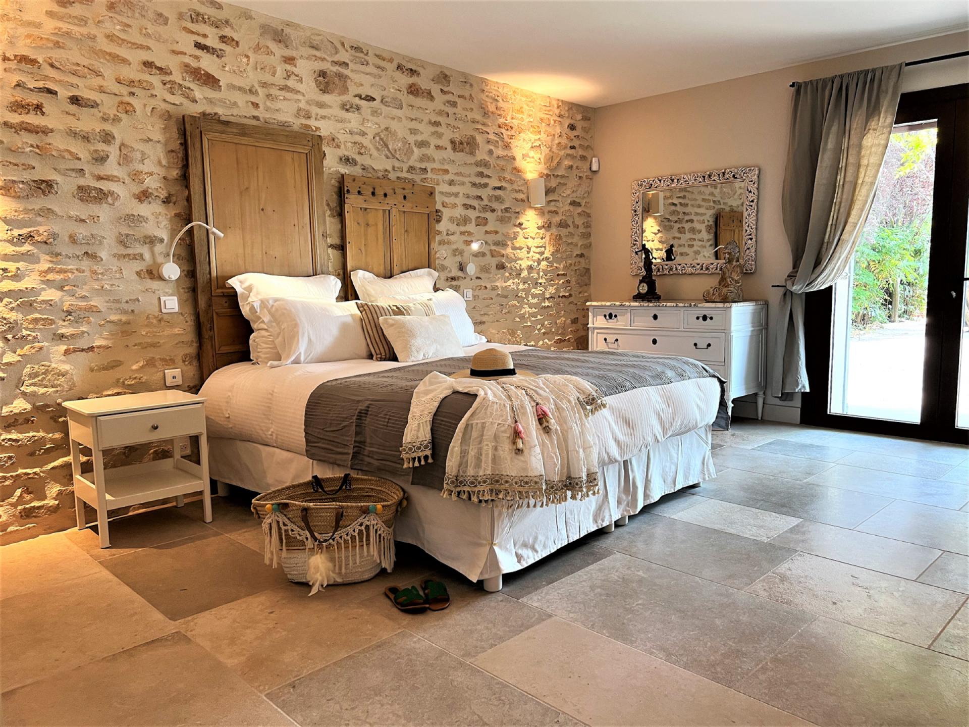 Located in the countryside close to Roussillon, In the heart of the Luberon, surrounded by vineyards, Un Mas à Roussilon is an attractive stone mas which has very recently been renovated to a very high standard throughout. The mas is set in a spacious garden of nearly two hectares, with a heated swimming pool of12x4m which is equipped with a safety shutter, next to which is a sunbathing terrace and close by, an outdoor lounge. There is also a terrace with a shaded dining table, a playground for children, a petanque court, an eclectic car charging station, exterior lighting, and an automatic entry gate. The property is also alarmed.
