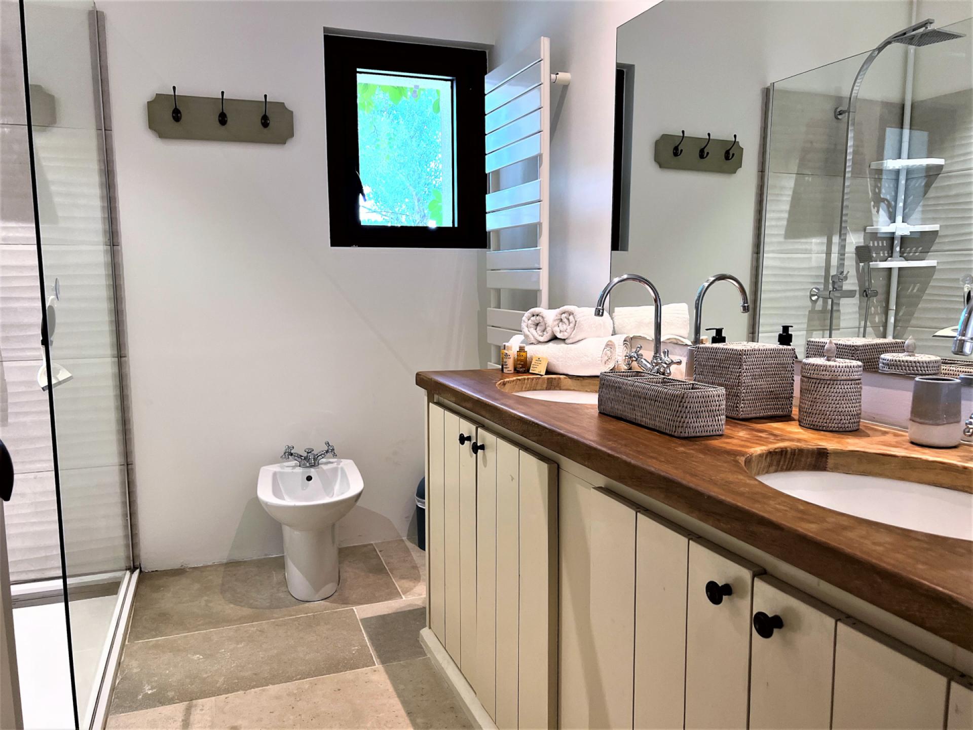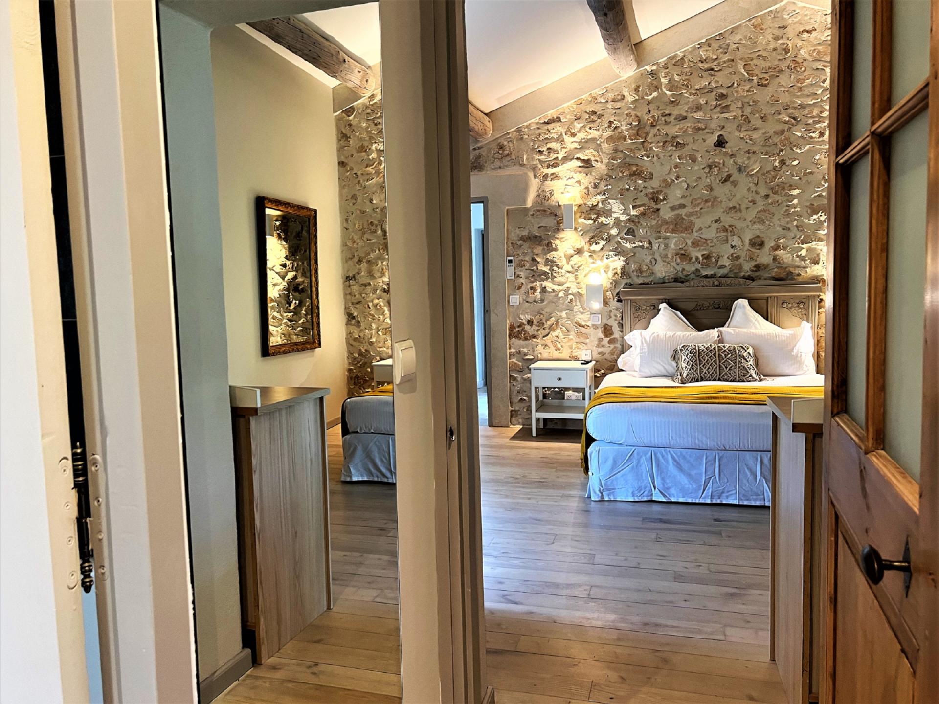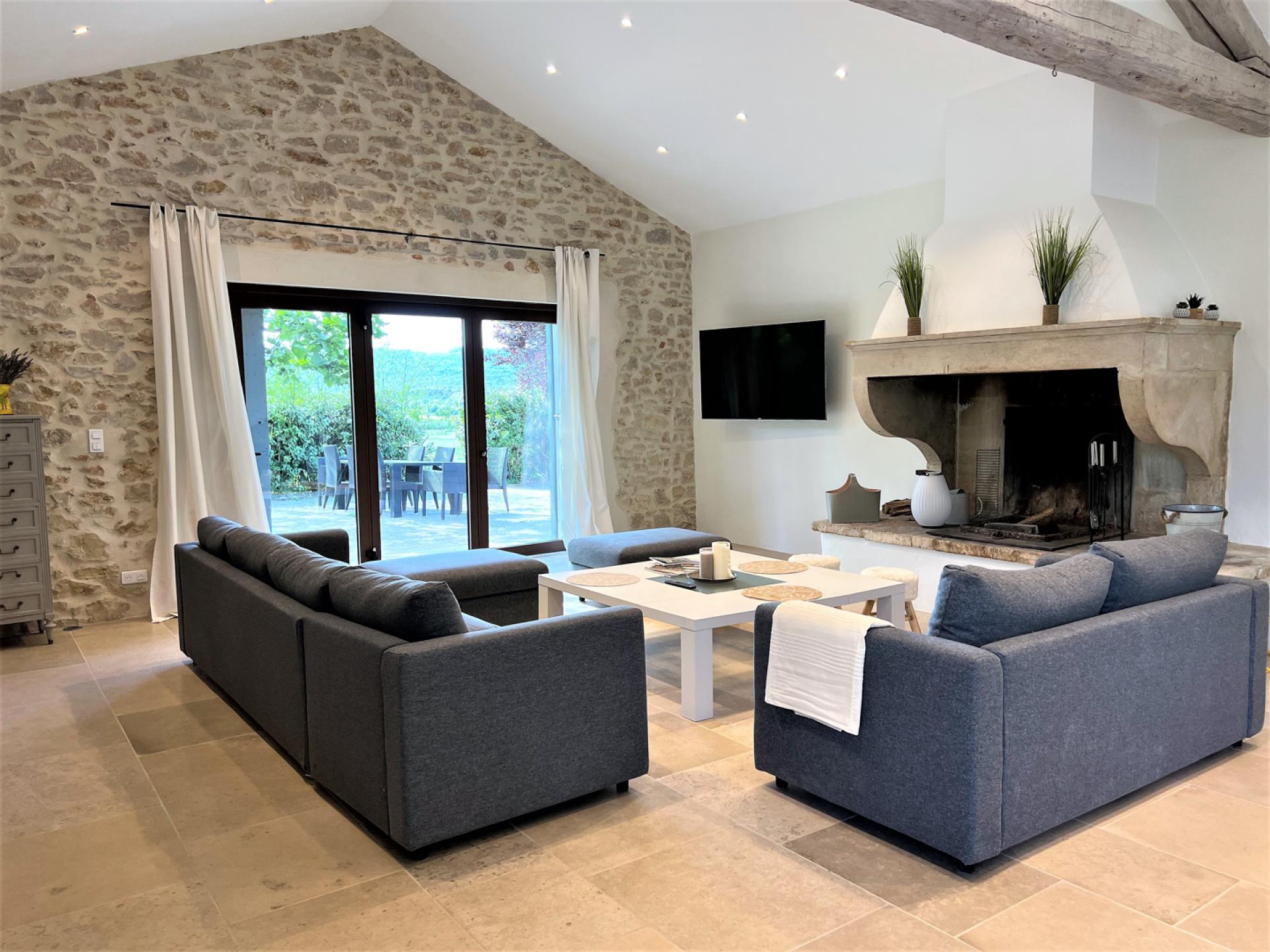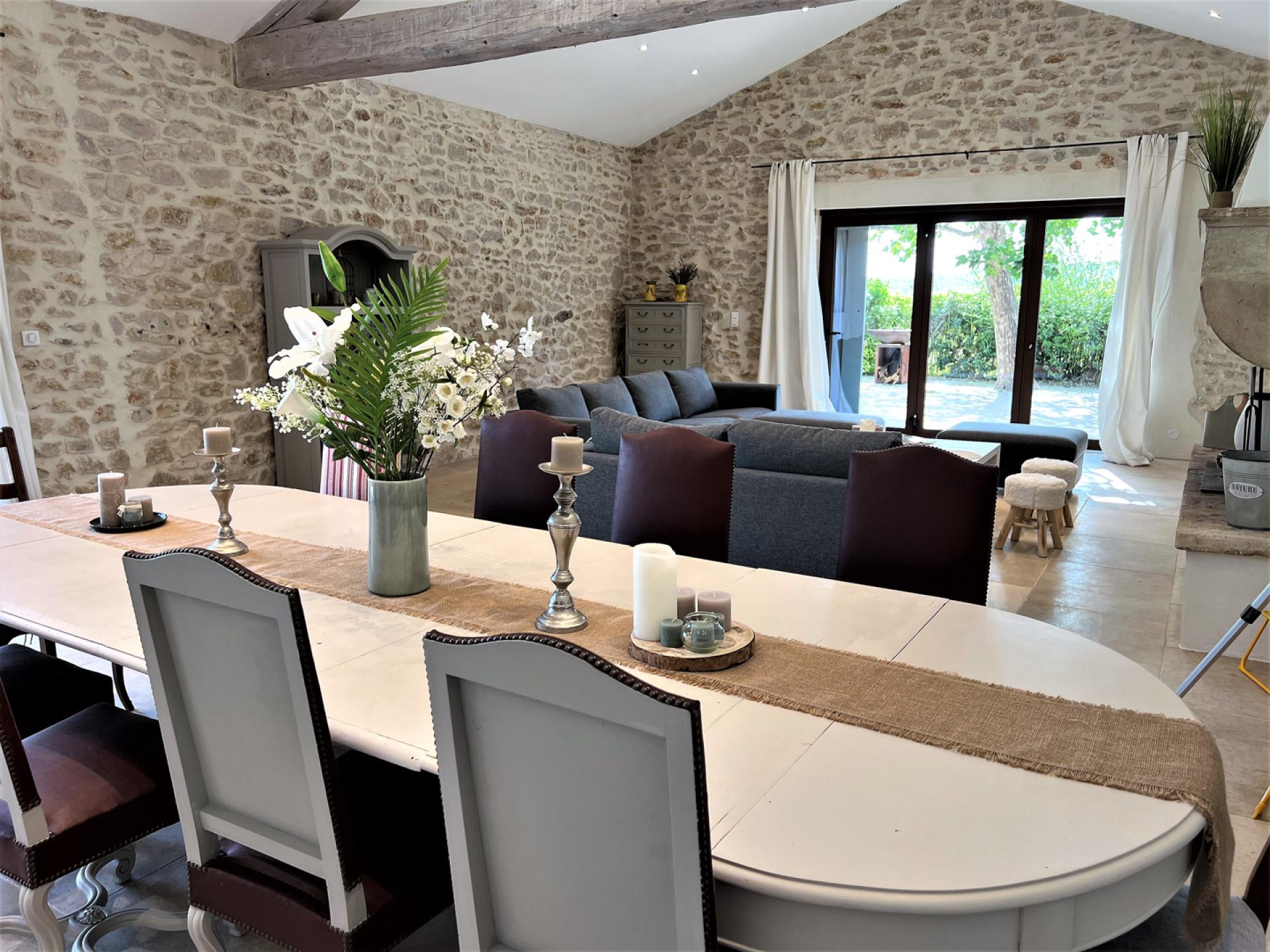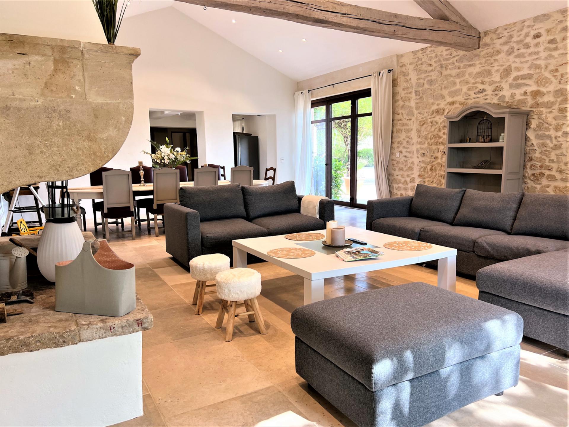 Located in the countryside close to Roussillon, In the heart of the Luberon, surrounded by vineyards, Un Mas à Roussilon is an attractive stone mas which has very recently been renovated to a very high standard throughout. The mas is set in a spacious garden of nearly two hectares, with a heated swimming pool of12x4m which is equipped with a safety shutter, next to which is a sunbathing terrace and close by, an outdoor lounge. There is also a terrace with a shaded dining table, a playground for children, a petanque court, an eclectic car charging station, exterior lighting, and an automatic entry gate. The property is also alarmed.